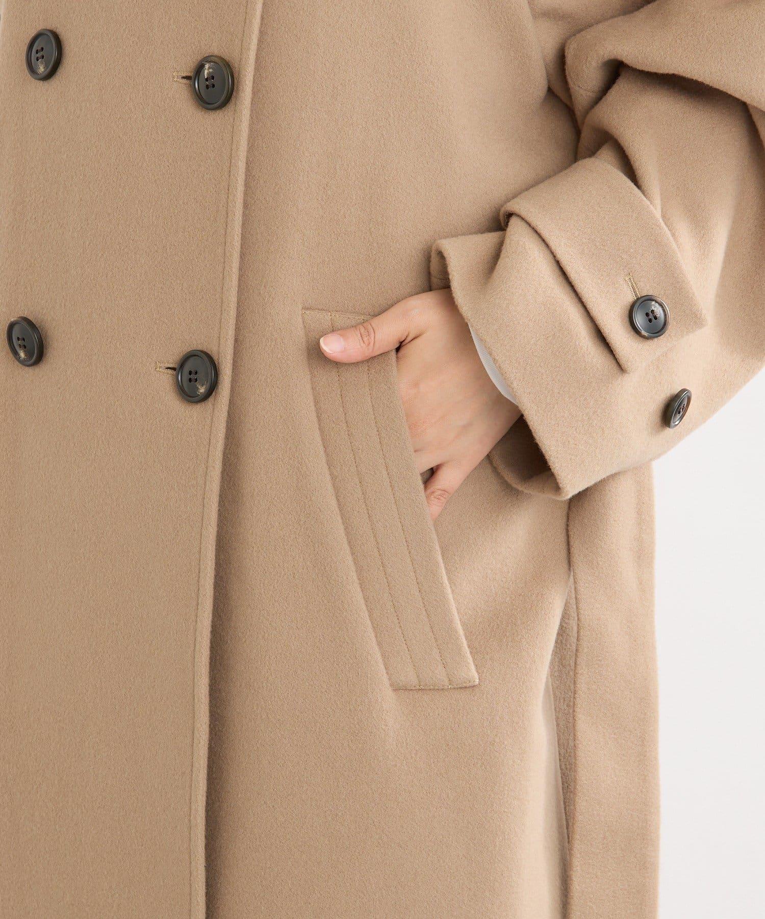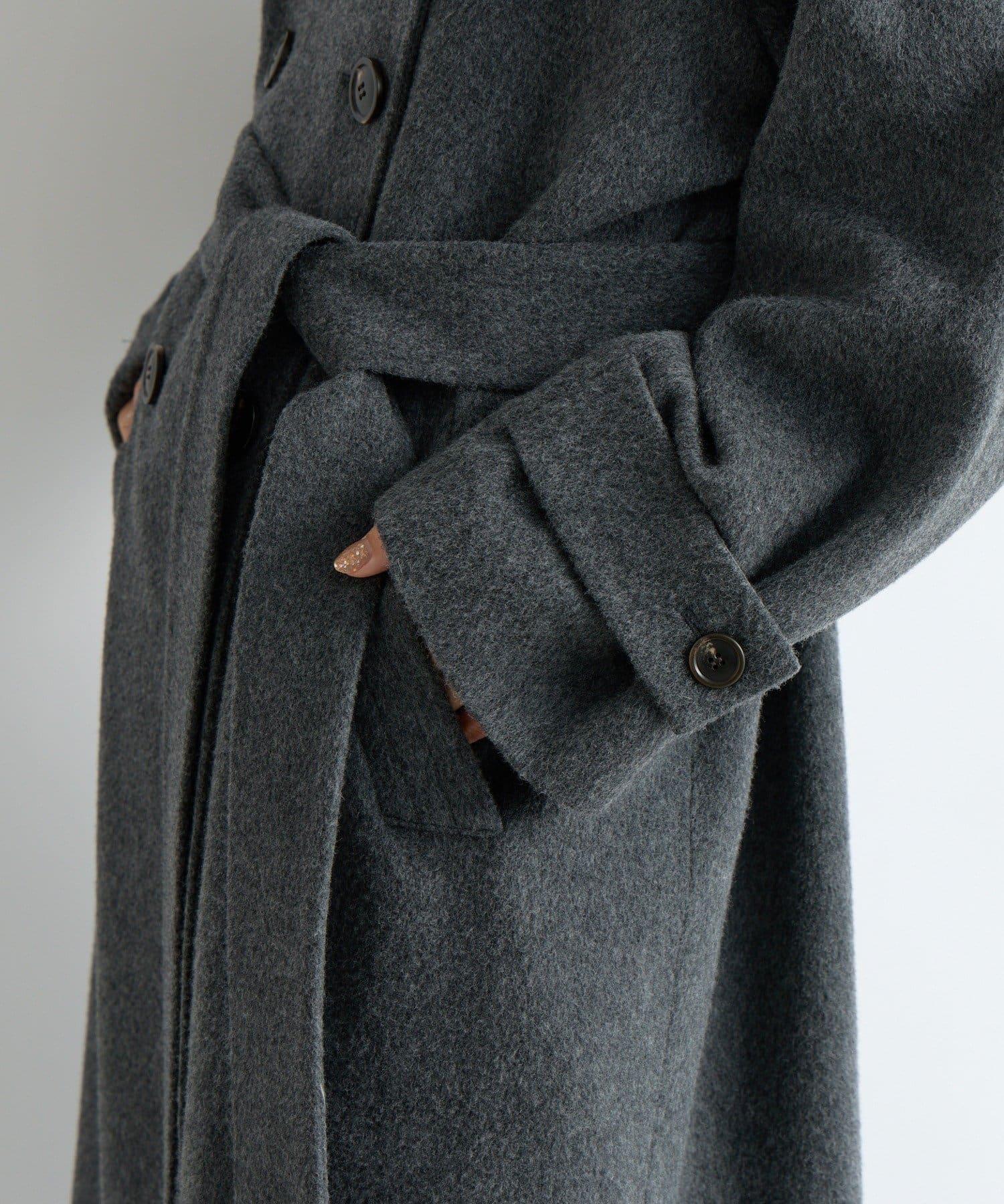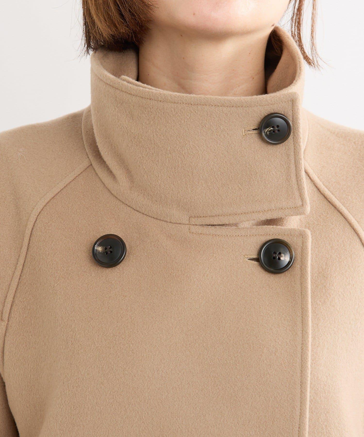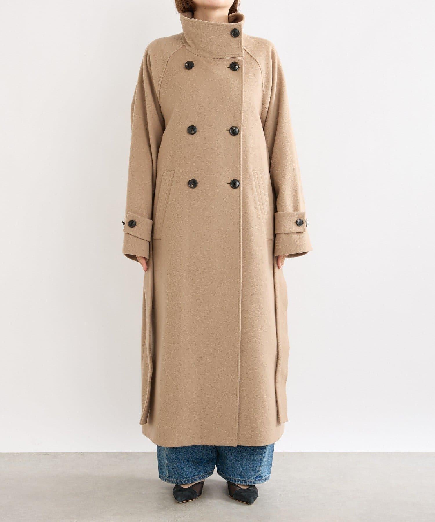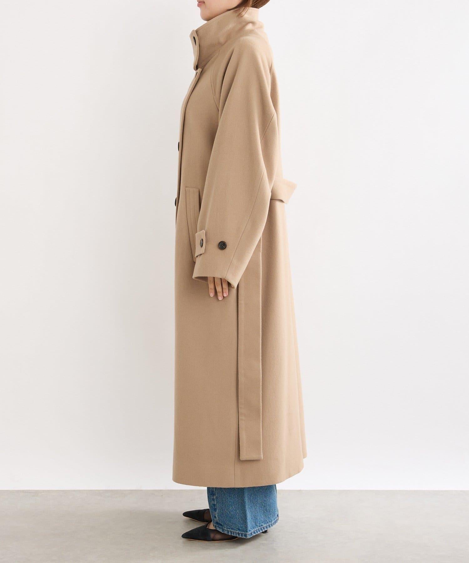 領口設計的大衣很討人喜歡,可立穿也可平放。