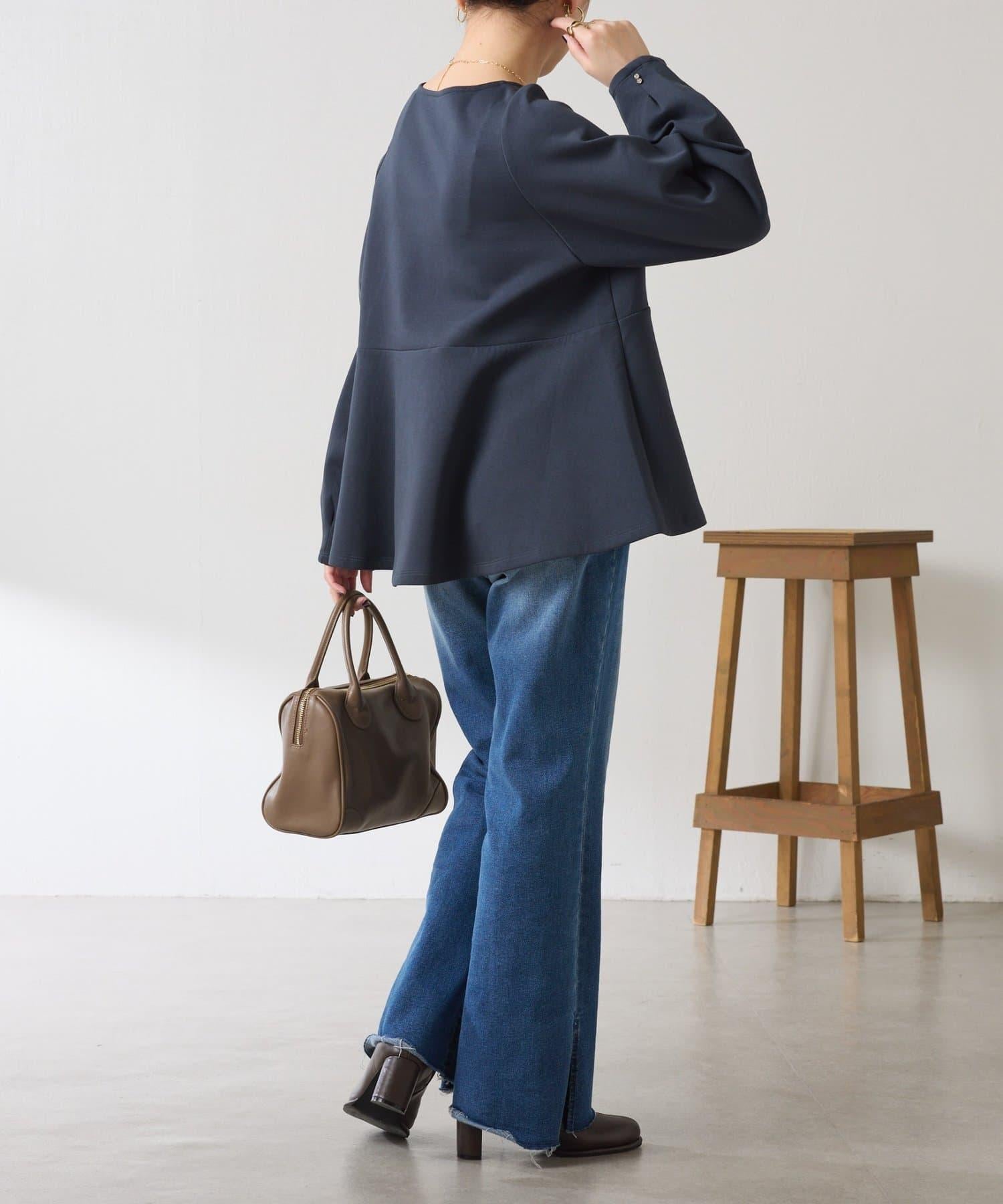 【顯瘦/顯腿長效果】袖部裝飾短款荷葉邊上衣