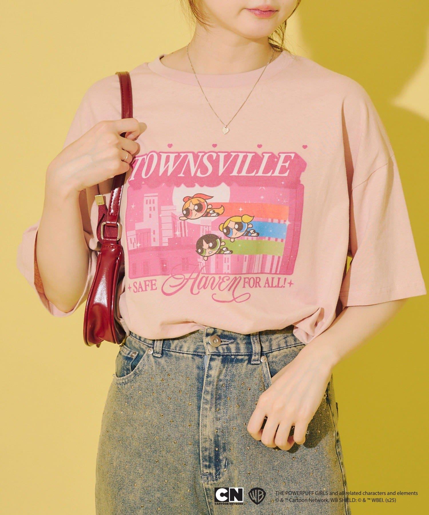 這款印有飛天小女警粉色標誌的超大號可愛 T 恤是必備單品!