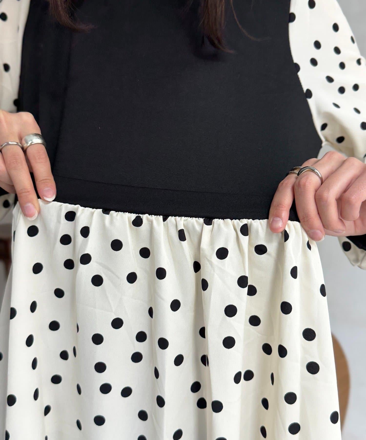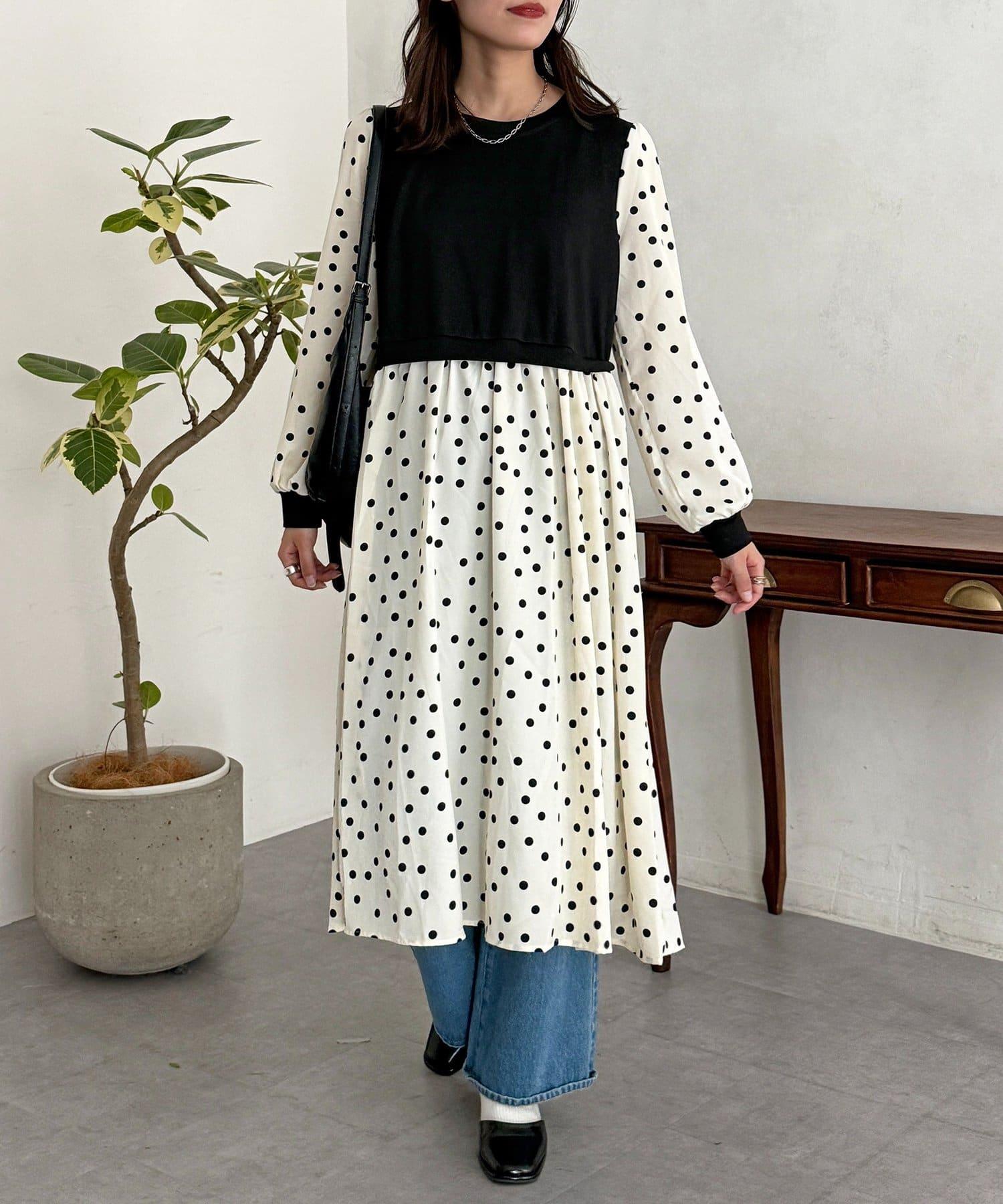 帶有墜感的材質打造出不會過於散開的廓形,偏向甜美的圓點圖案也能穿出成熟感。