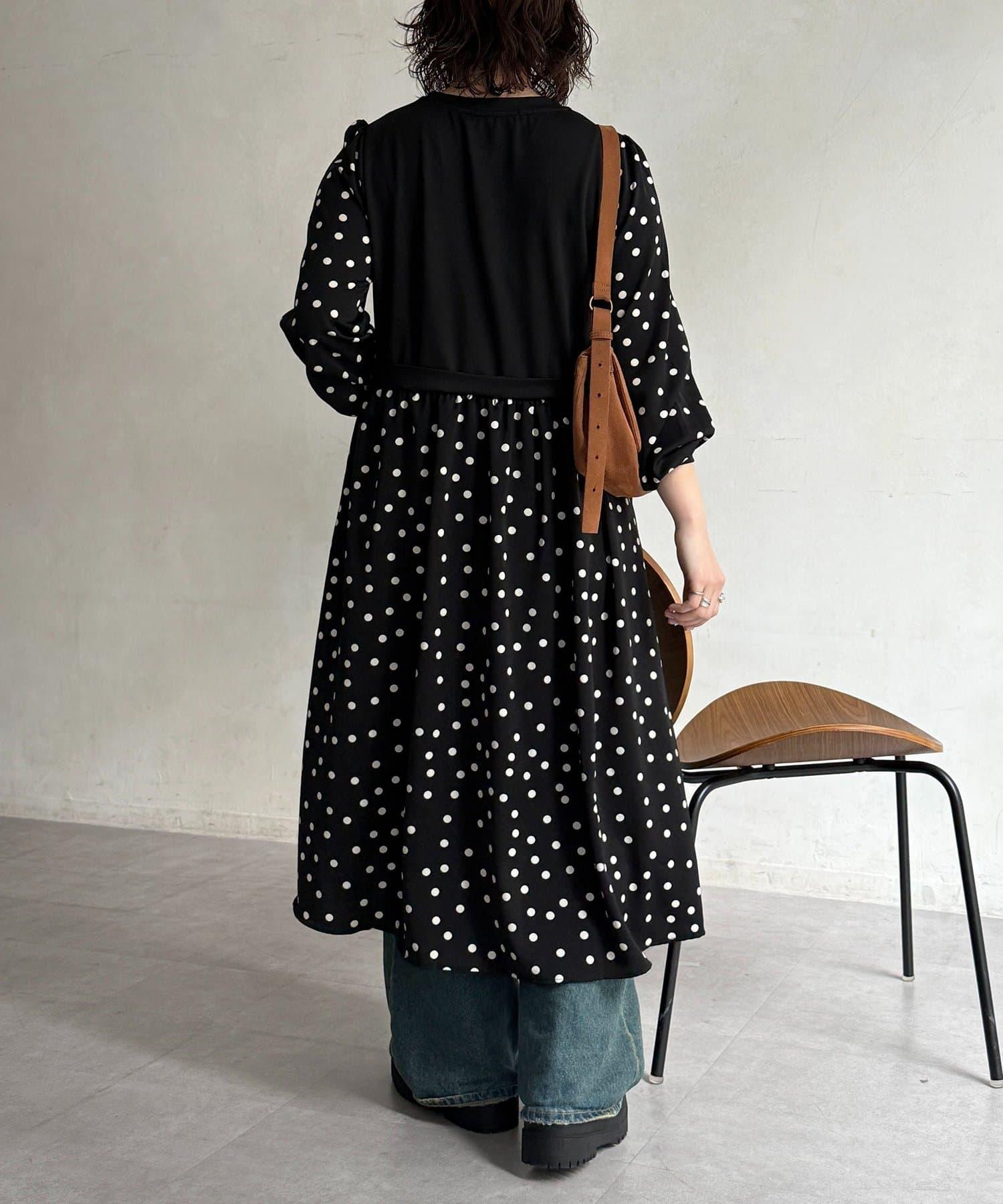 馬甲拼接波點連衣裙