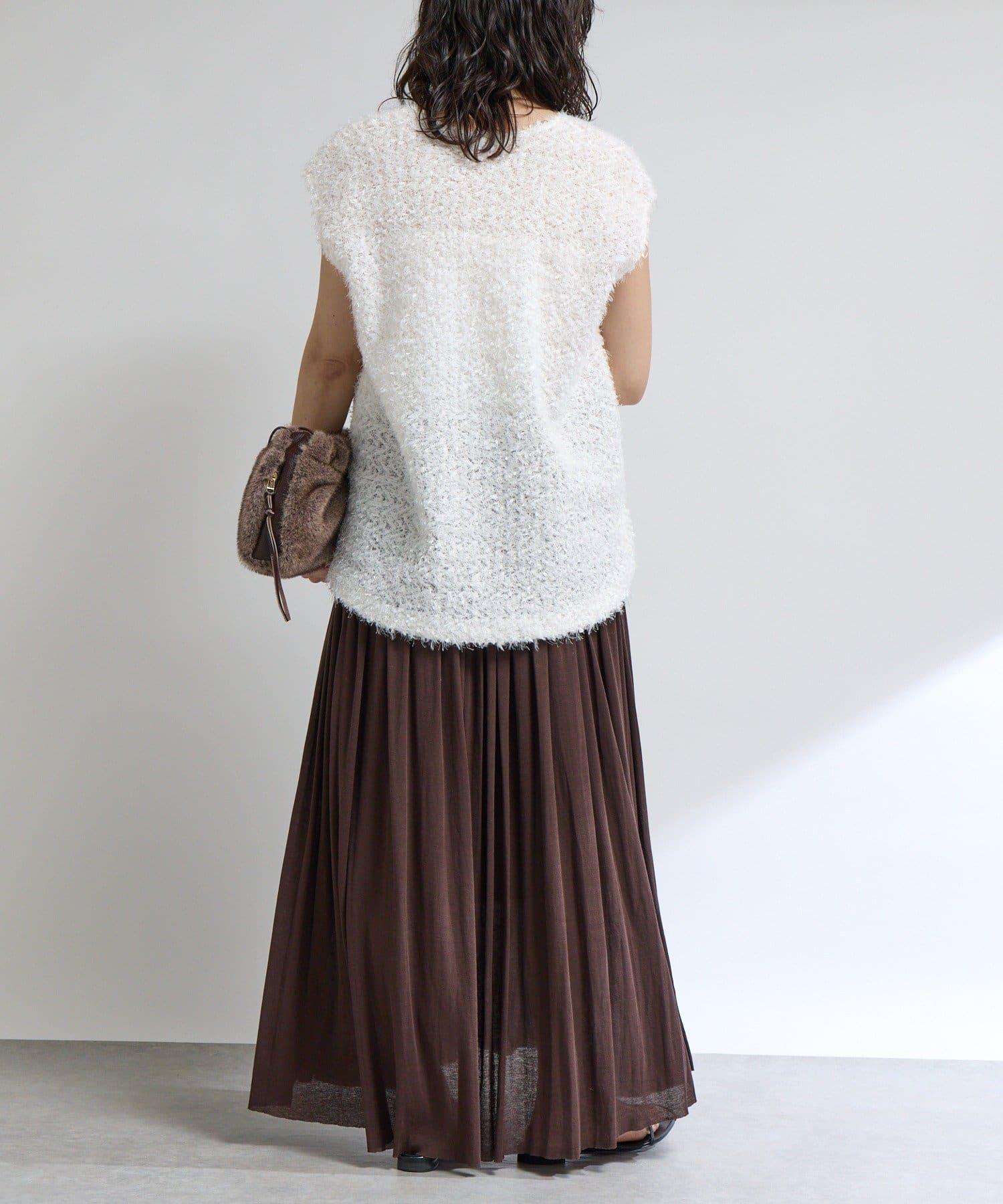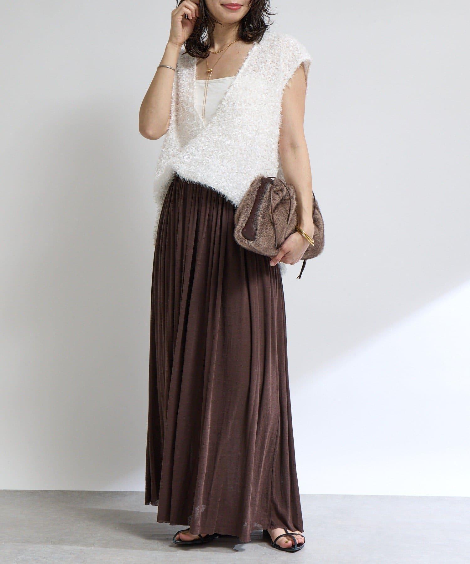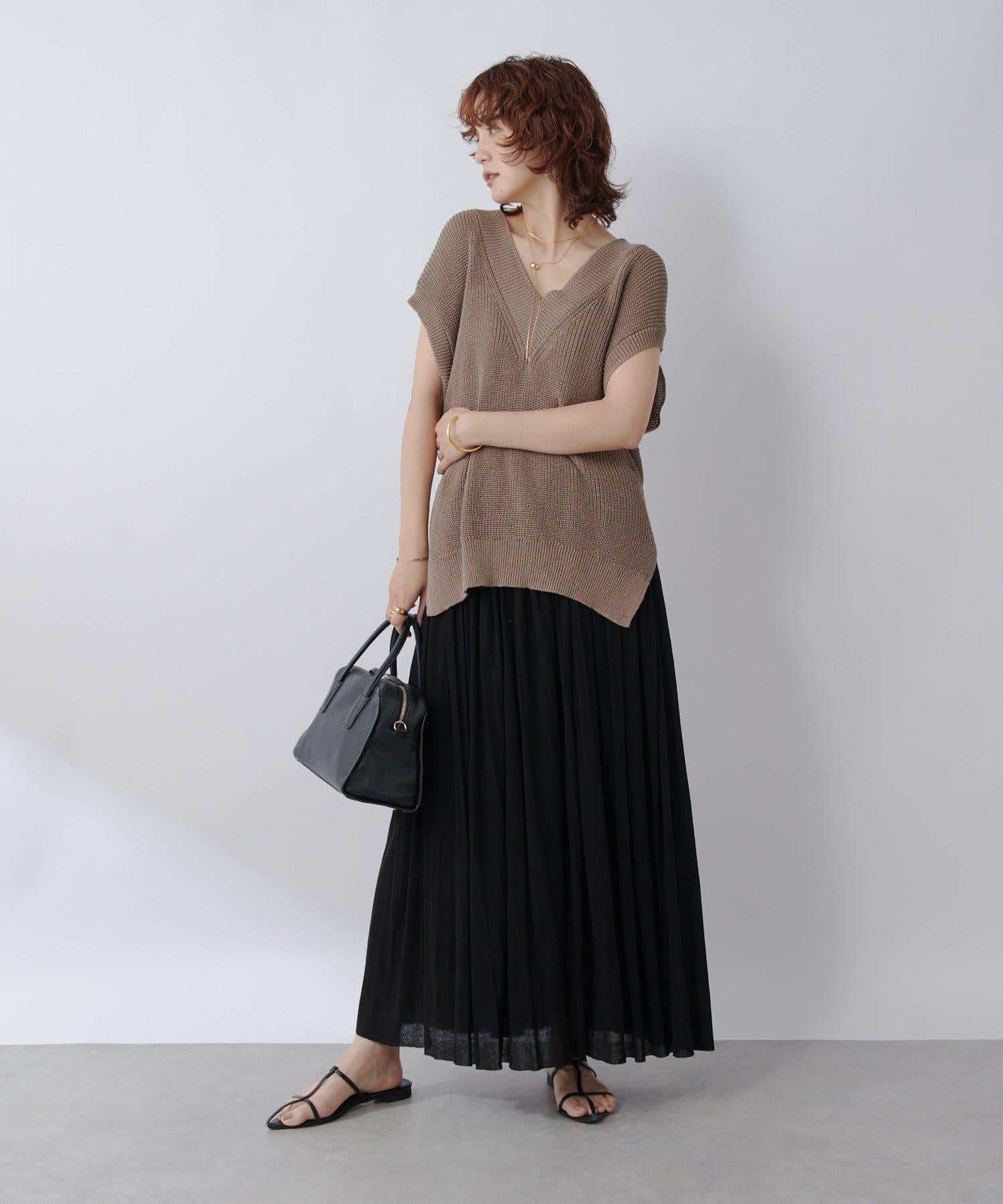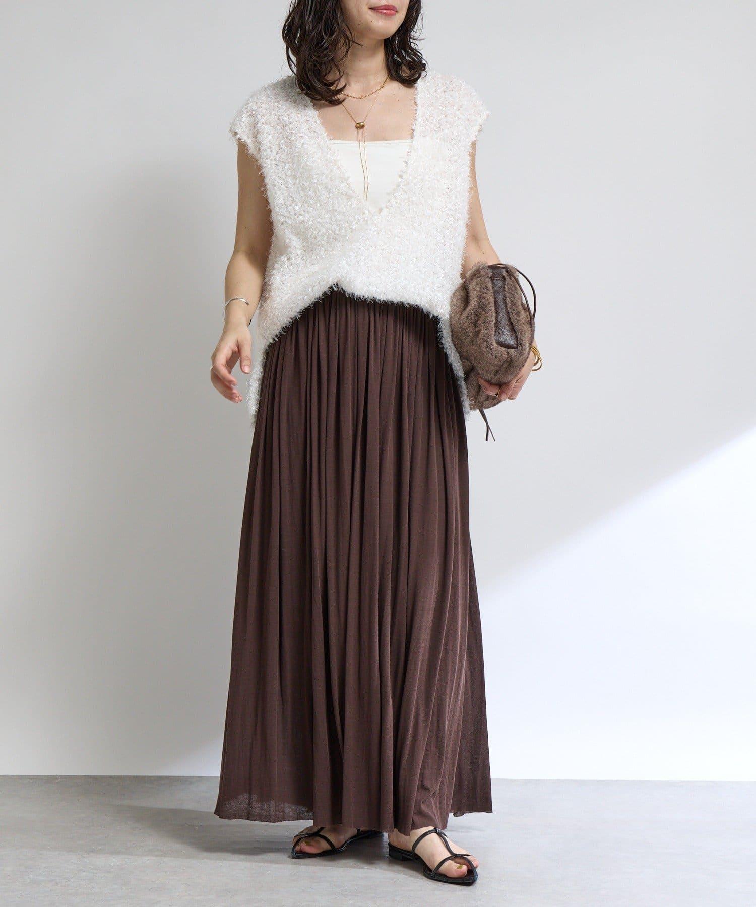 即使插入大量褶皺,面料的寬鬆感也能給人優雅的印象。