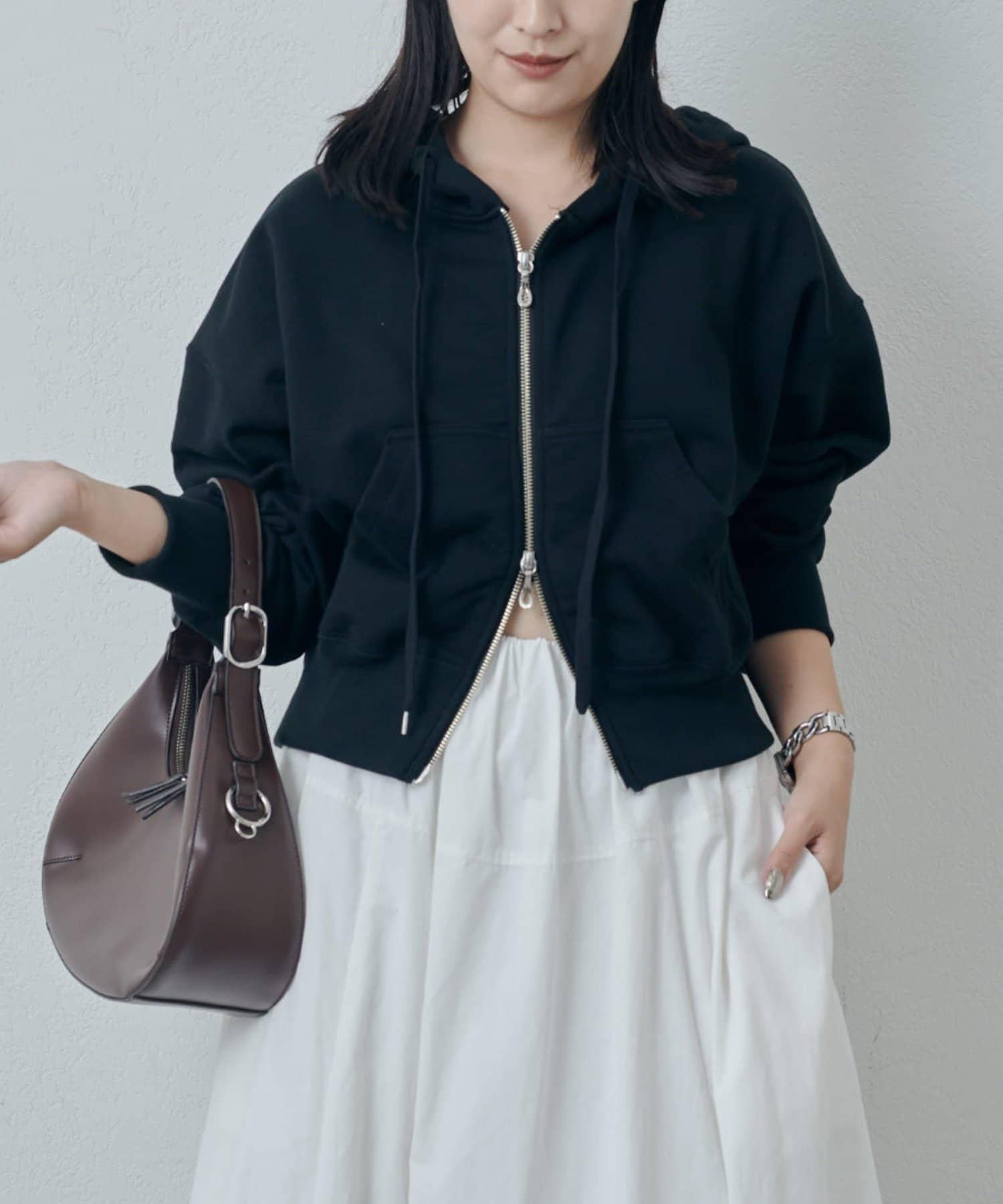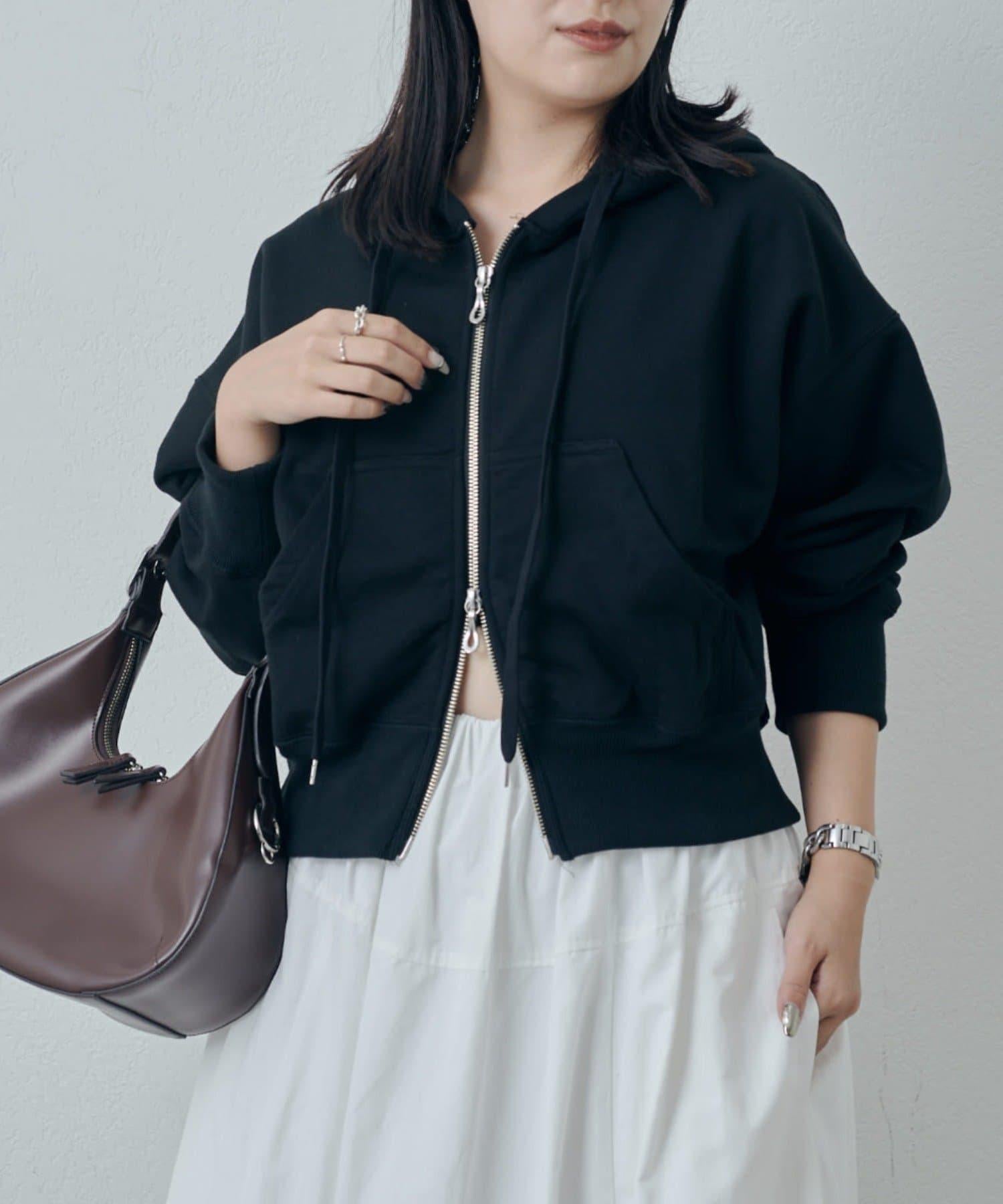 雙拉鍊連帽衫,穿著輕鬆自如。