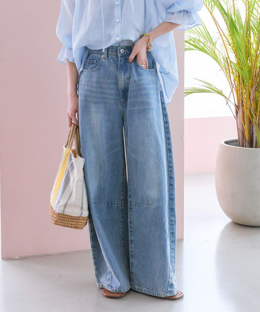 時尚的半喇叭牛仔布,配以閃閃發光的飾品。