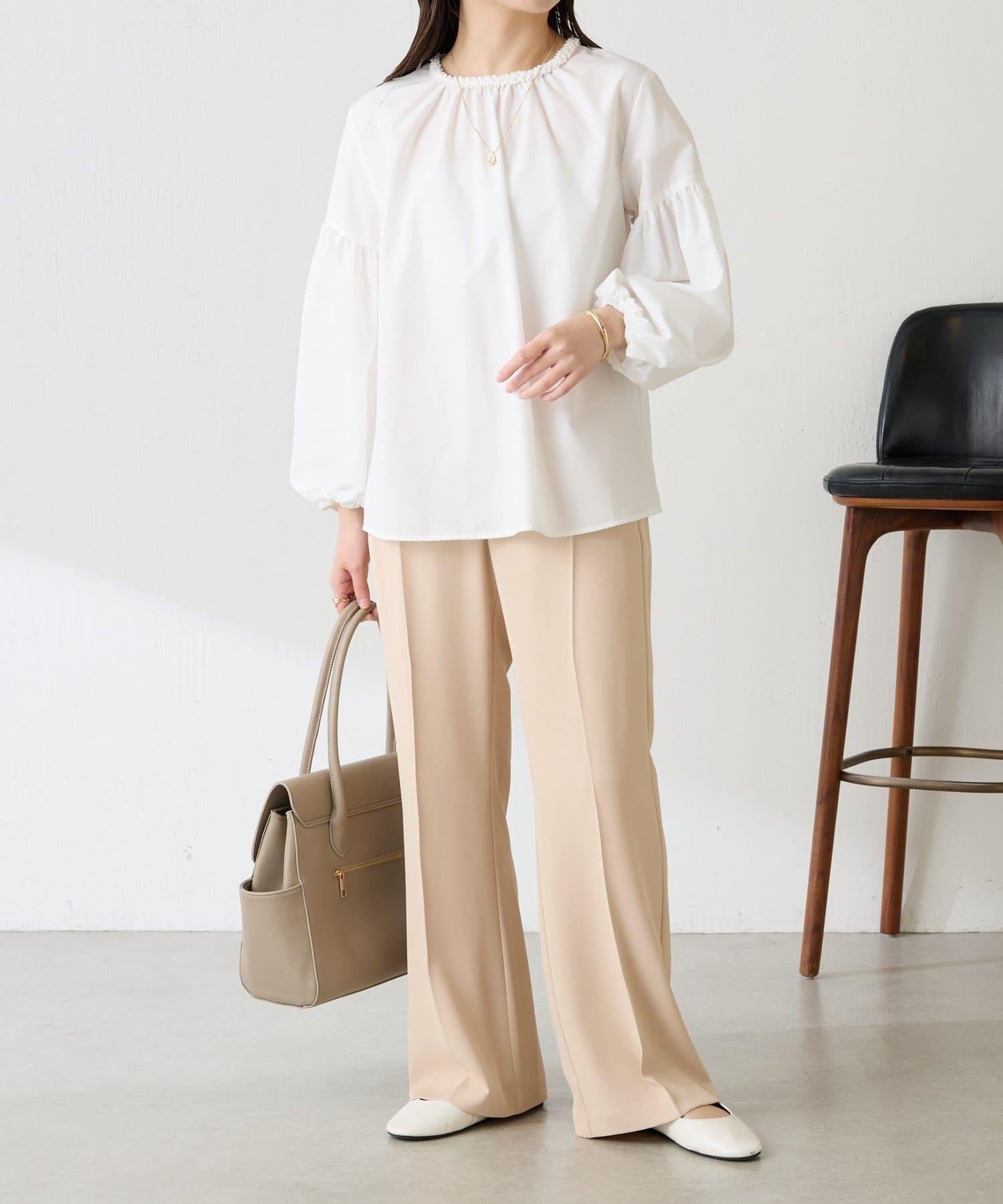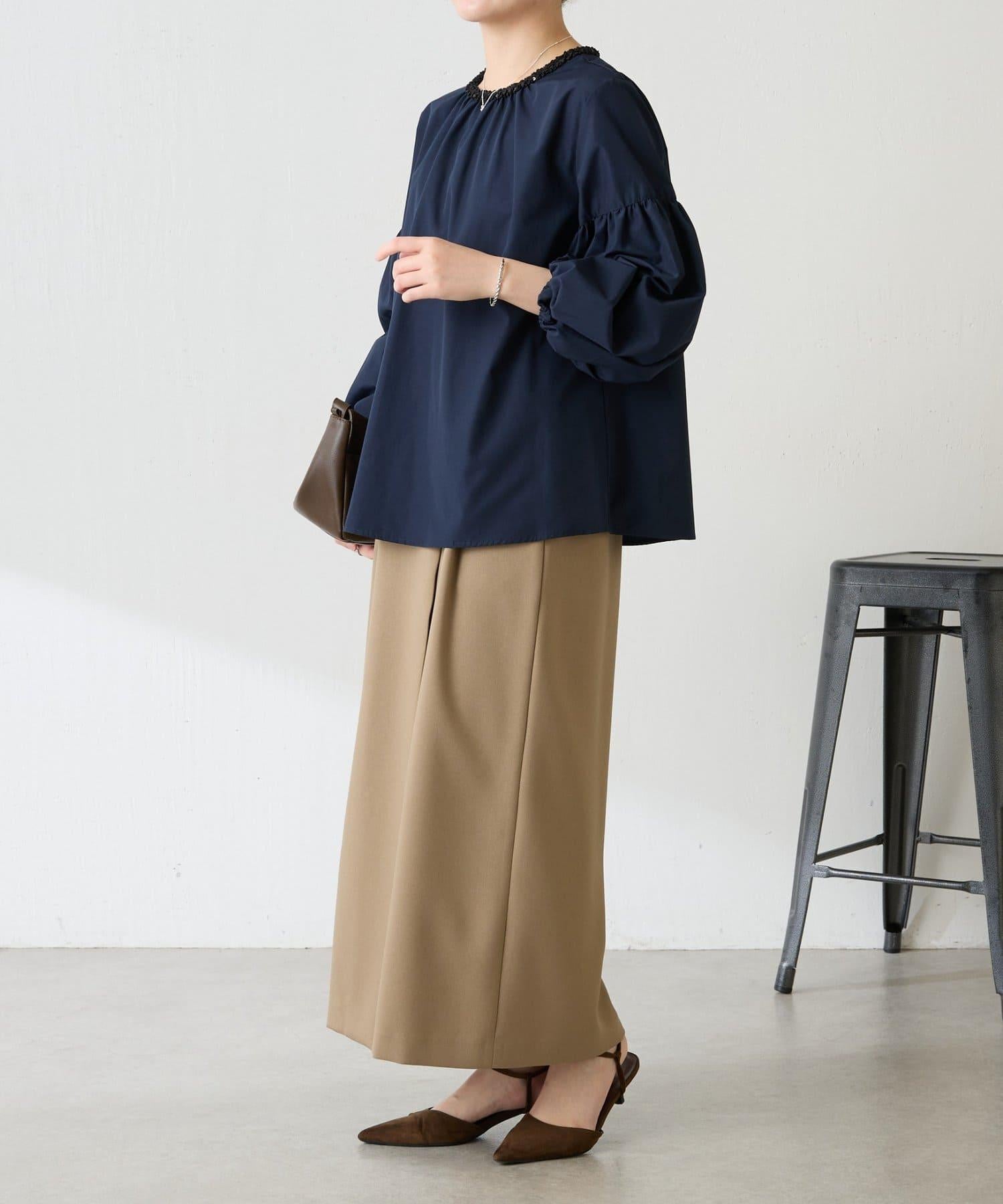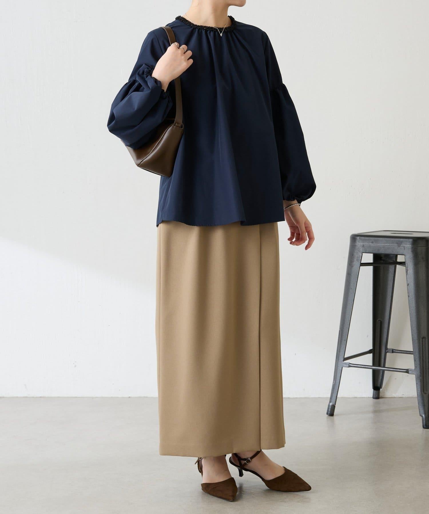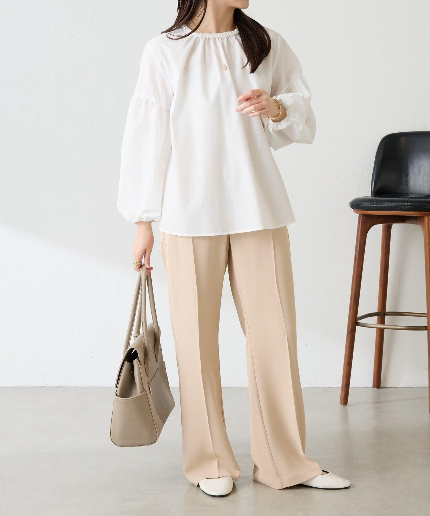 上衣採用蓬袖設計和略帶 A 字的廓形,所以能時尚地遮住身形也是一個不錯的亮點。