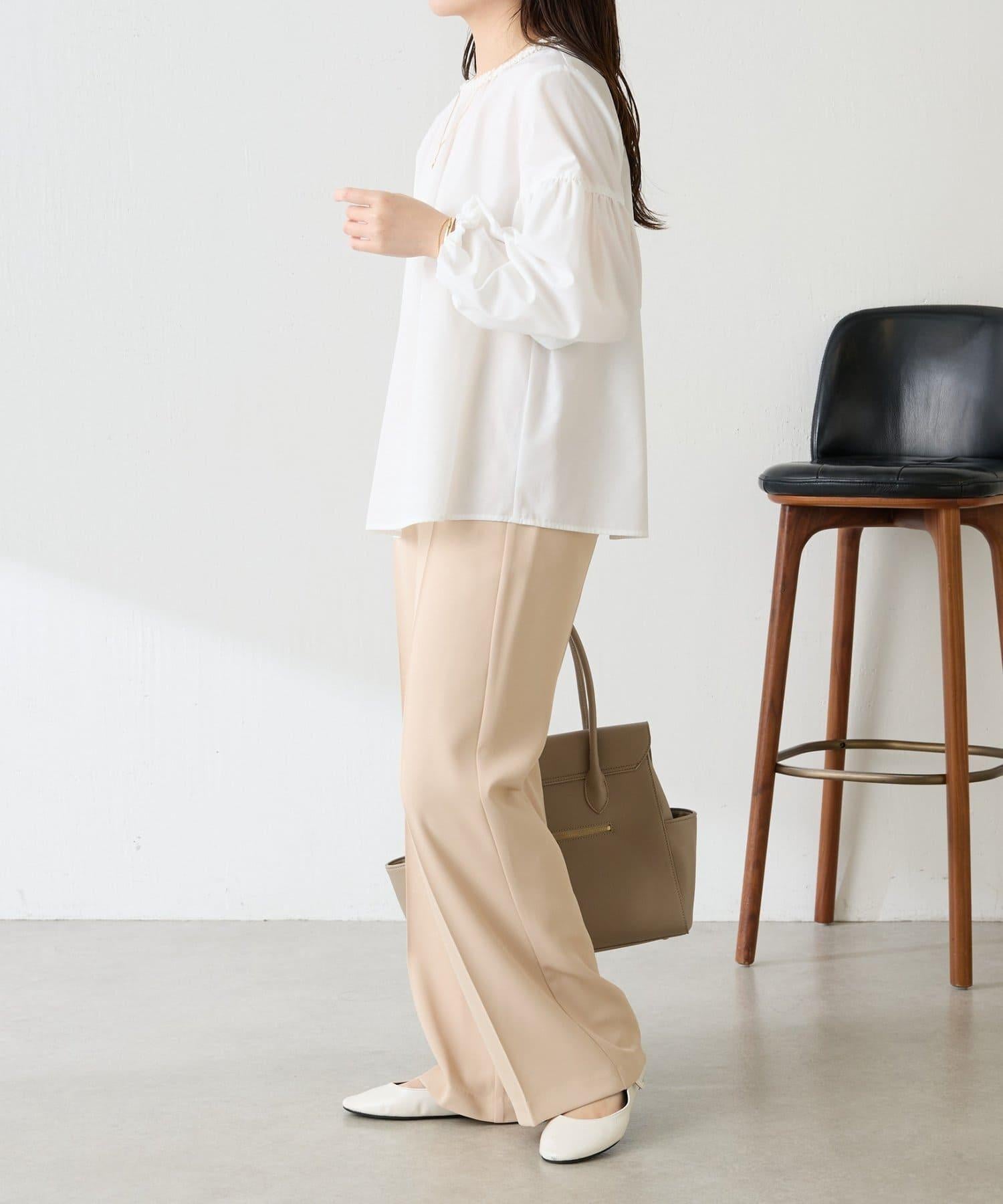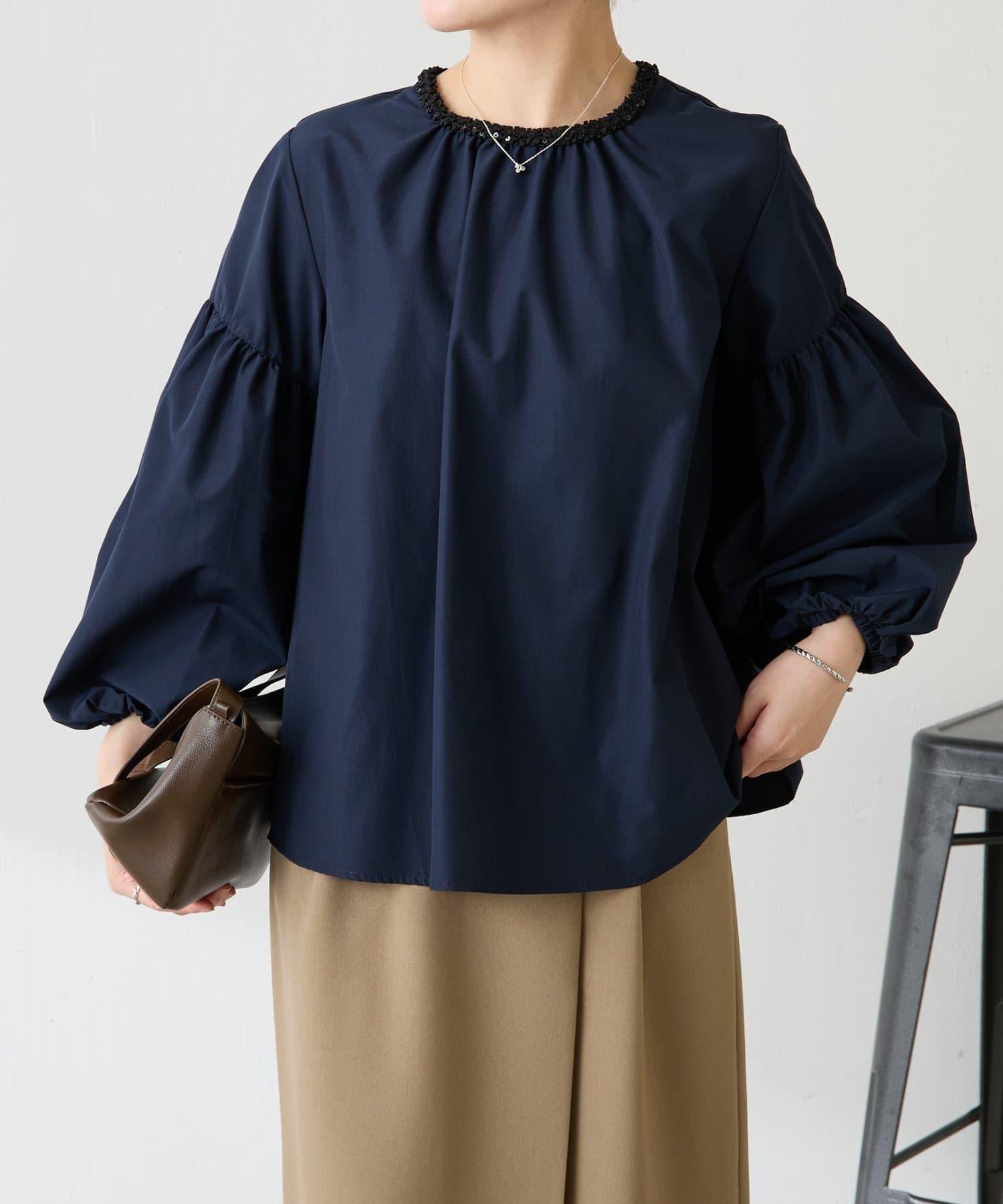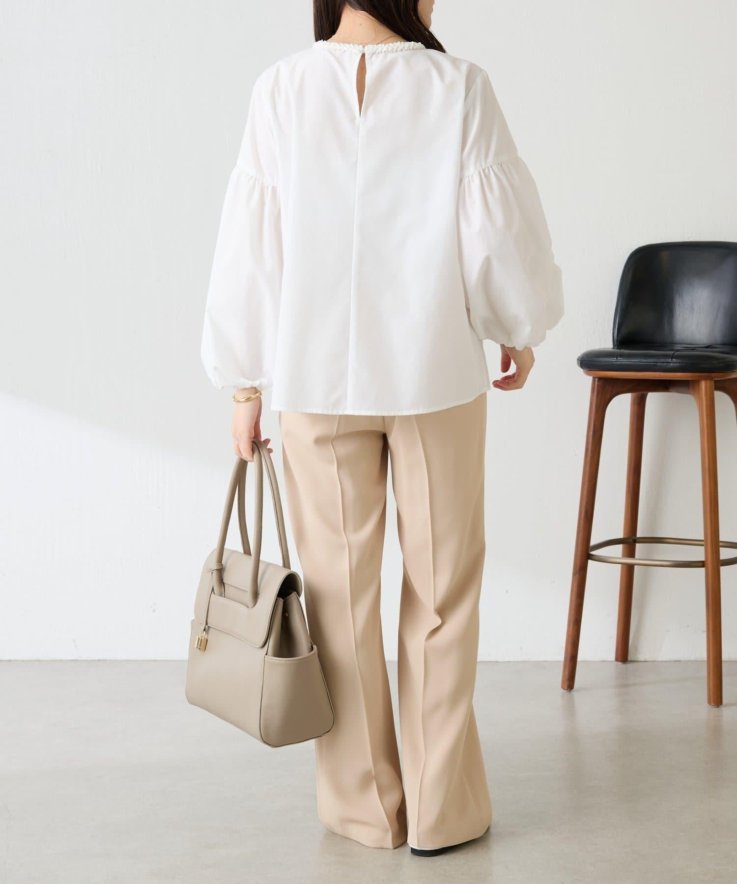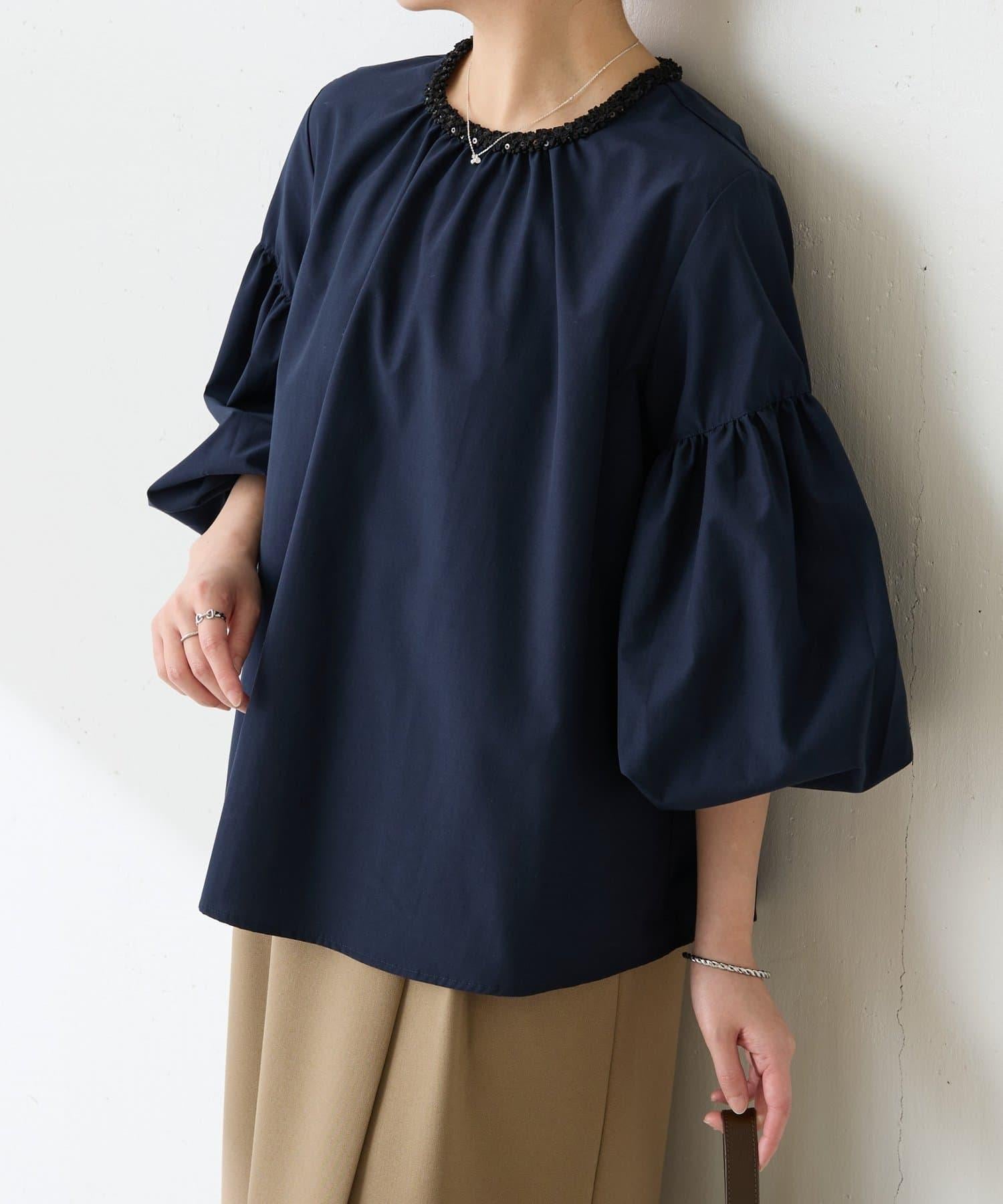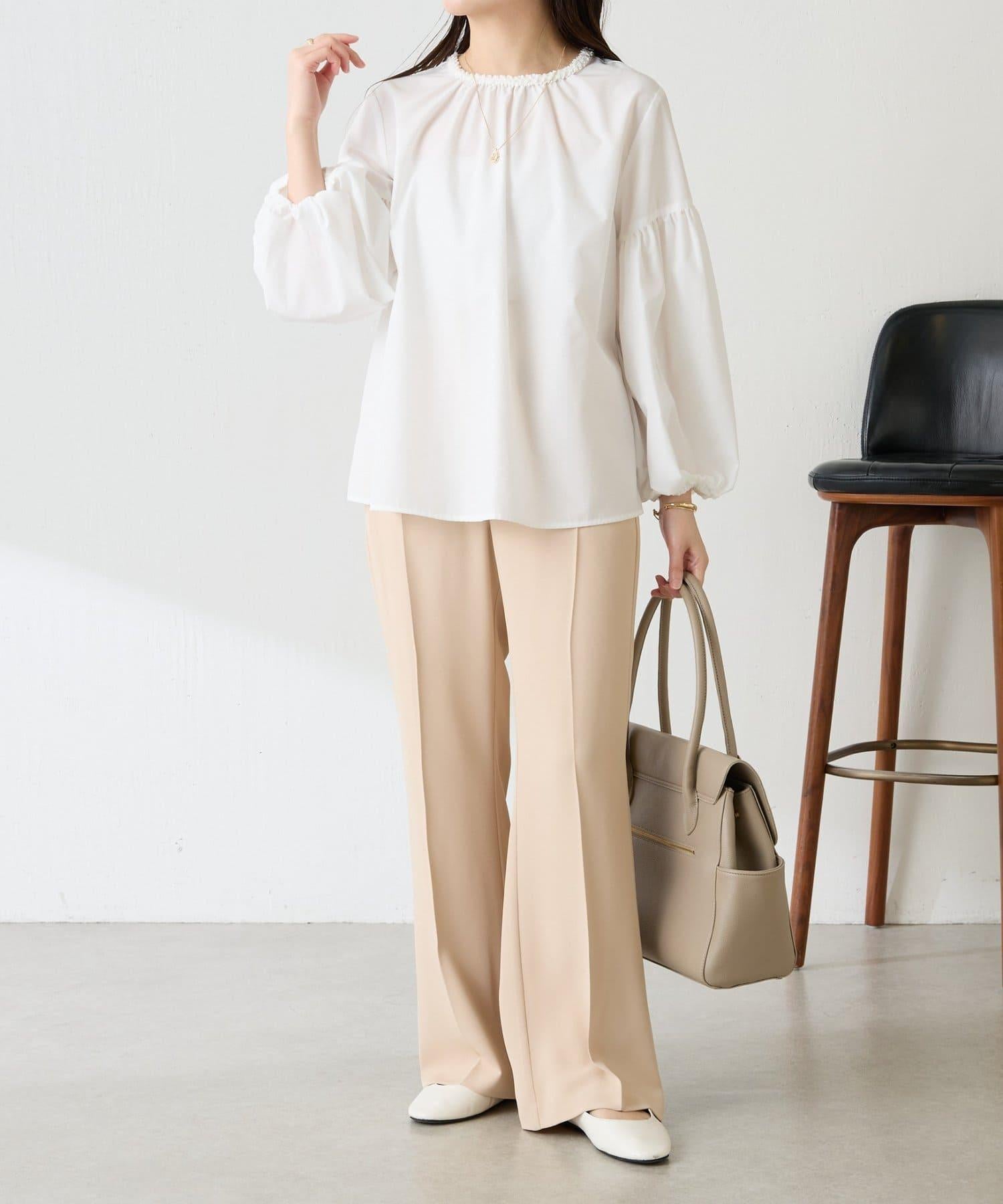 上衣採用蓬袖設計和略帶 A 字的廓形,所以能時尚地遮住身形也是一個不錯的亮點。