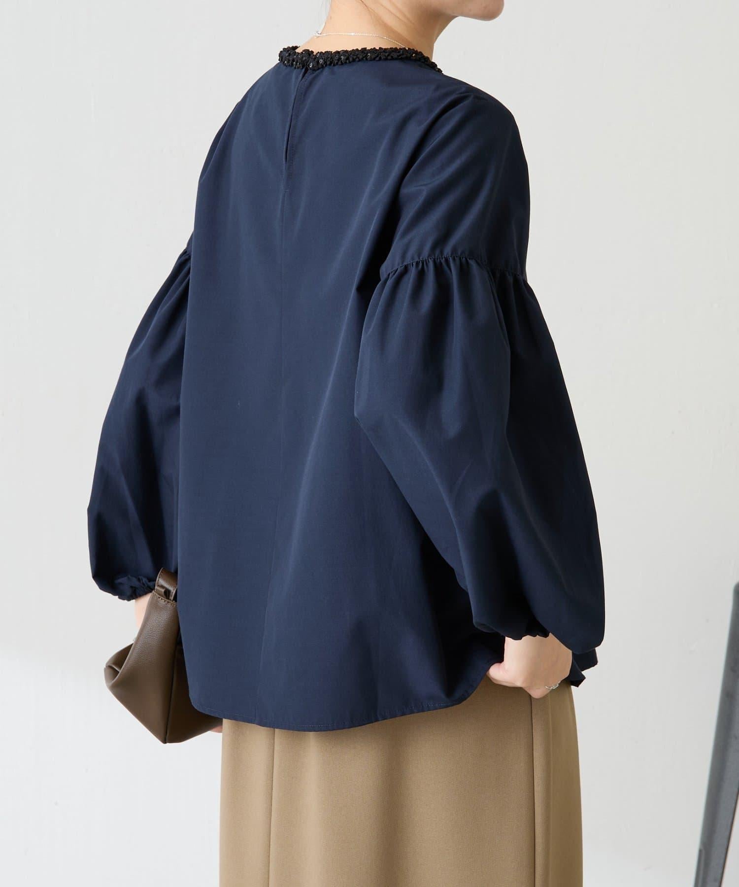領口飾有同色系亮片帶,無需配飾即可打造迷人造型。