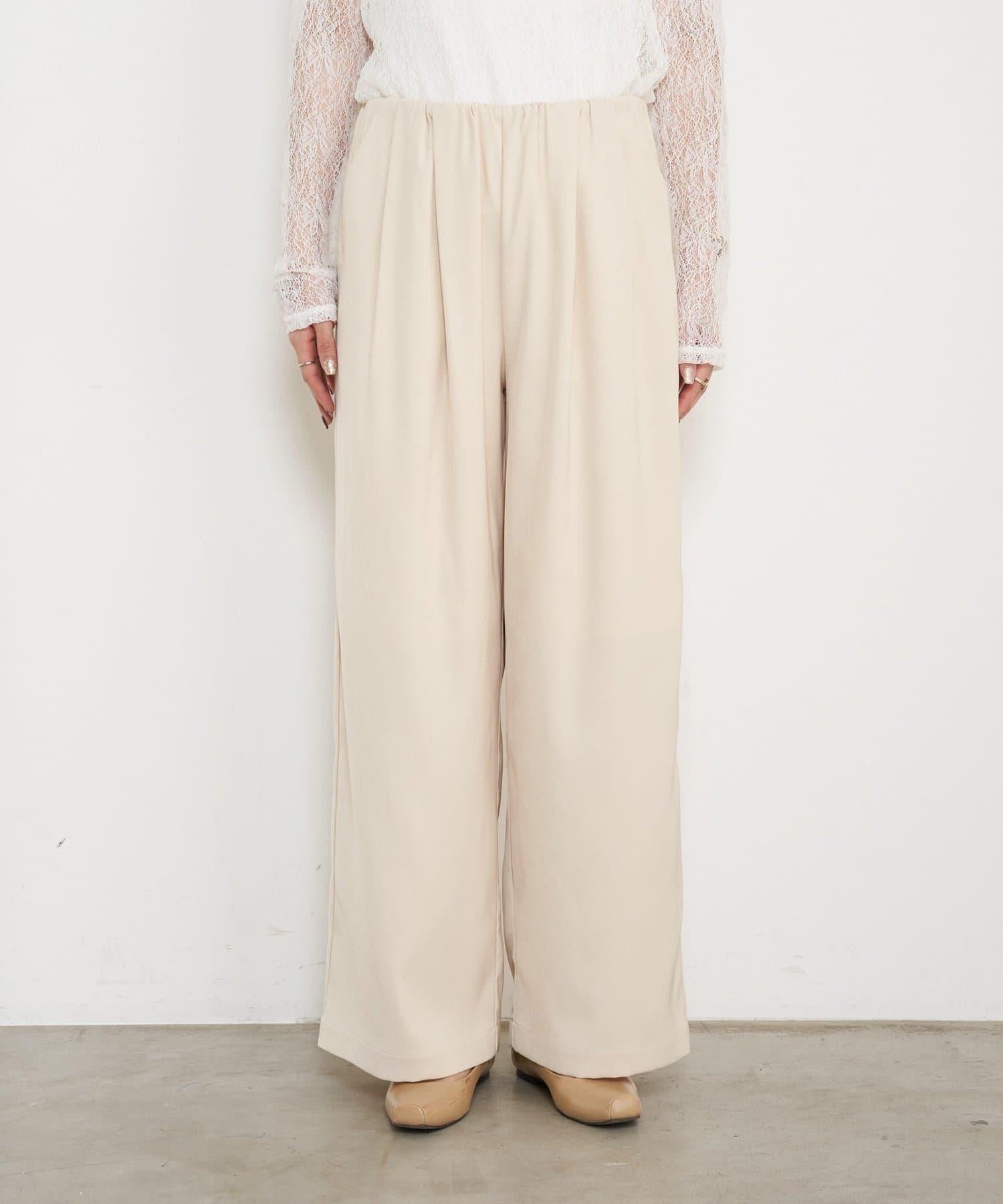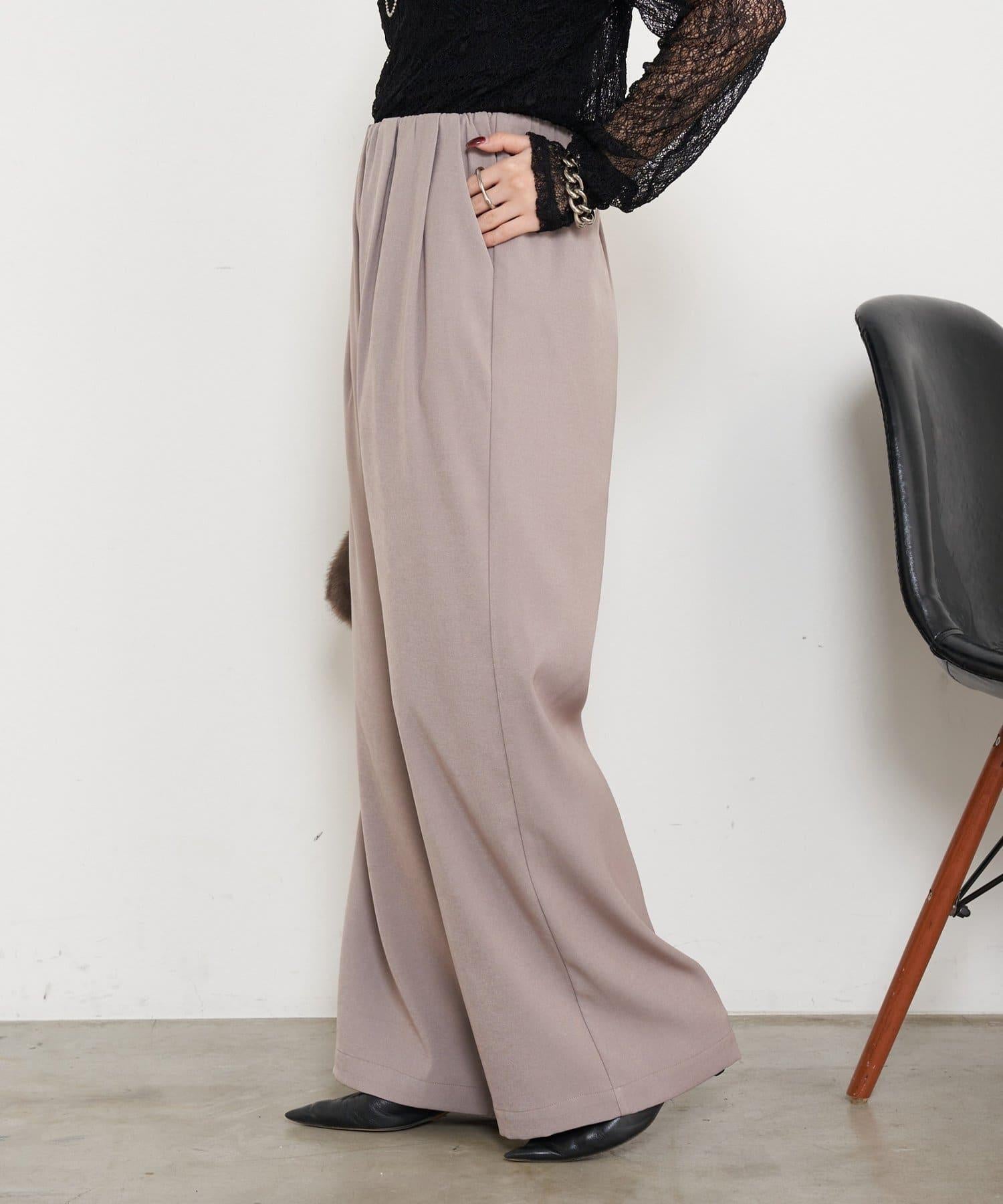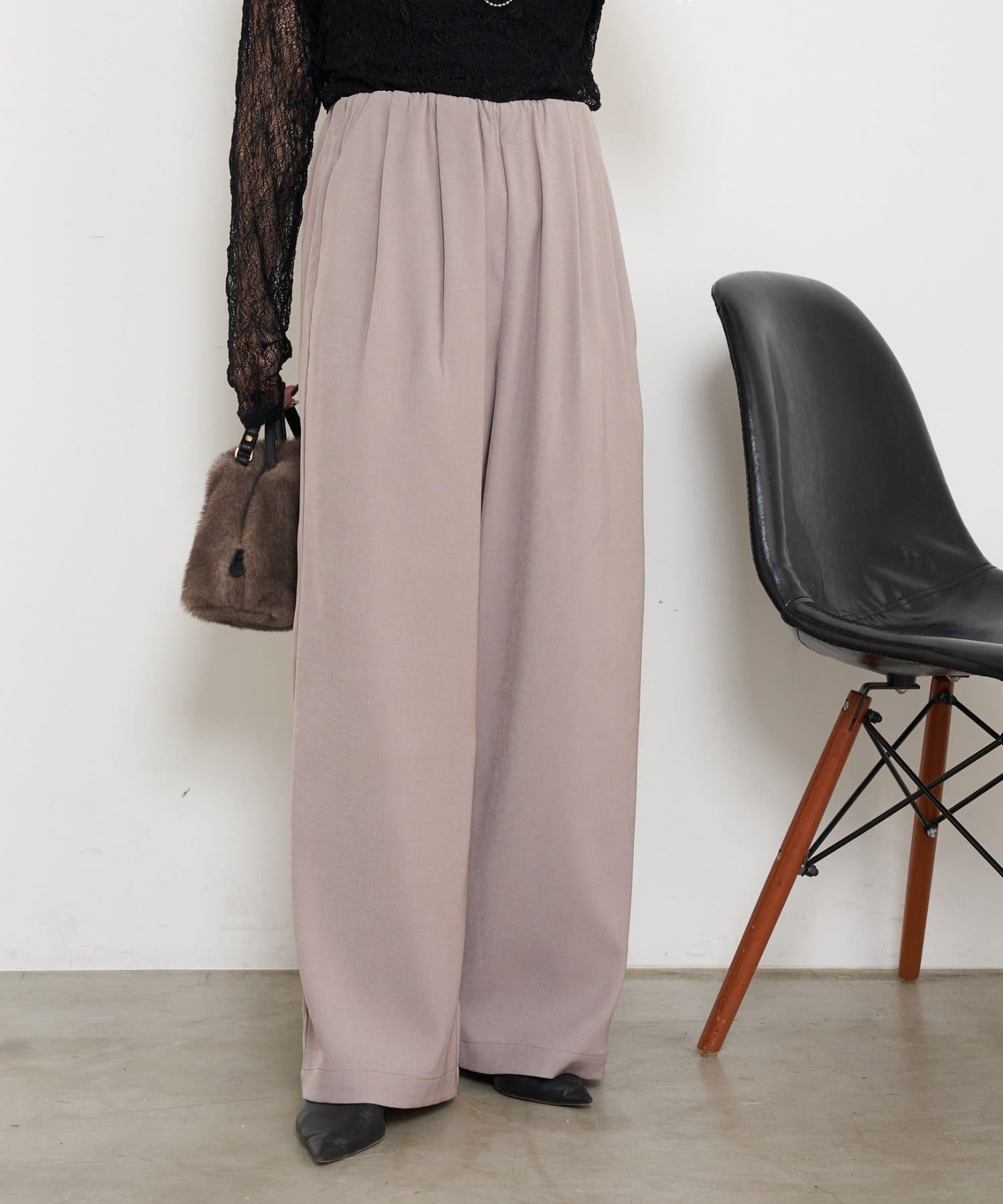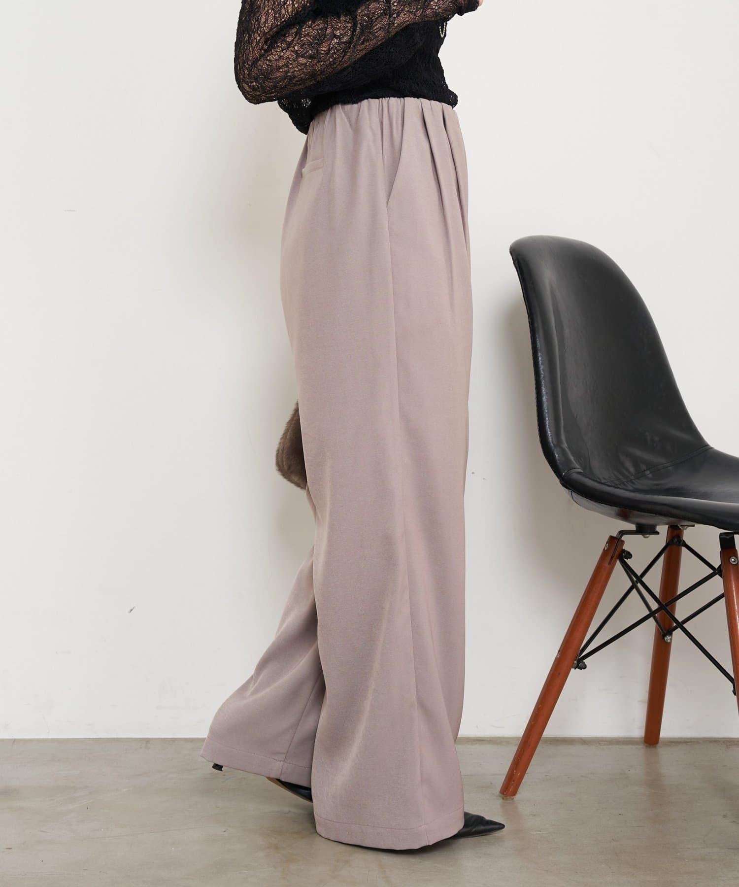 高腰抽褶寬腿褲