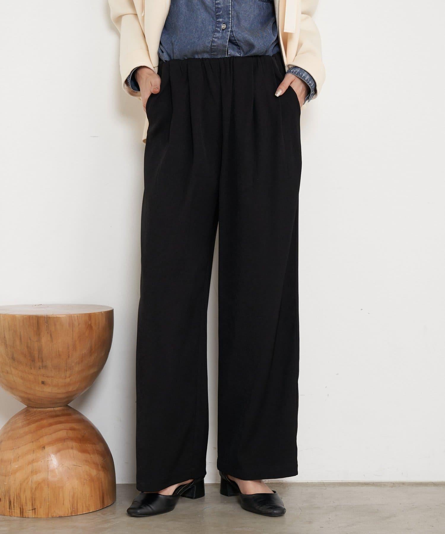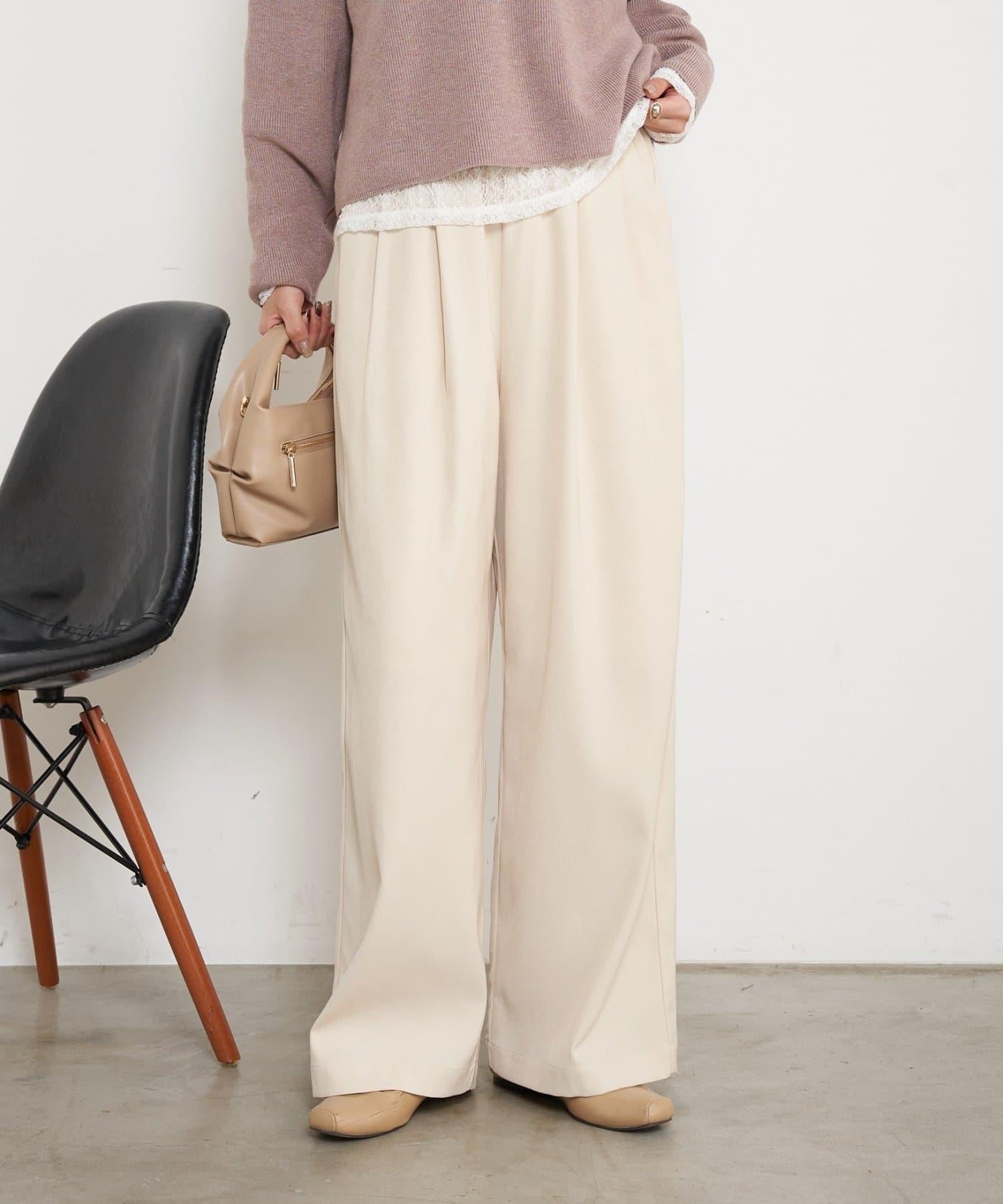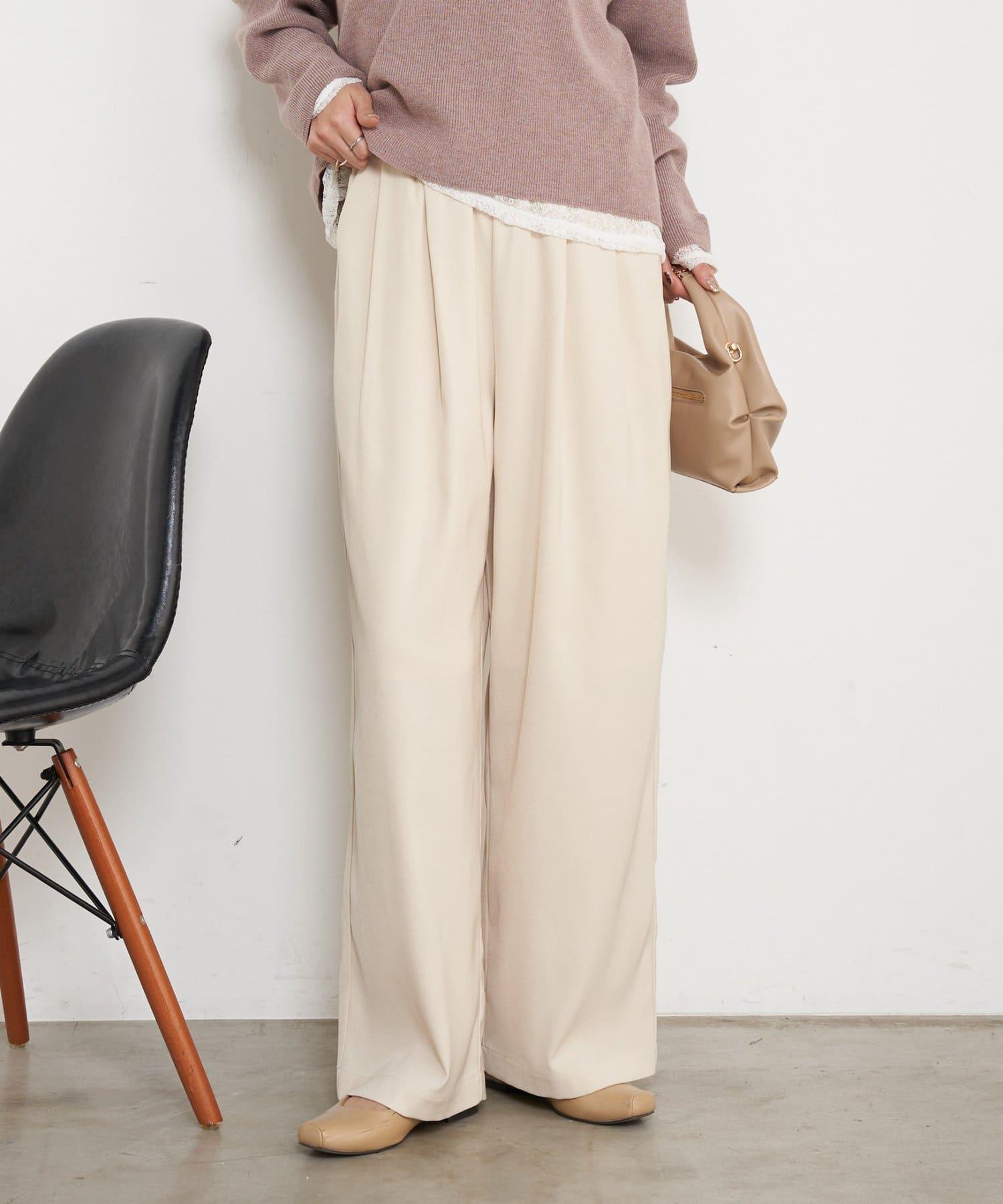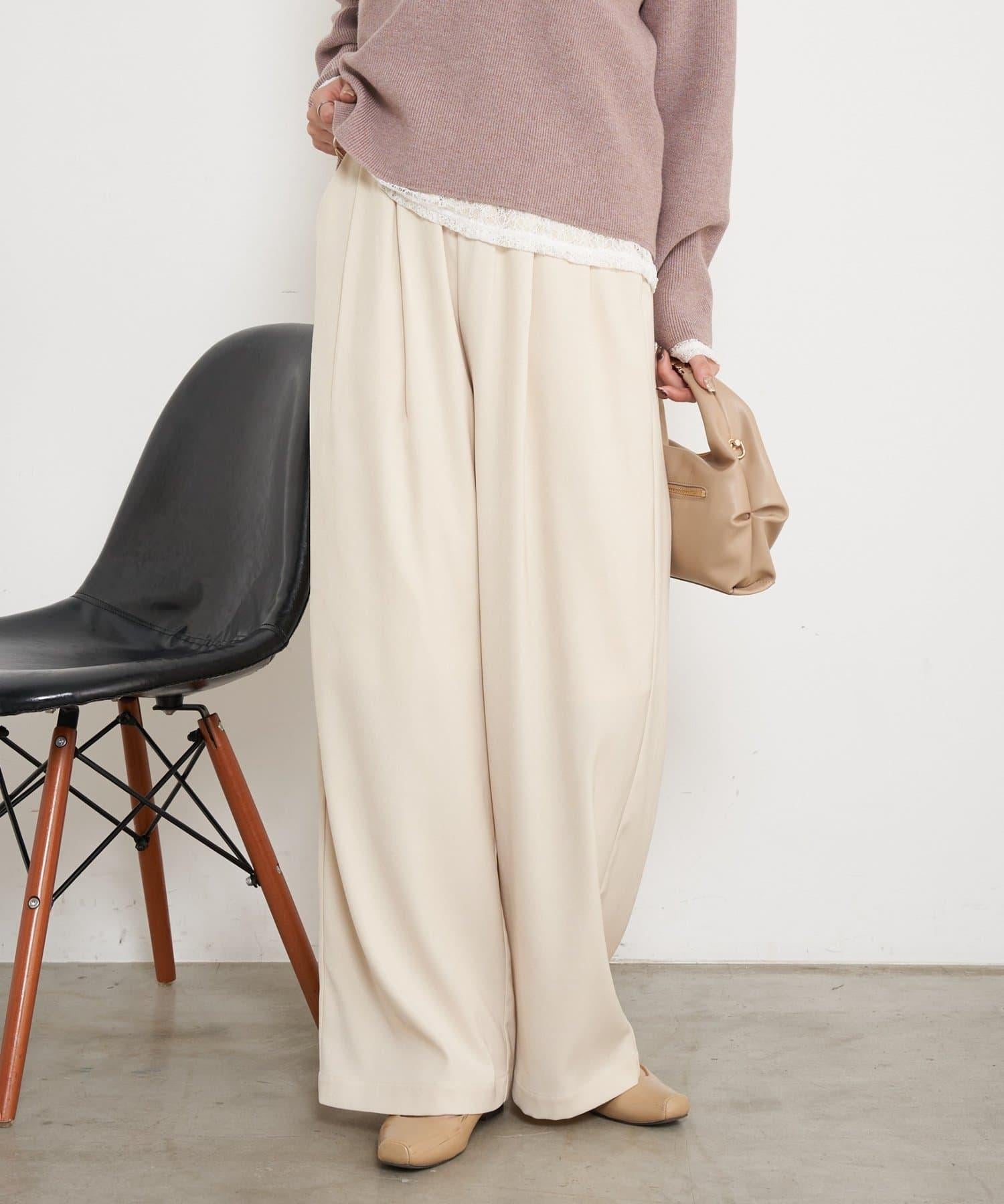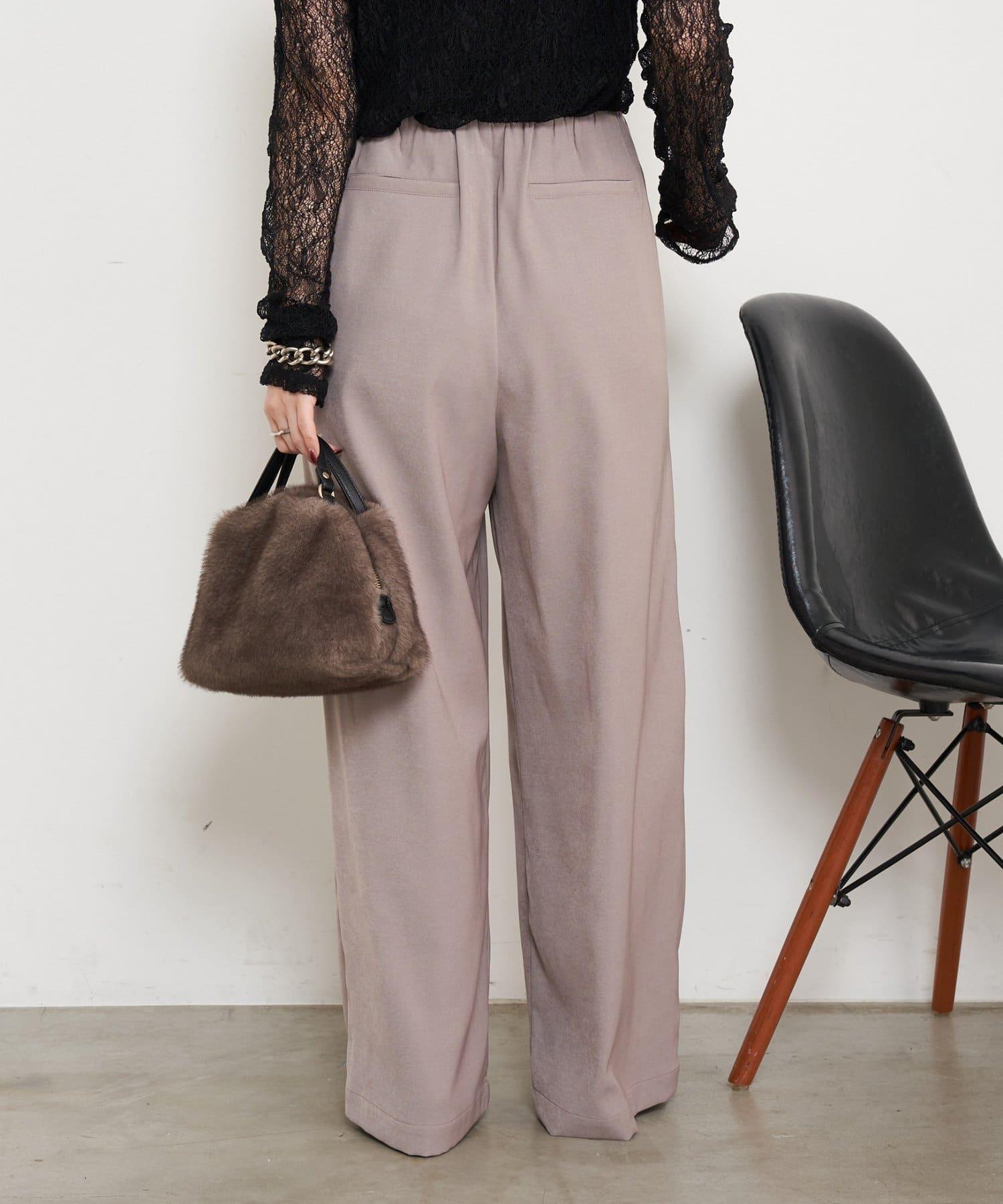 高腰抽褶寬腿褲