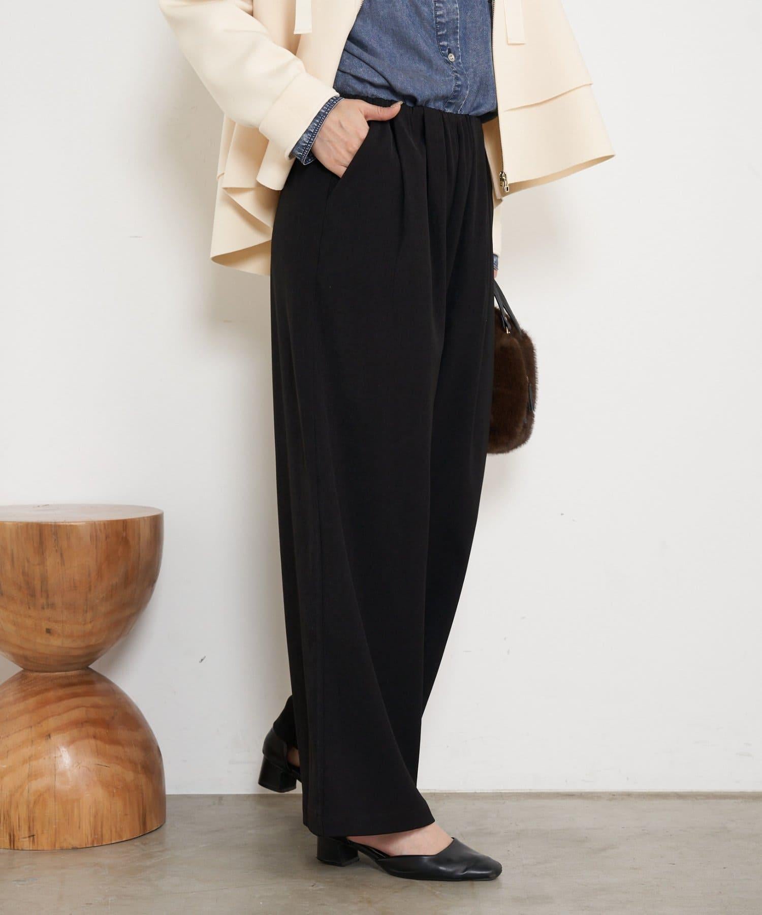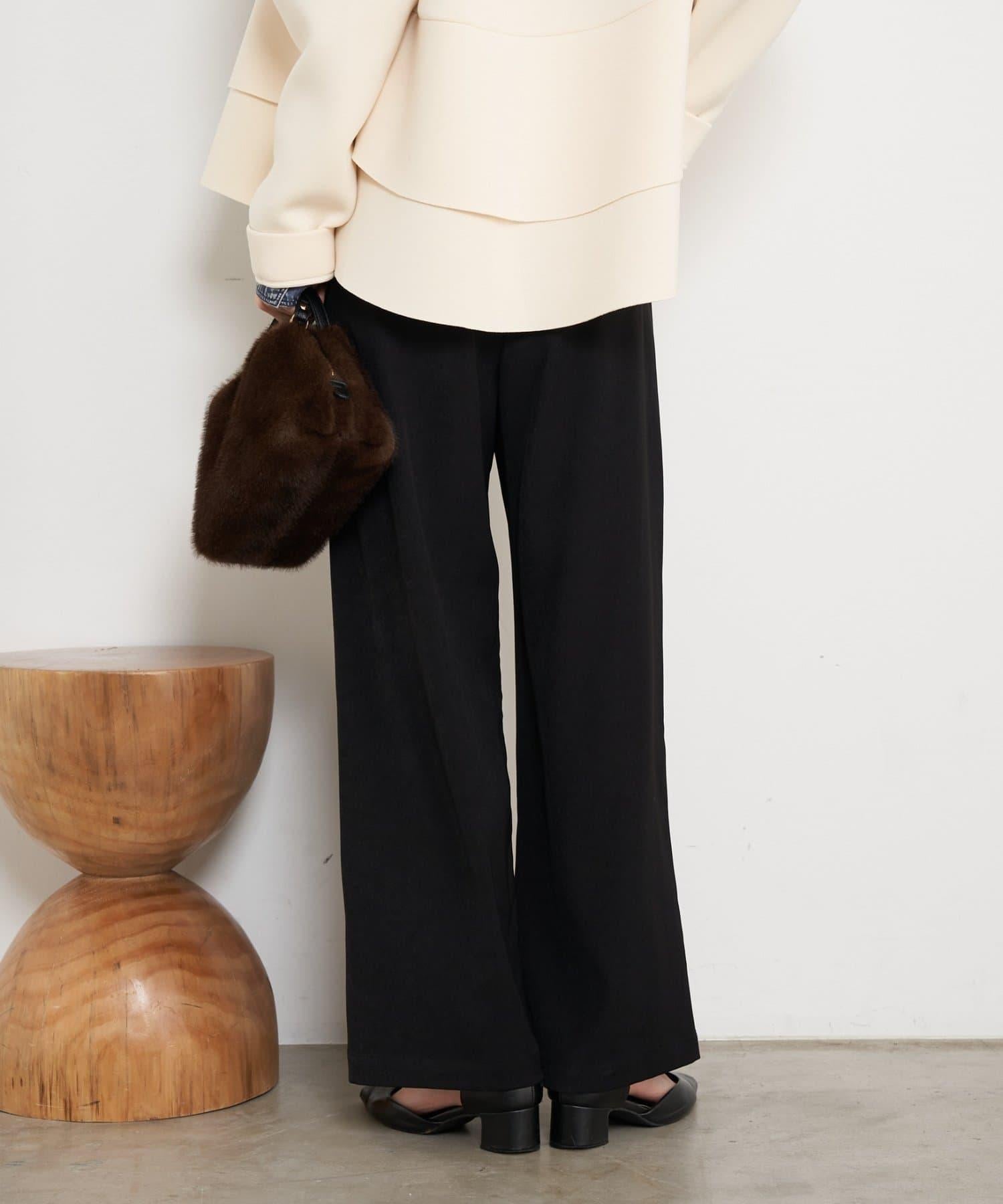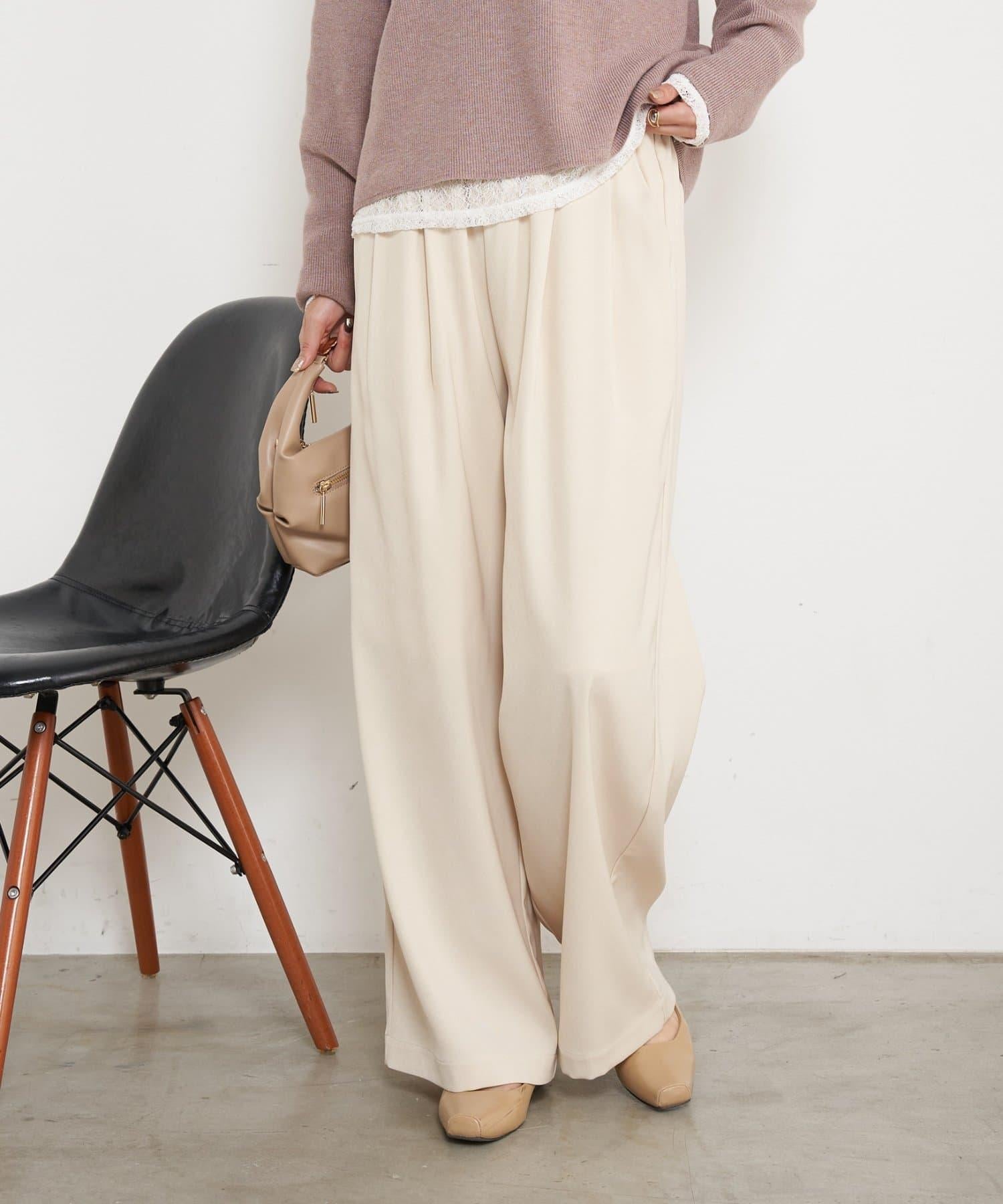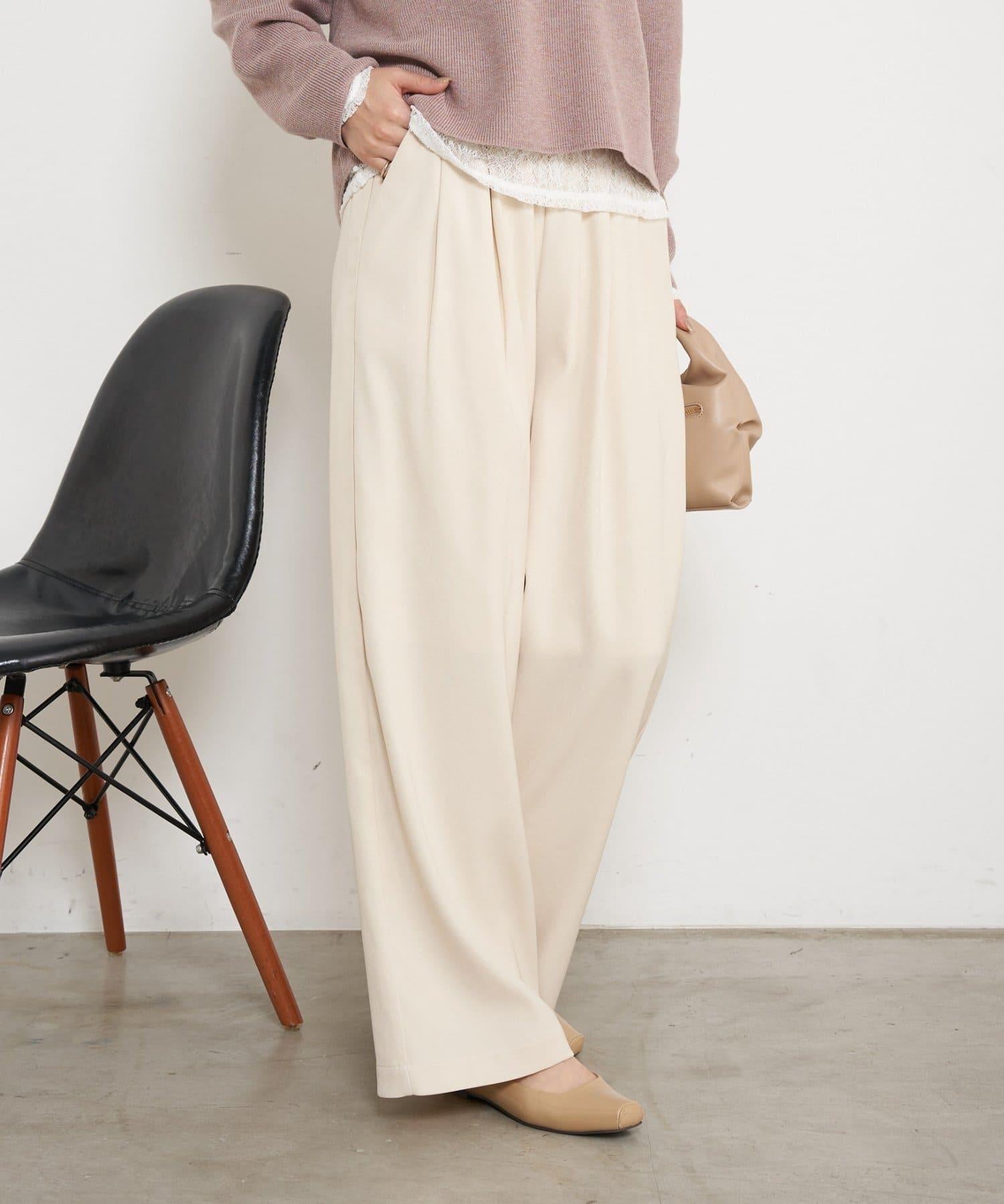 高腰抽褶寬腿褲