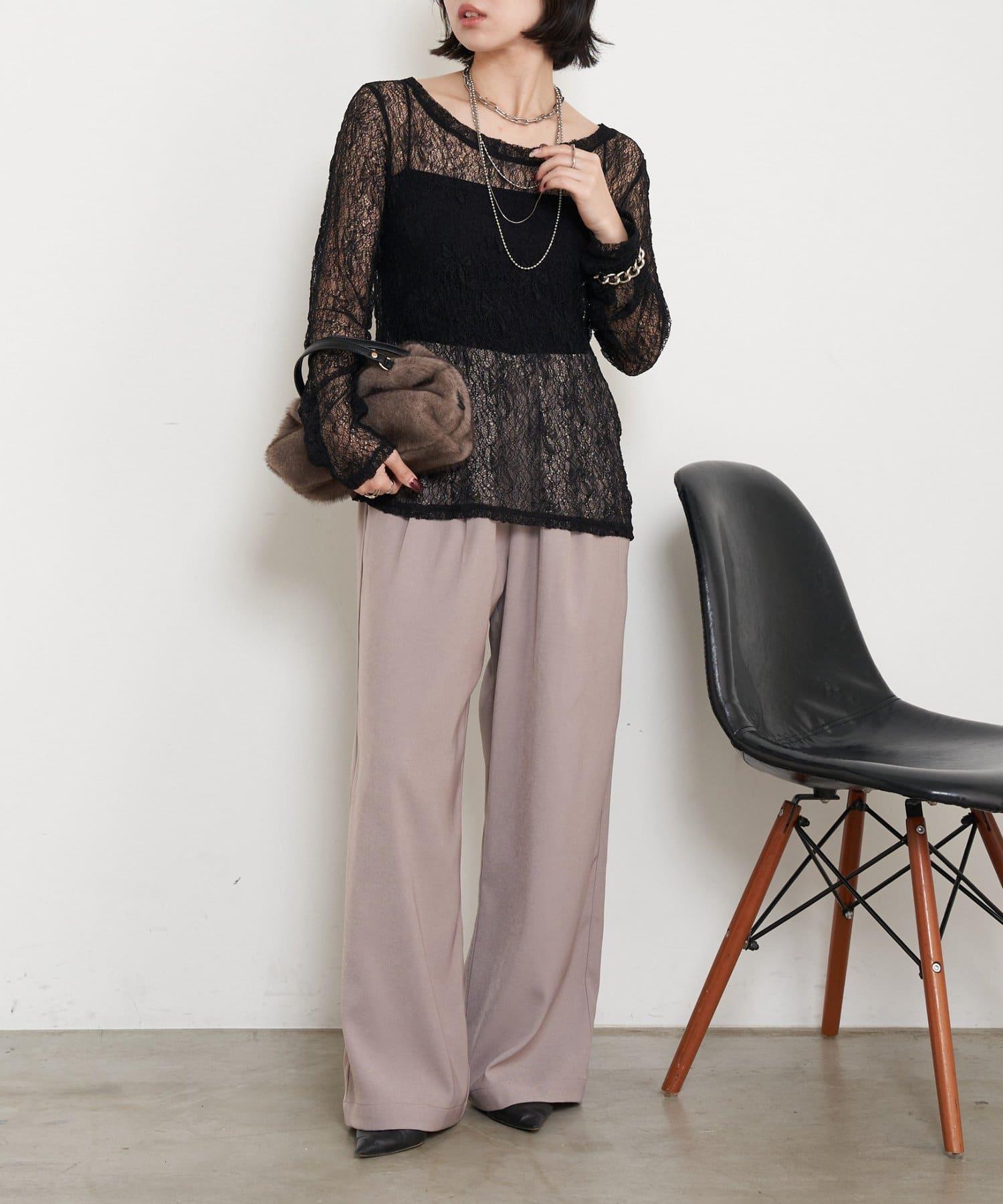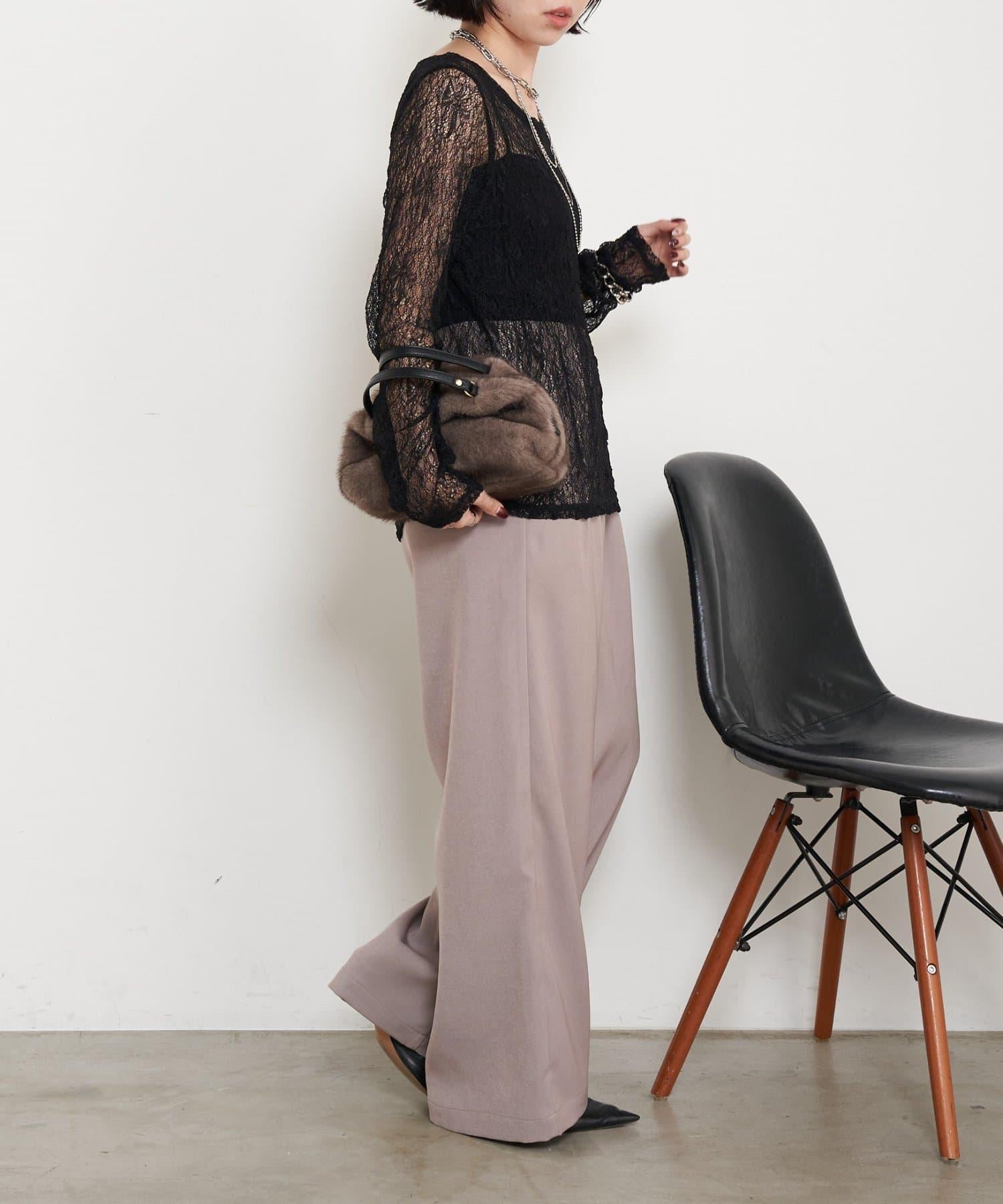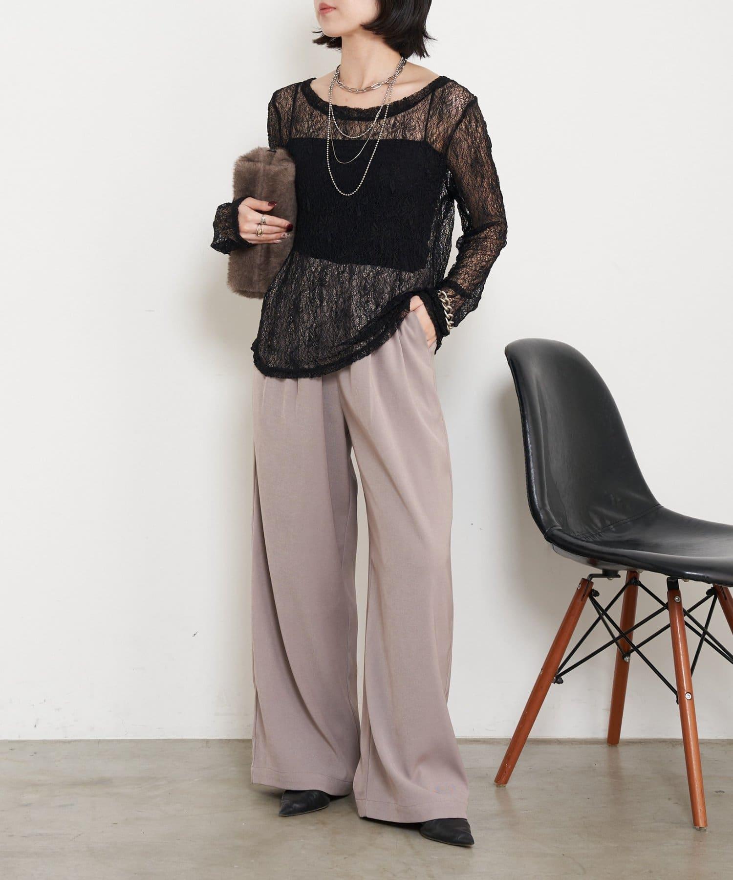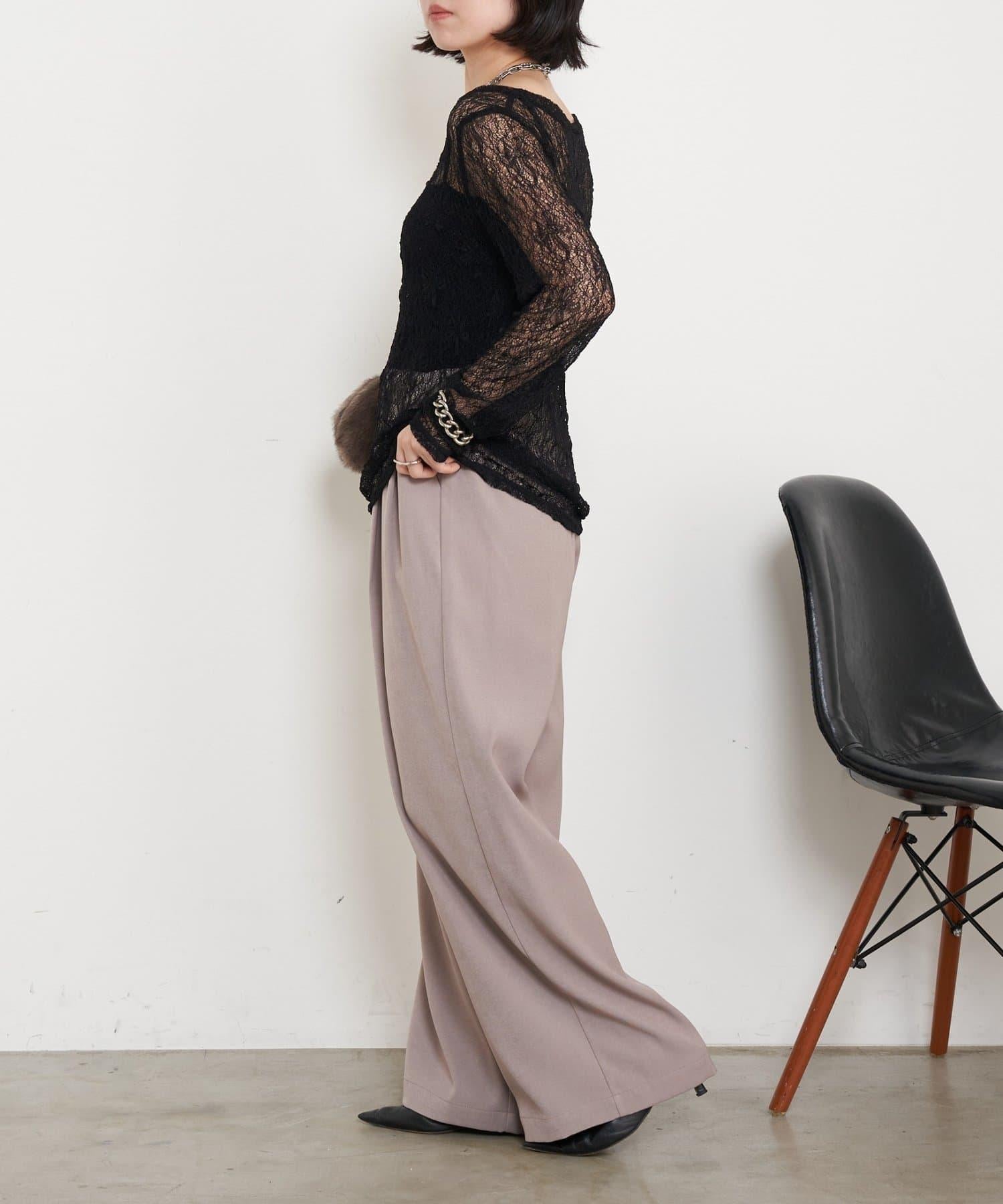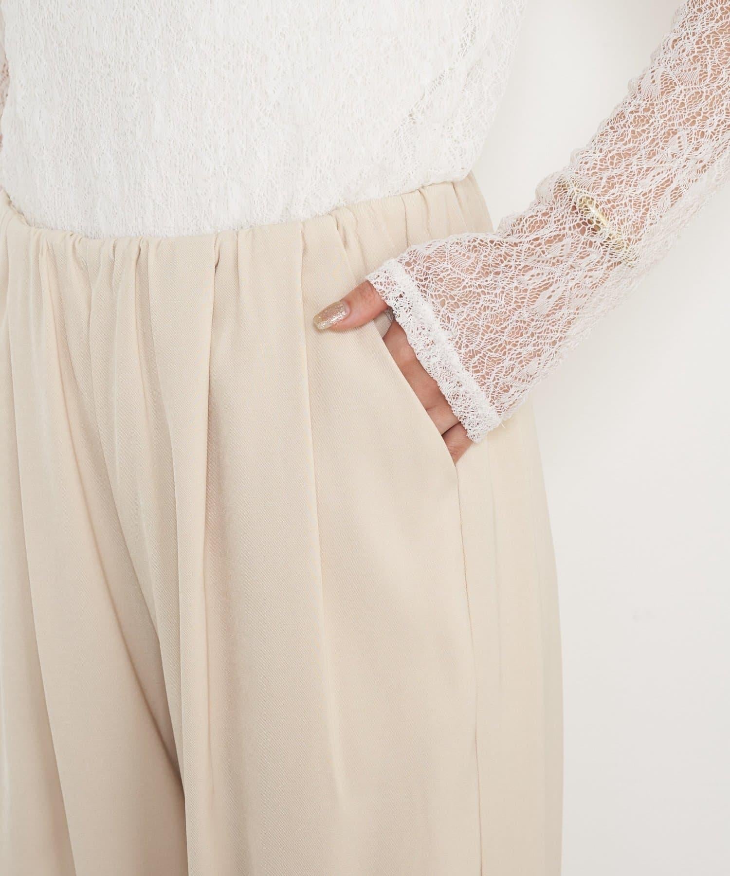 高腰抽褶寬腿褲