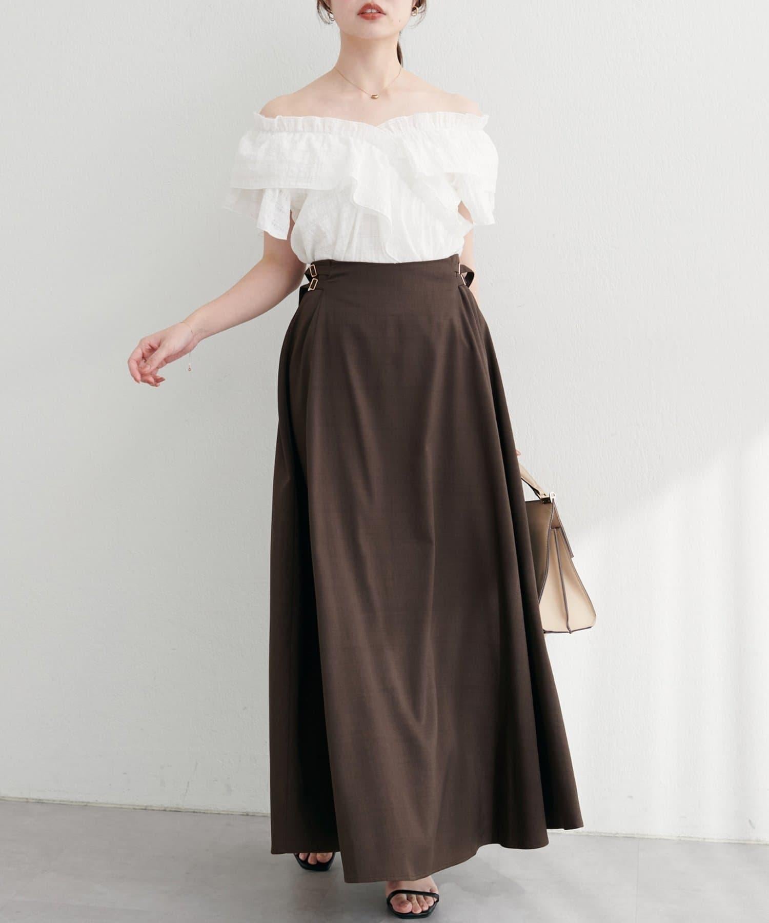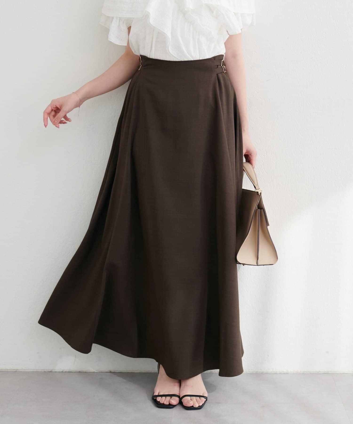 高腰設計的喇叭裙襬,在行走時搖曳生姿,盡顯女性魅力。