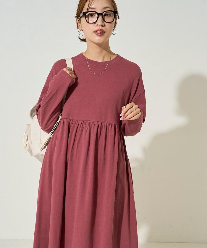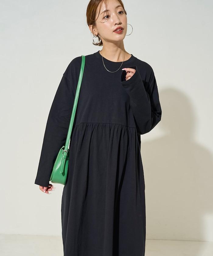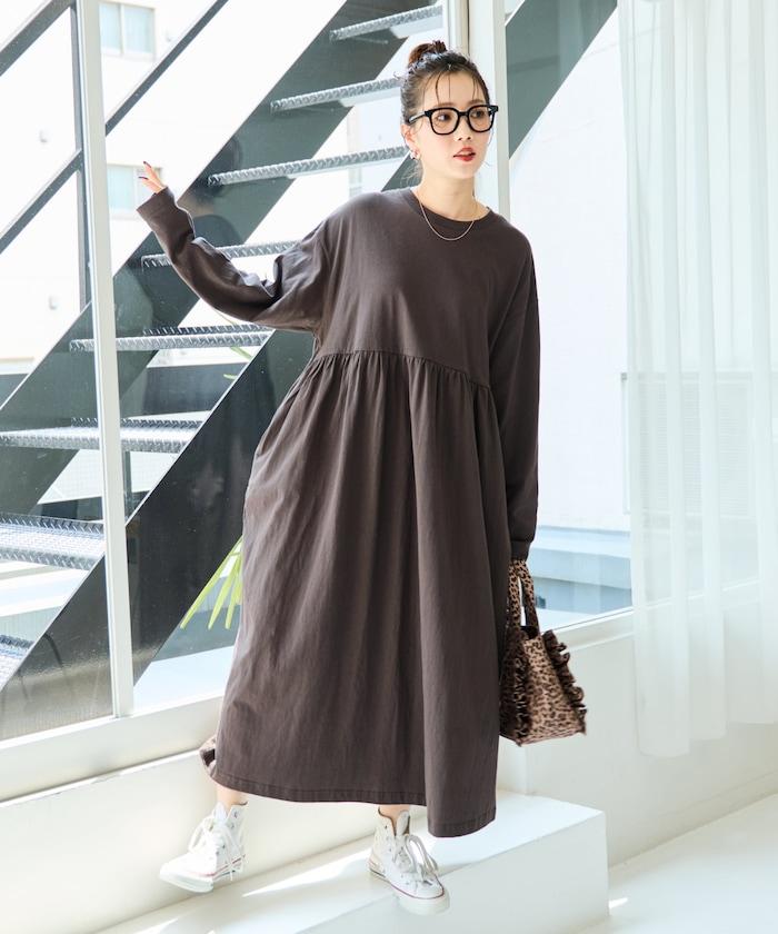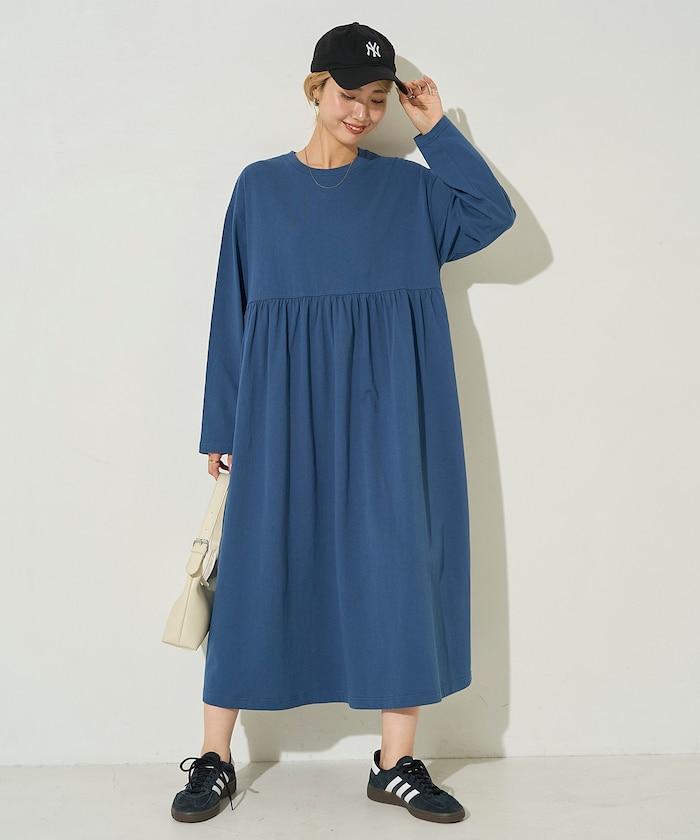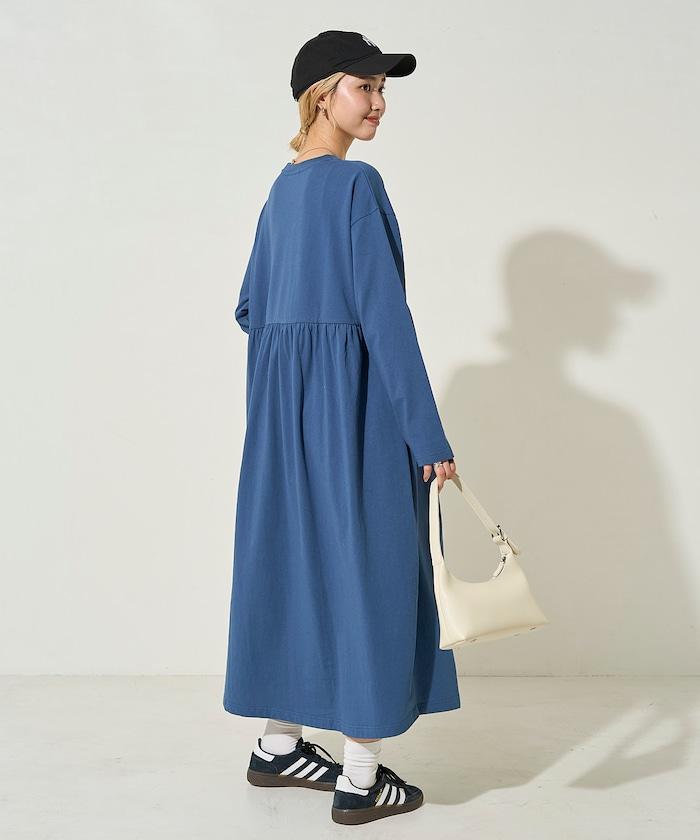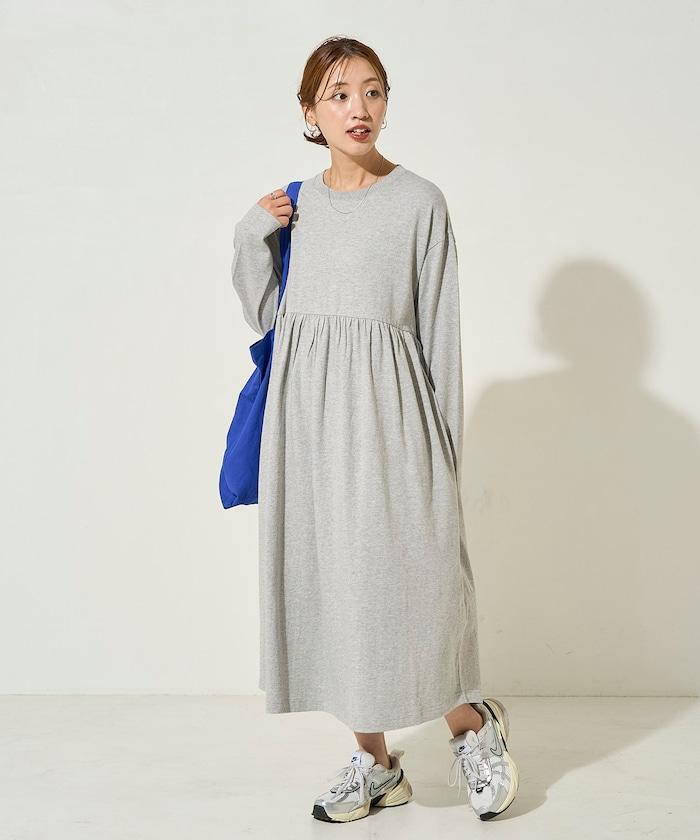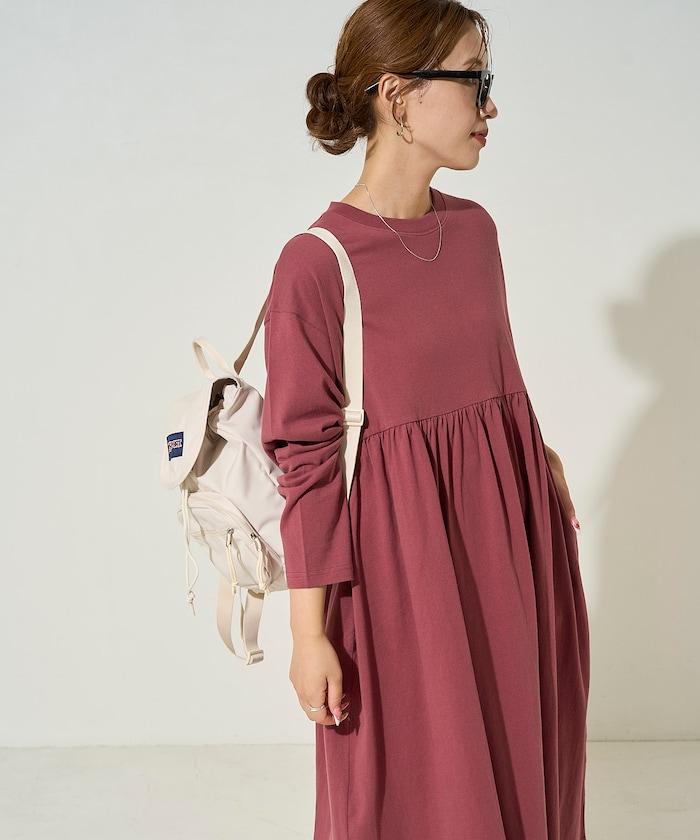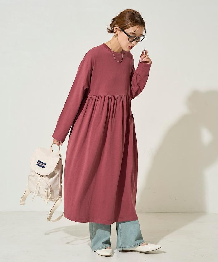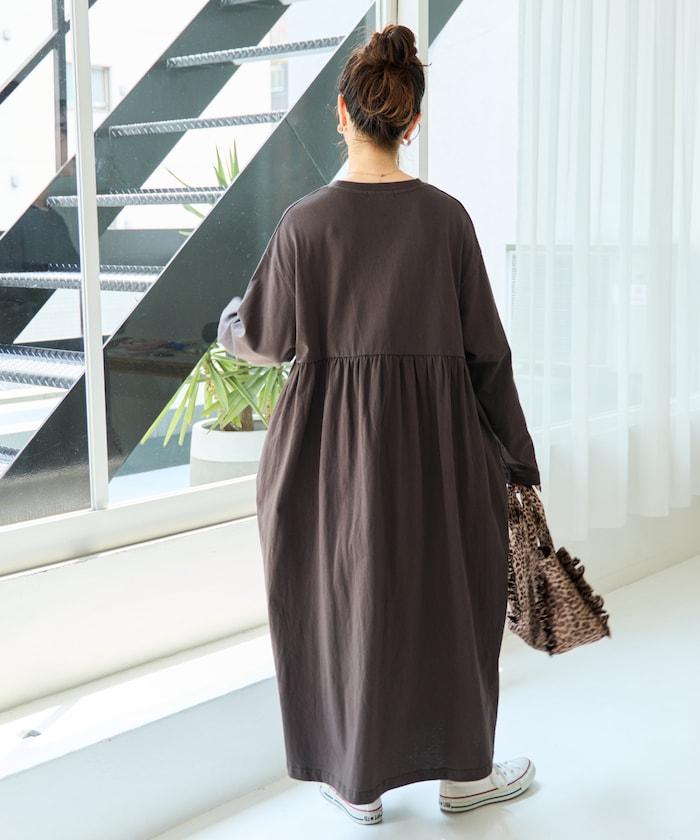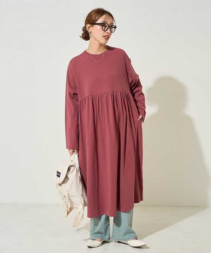 長款 T 型連衣裙,採用可愛的聚攏設計。