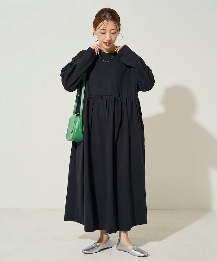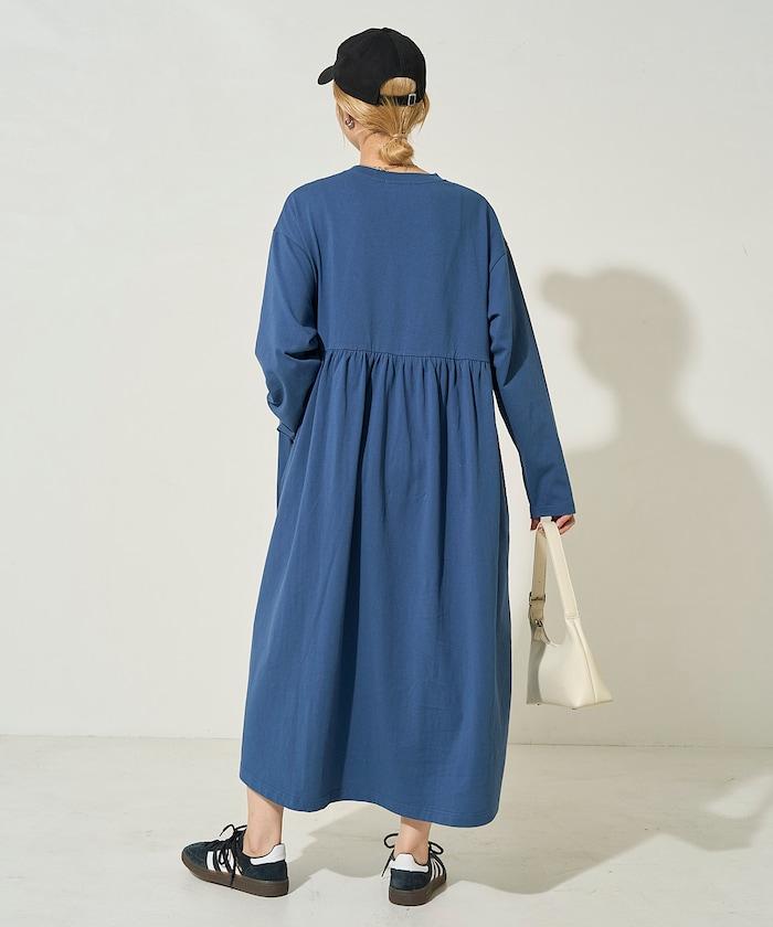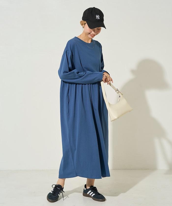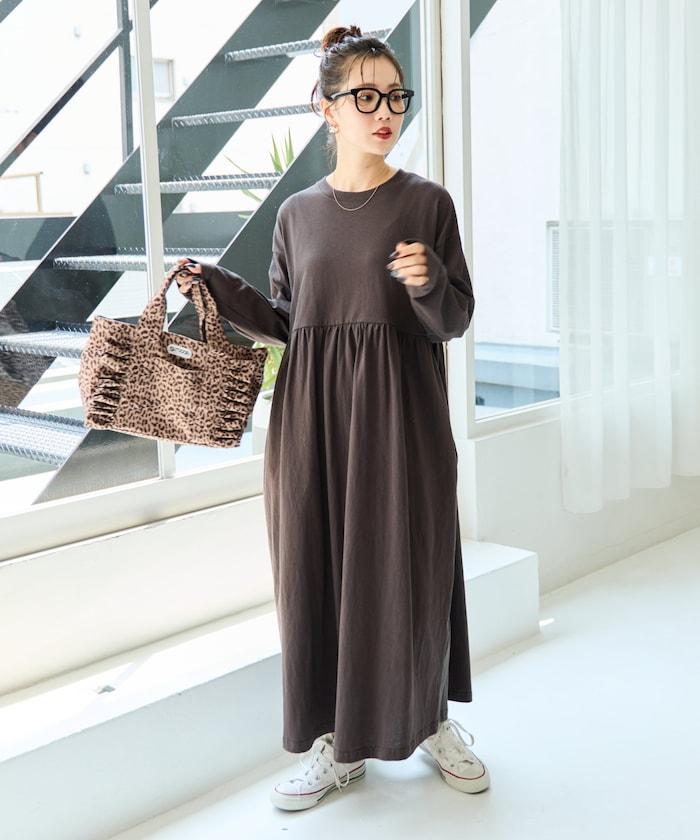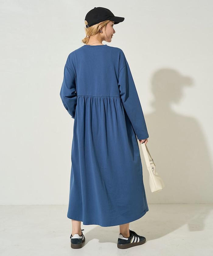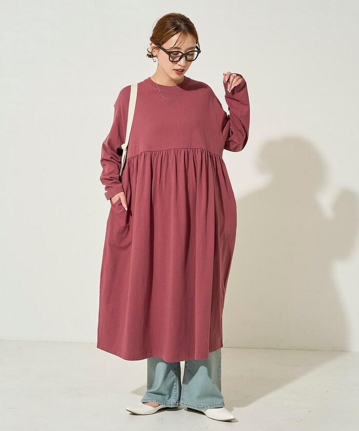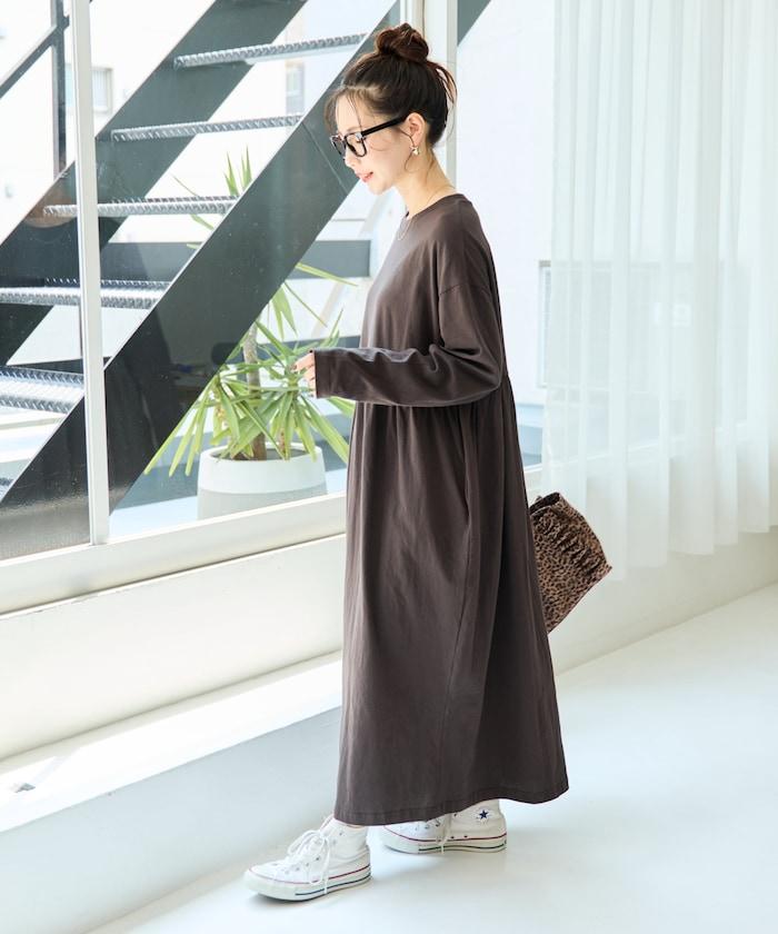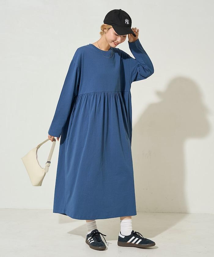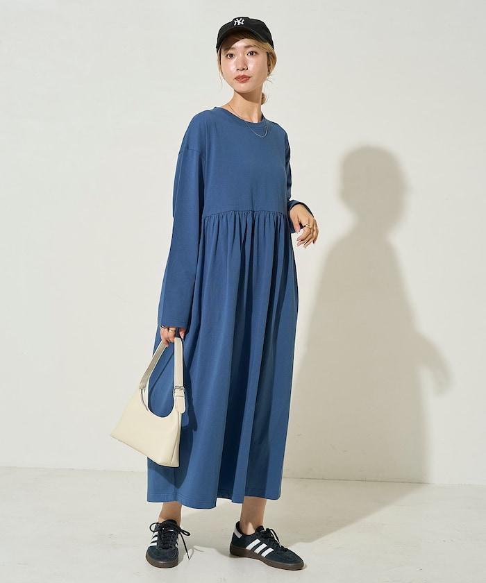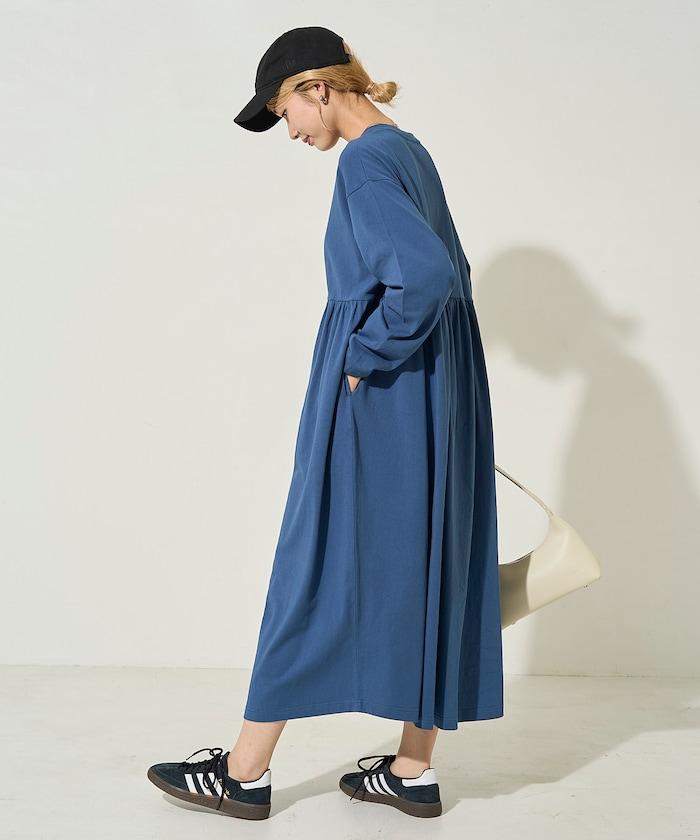 長款 T 型連衣裙,採用可愛的聚攏設計。