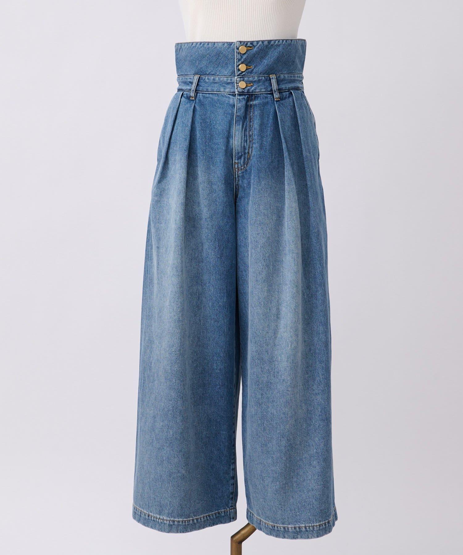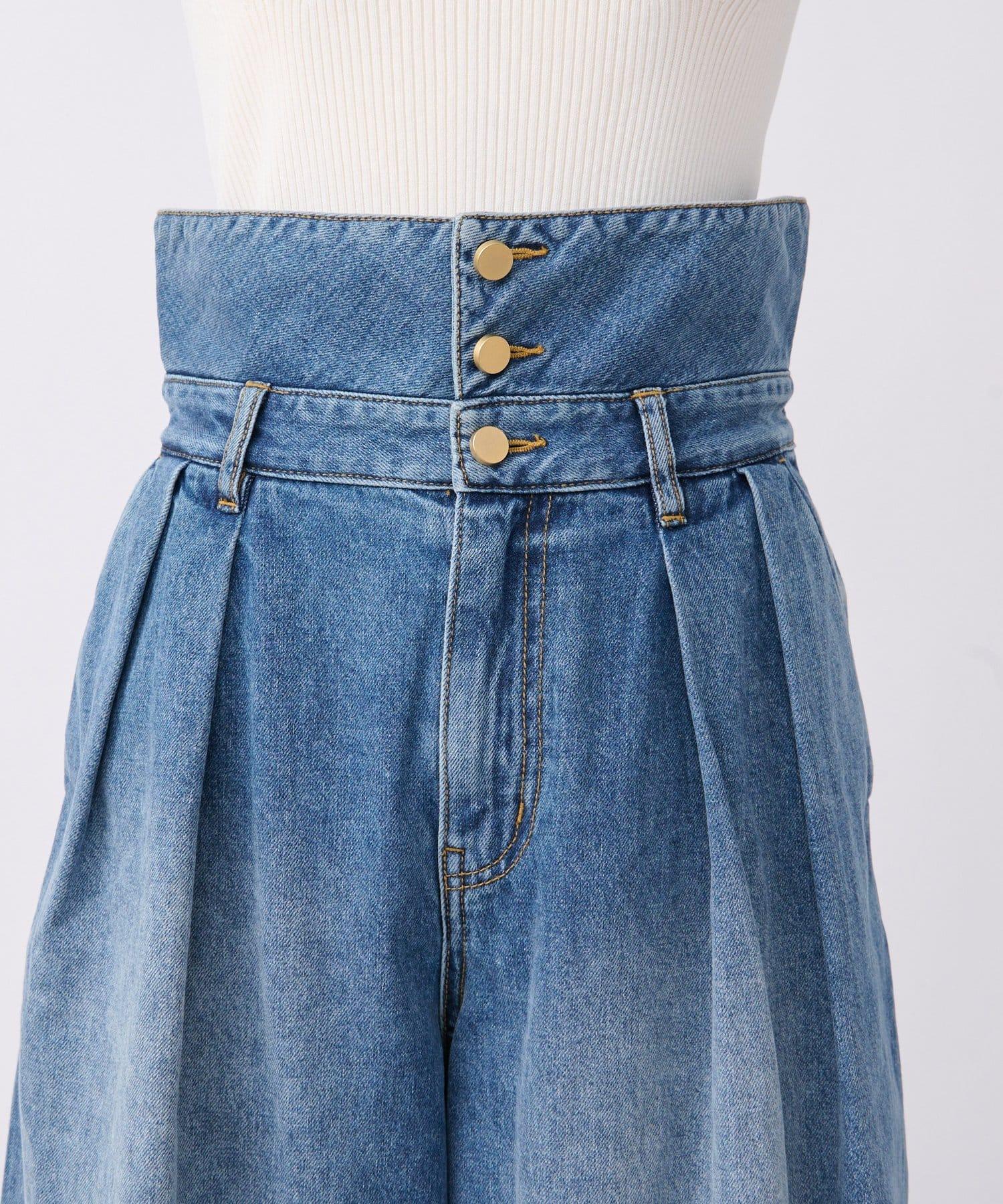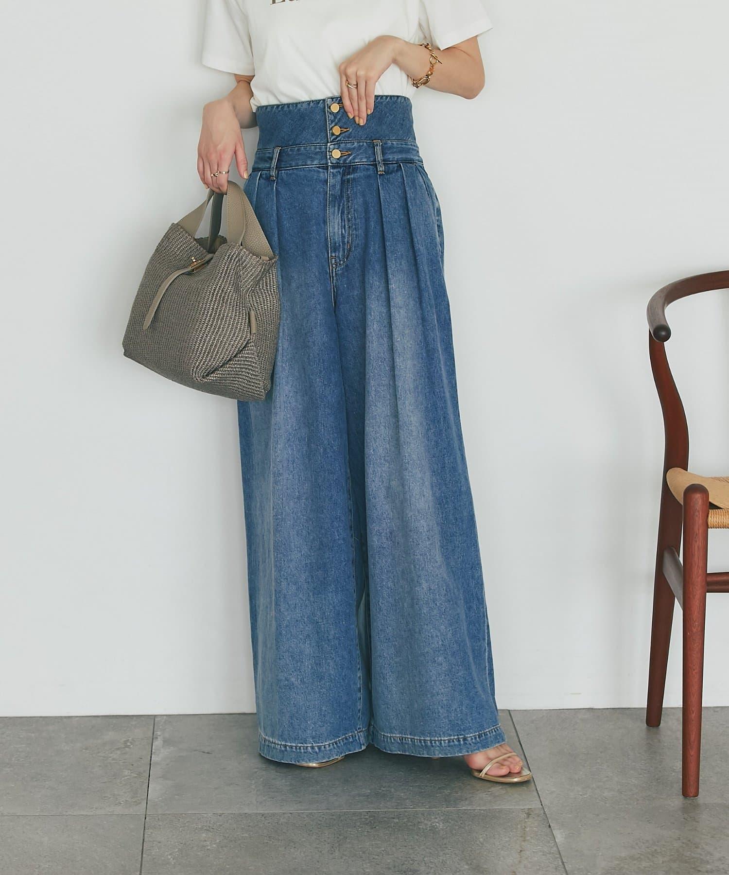 高腰闊腿牛仔褲