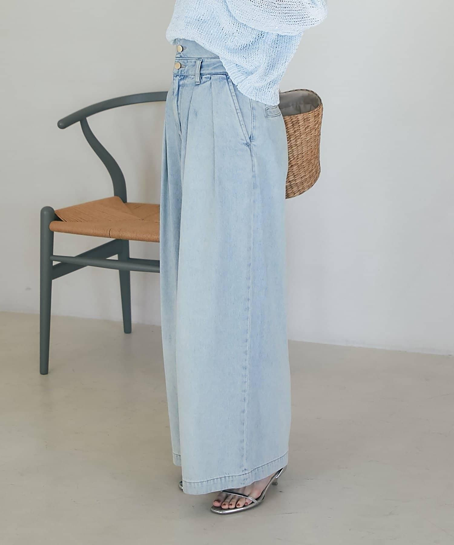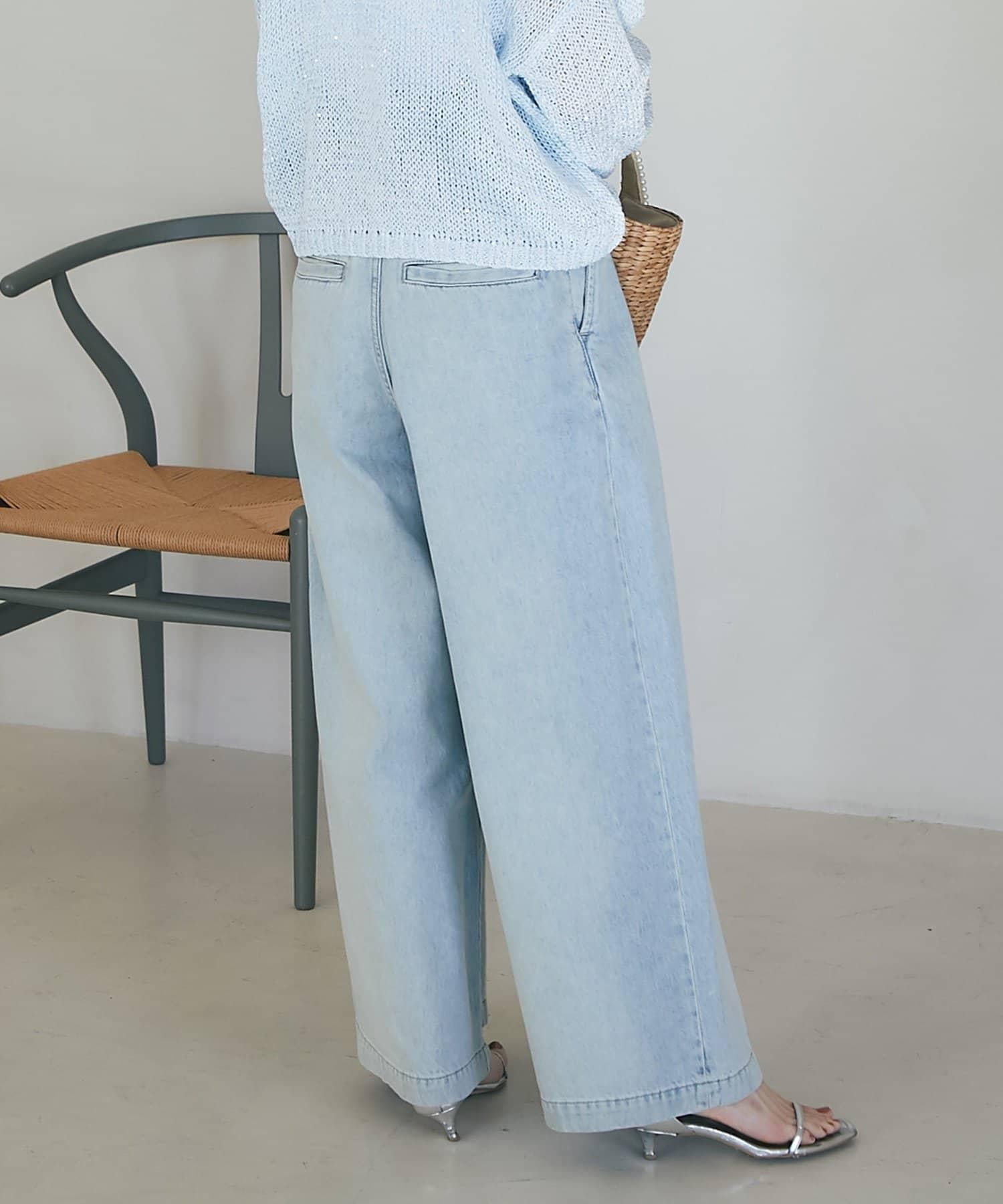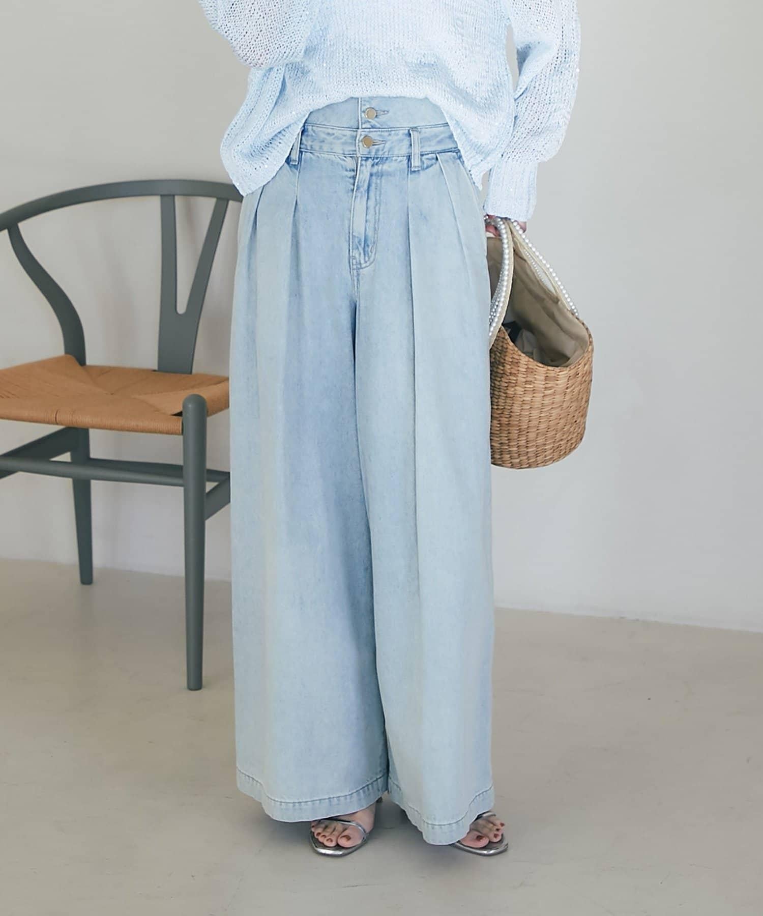 高腰闊腿牛仔褲