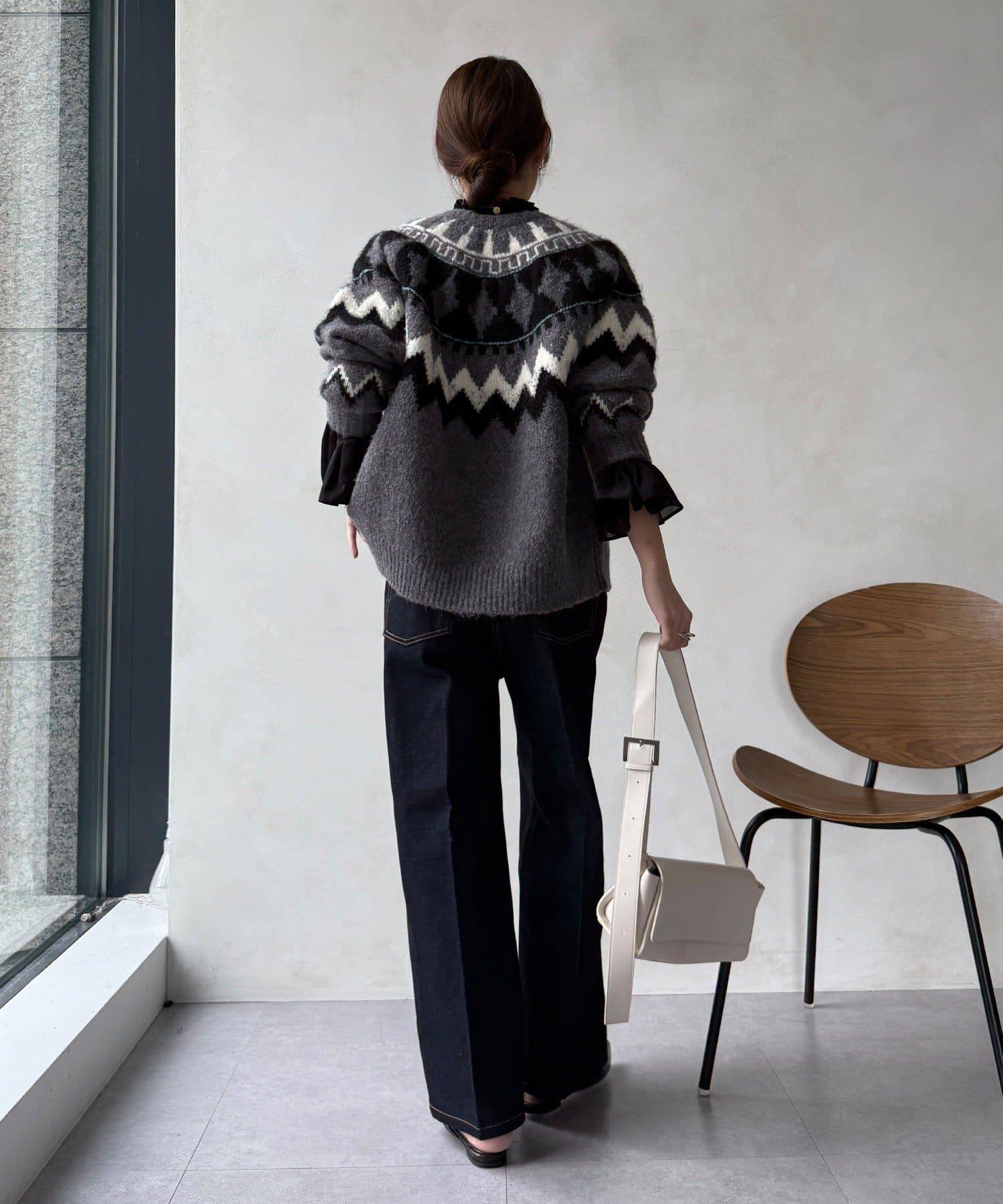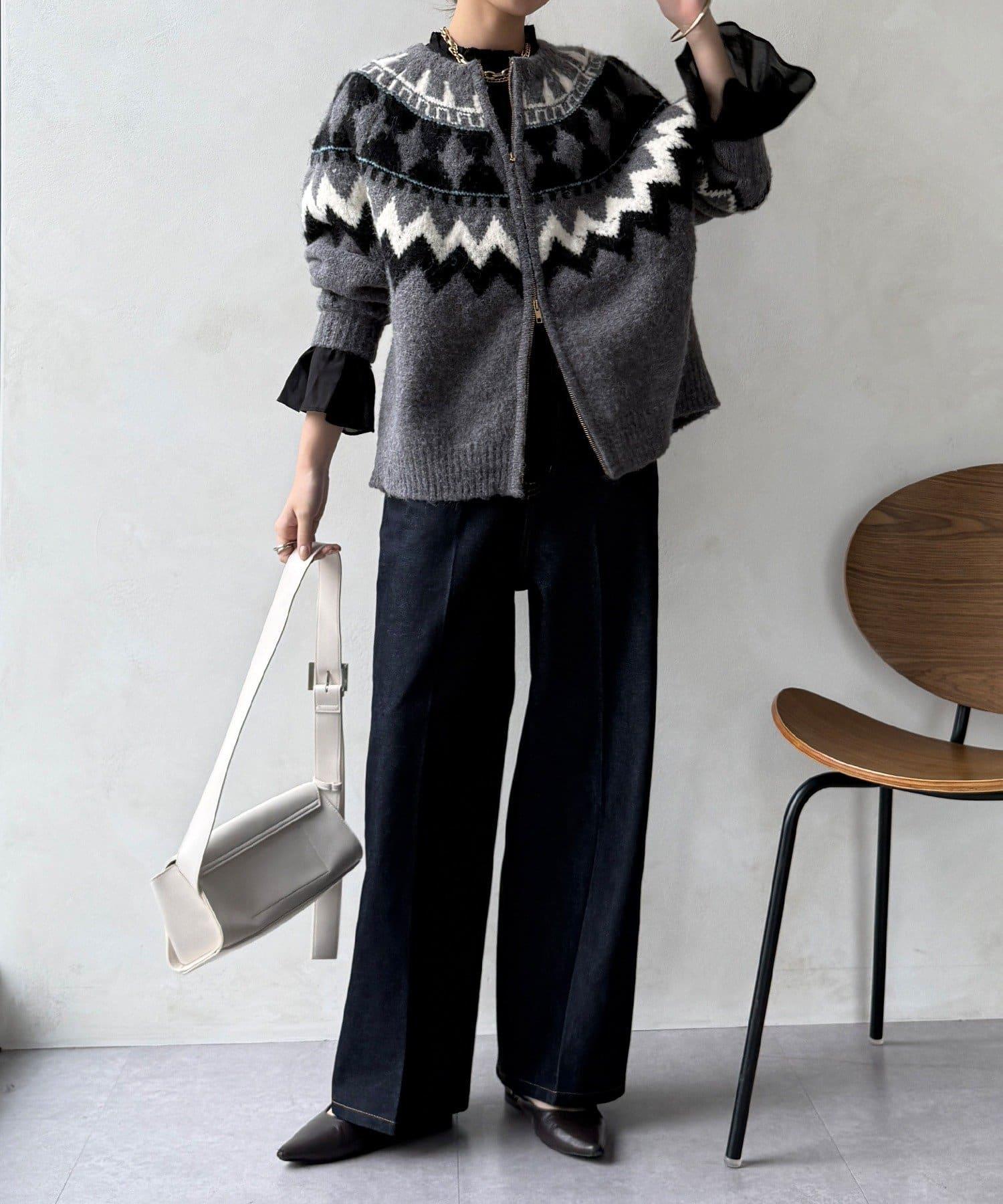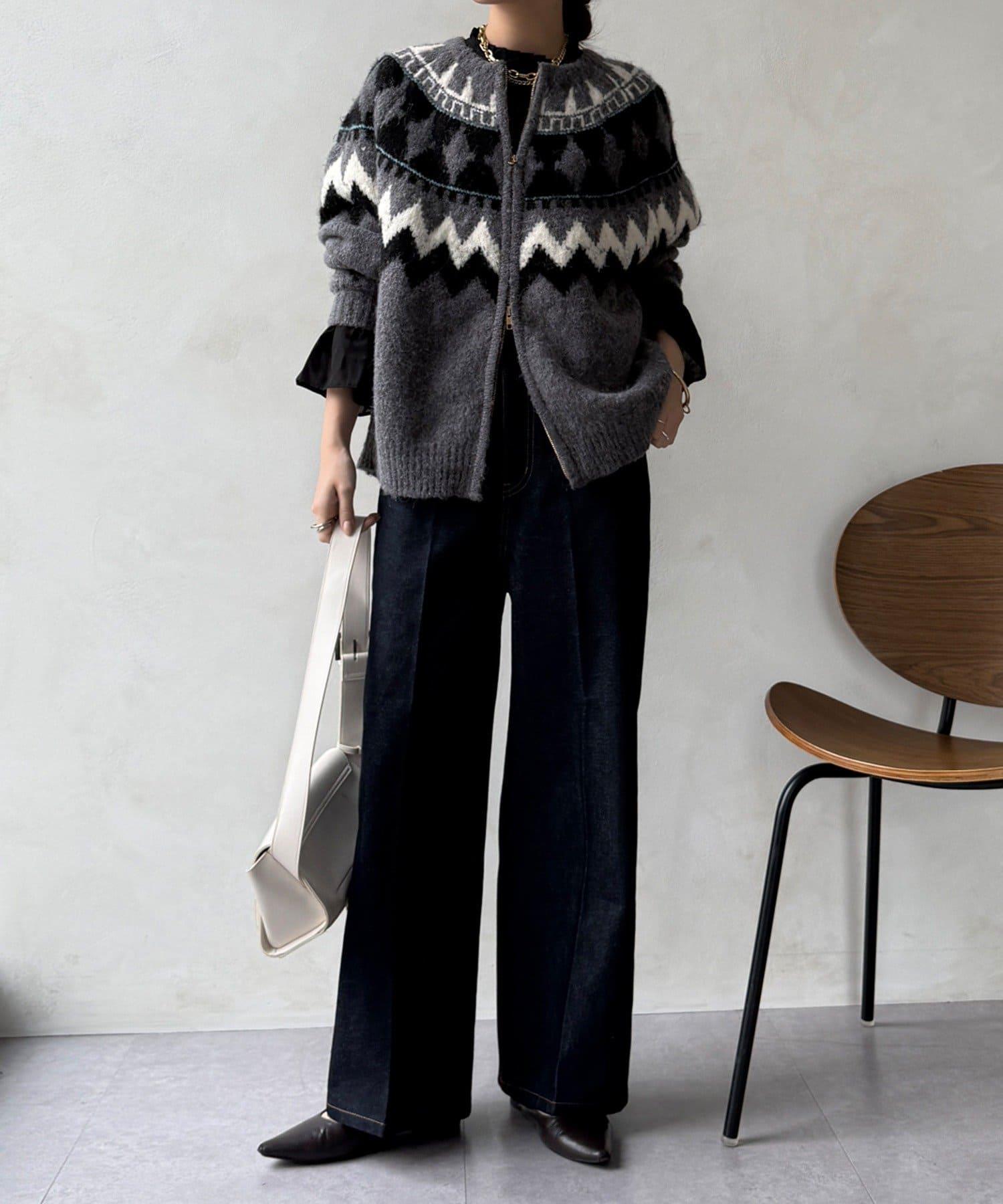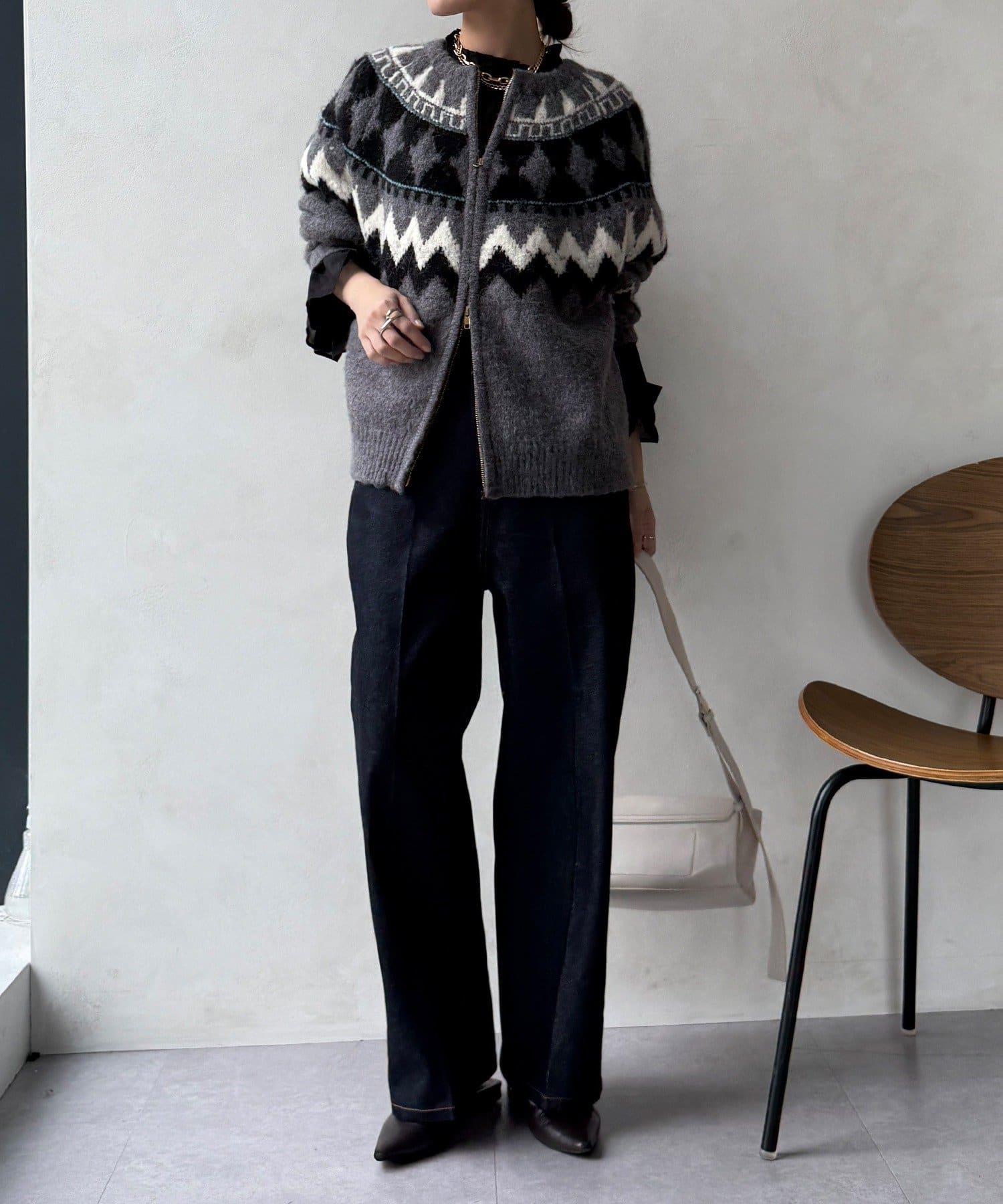 前幅中間的壓線設計強調了垂直線條。雖然是休閒牛仔布料,卻給人一種美腿的精緻印象。