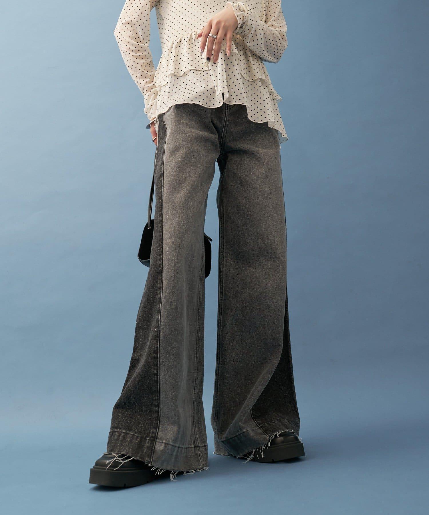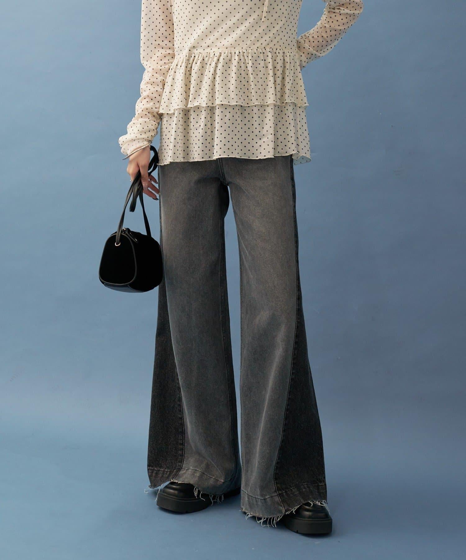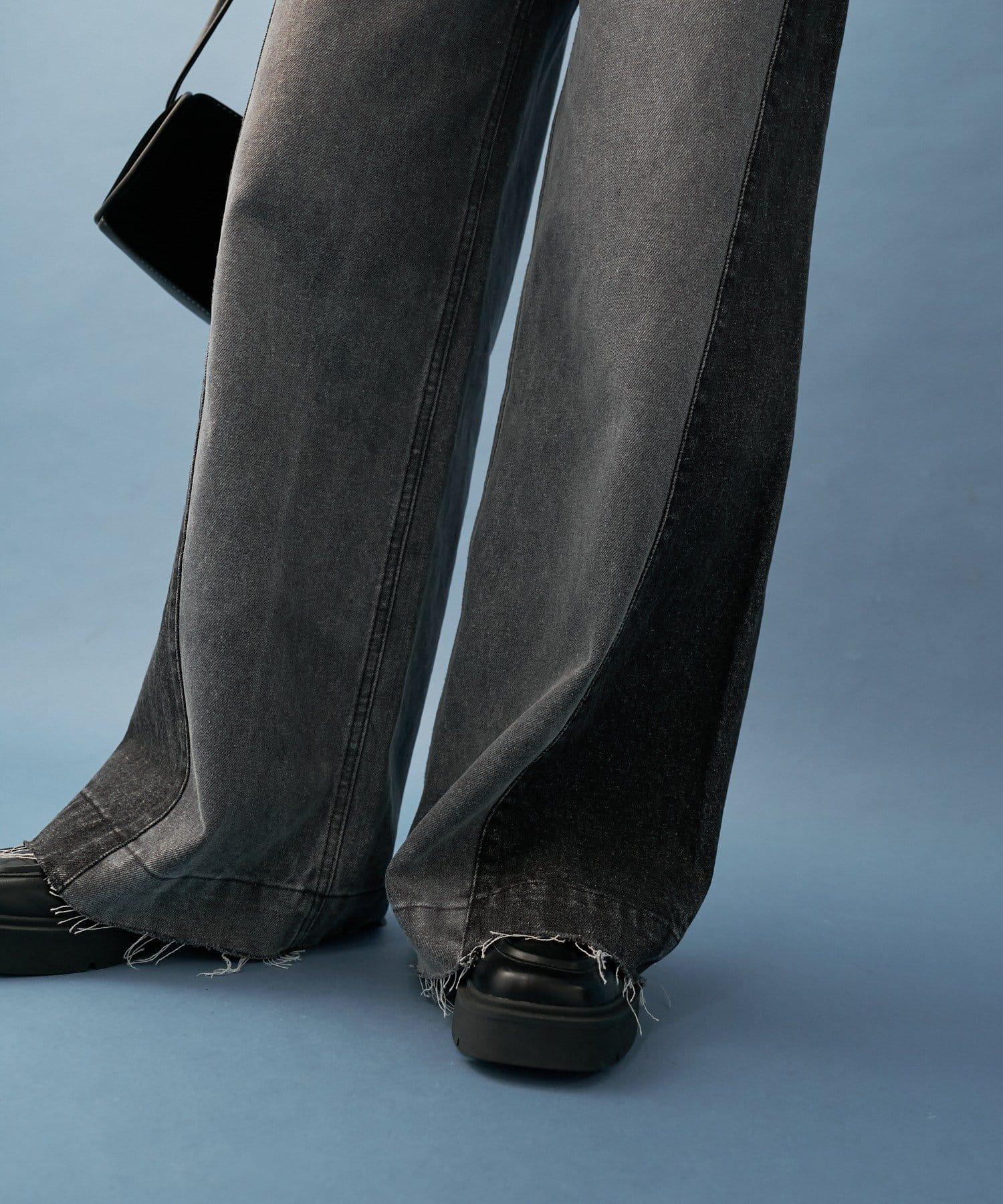 面板切換式牛仔布採用醒目的面板設計。黑藍兩色便於搭配上衣。