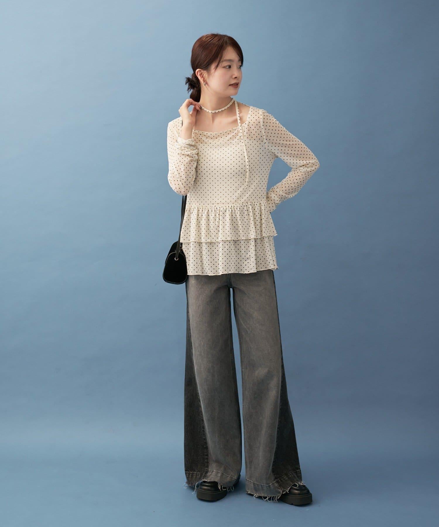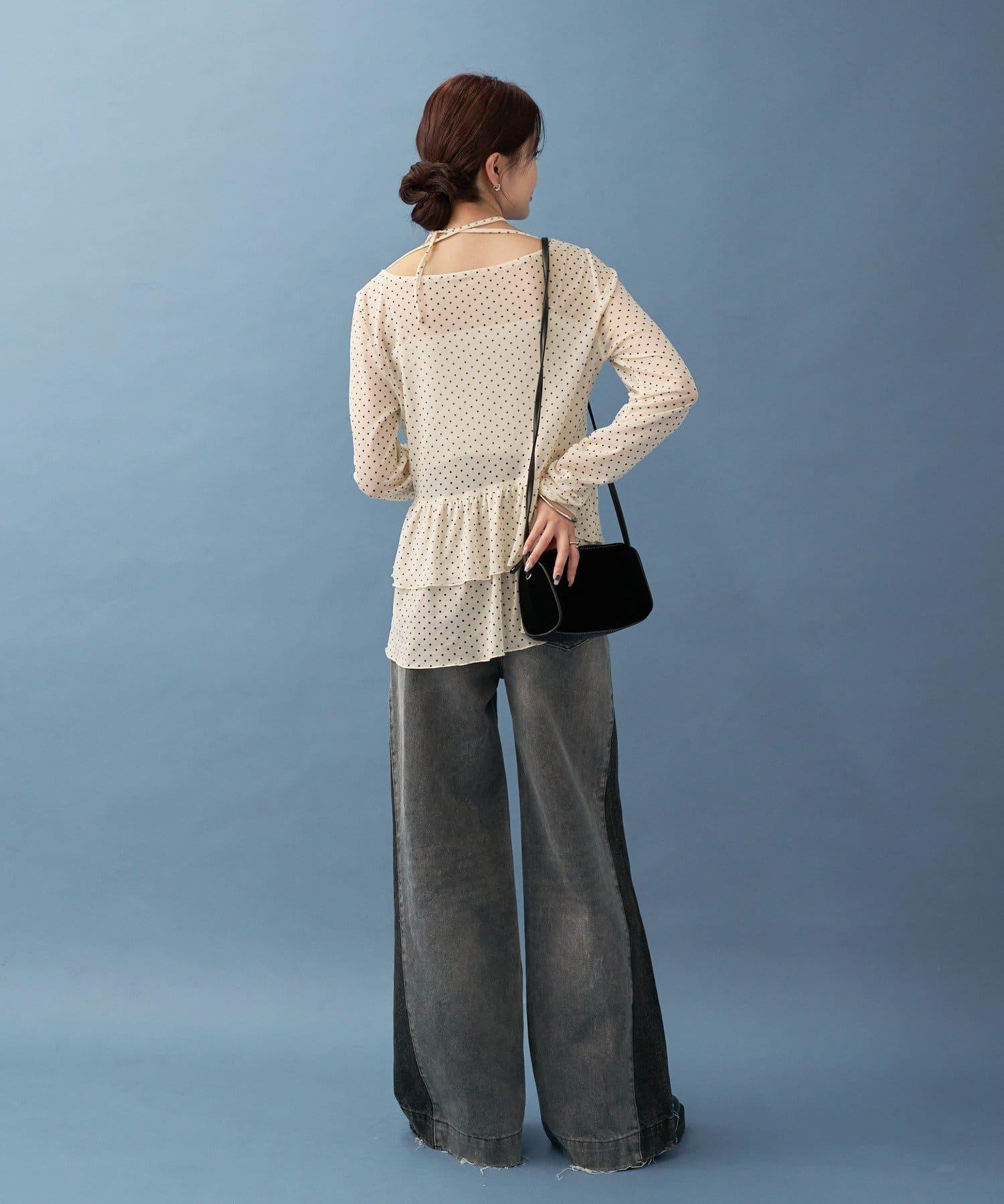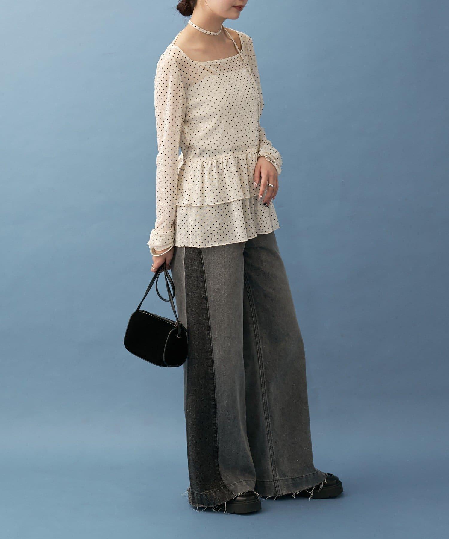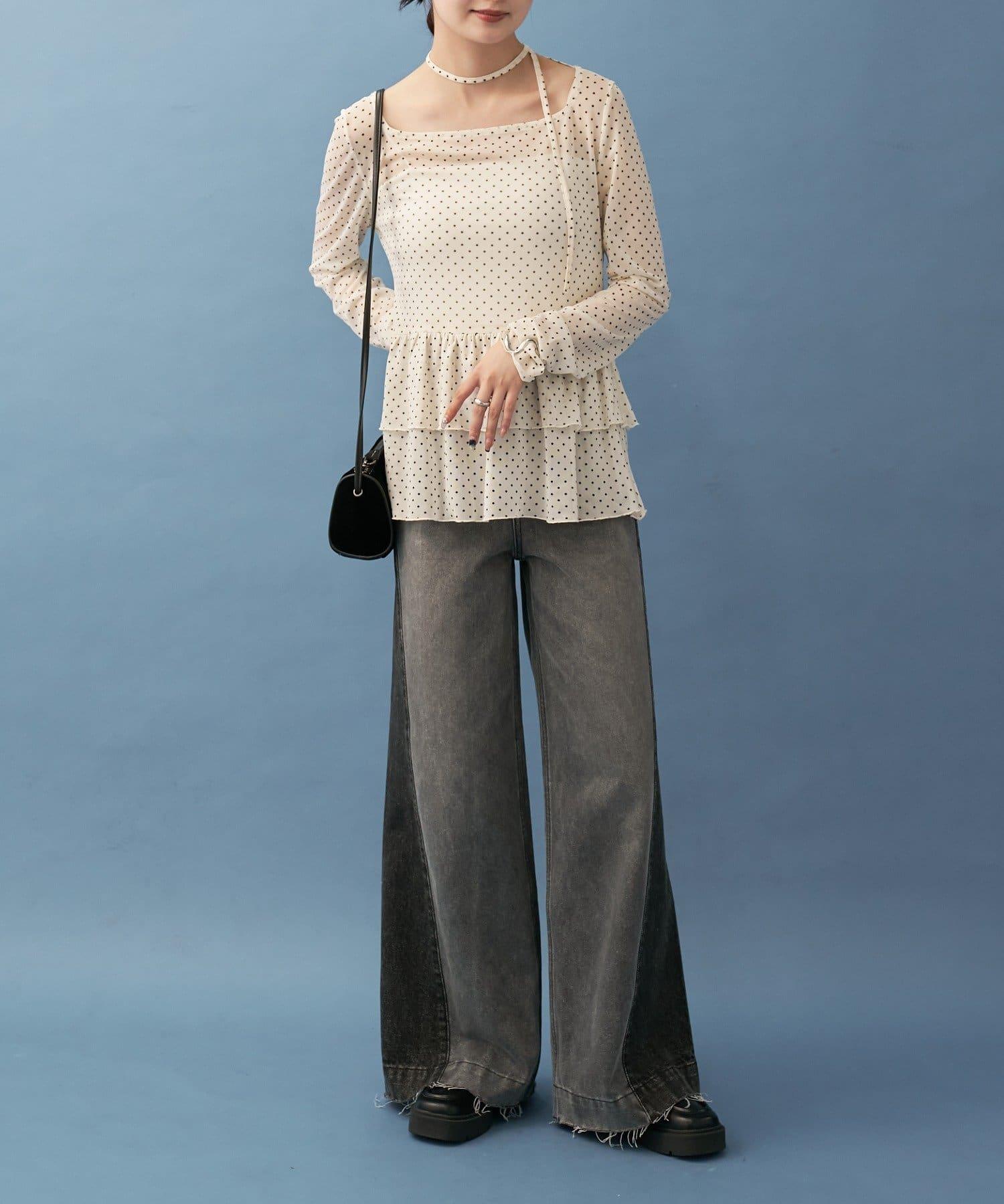 面板切換式牛仔布採用醒目的面板設計。黑藍兩色便於搭配上衣。