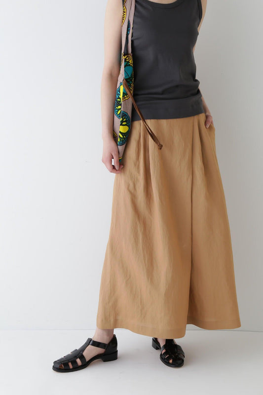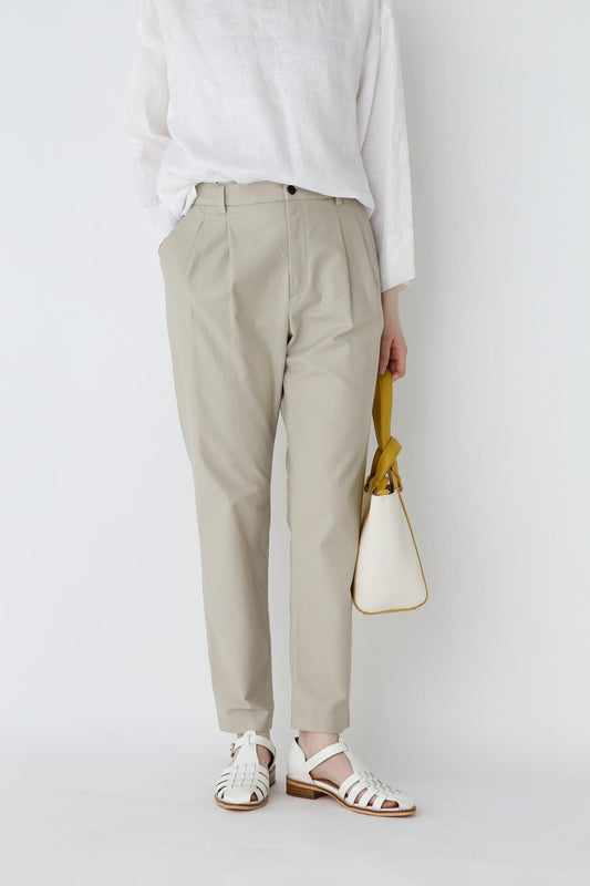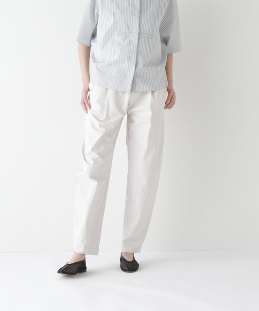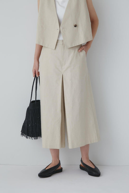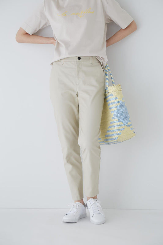 體積寬大的長褲,是夏季休閒風格的完美選擇 [設計要點] 寬大的長褲,具有大體積感,同時營造出輕鬆的感覺,深色兩襉細節和背部鬆緊帶規格使臀部遠離皮膚,腰部可通過腰帶背面的抽繩帶收緊,營造出利落的感覺。腰帶背面還有抽繩帶,可收緊腰部,使腰部看起來更加豐滿。面料採用輕薄的棉麻斜紋面料,帶有細微的橫向絨毛,給人一種夏日輕盈的感覺。面料採用雙圓頂處理,給人一種細緻入微的感覺。這款長褲的廓形豐滿,有很強的存在感,因此我們建議搭配剪裁得體的上衣或內搭上衣,這也是今年的典型風格。