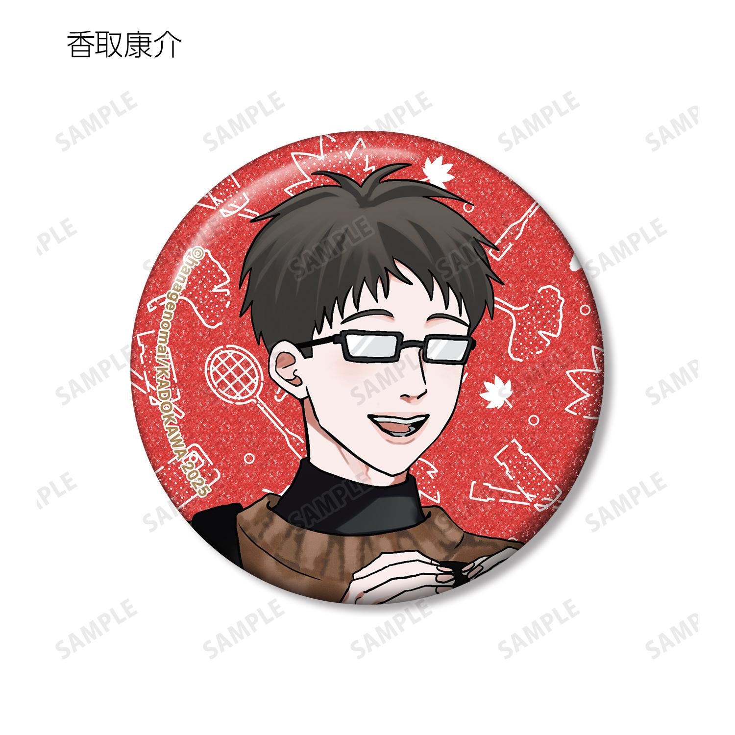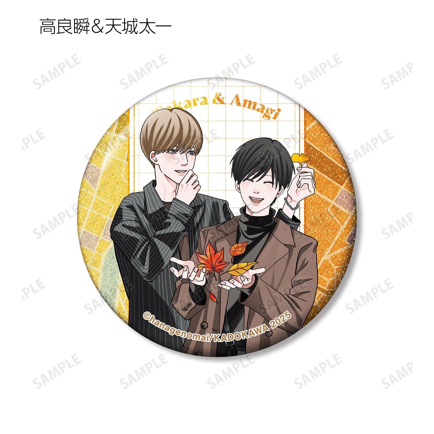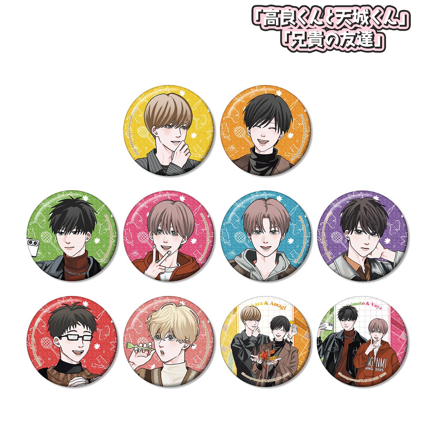 來自《Kora-kun to Amagi-kun》和《My Brother's Friend》的交易閃光罐徽章。