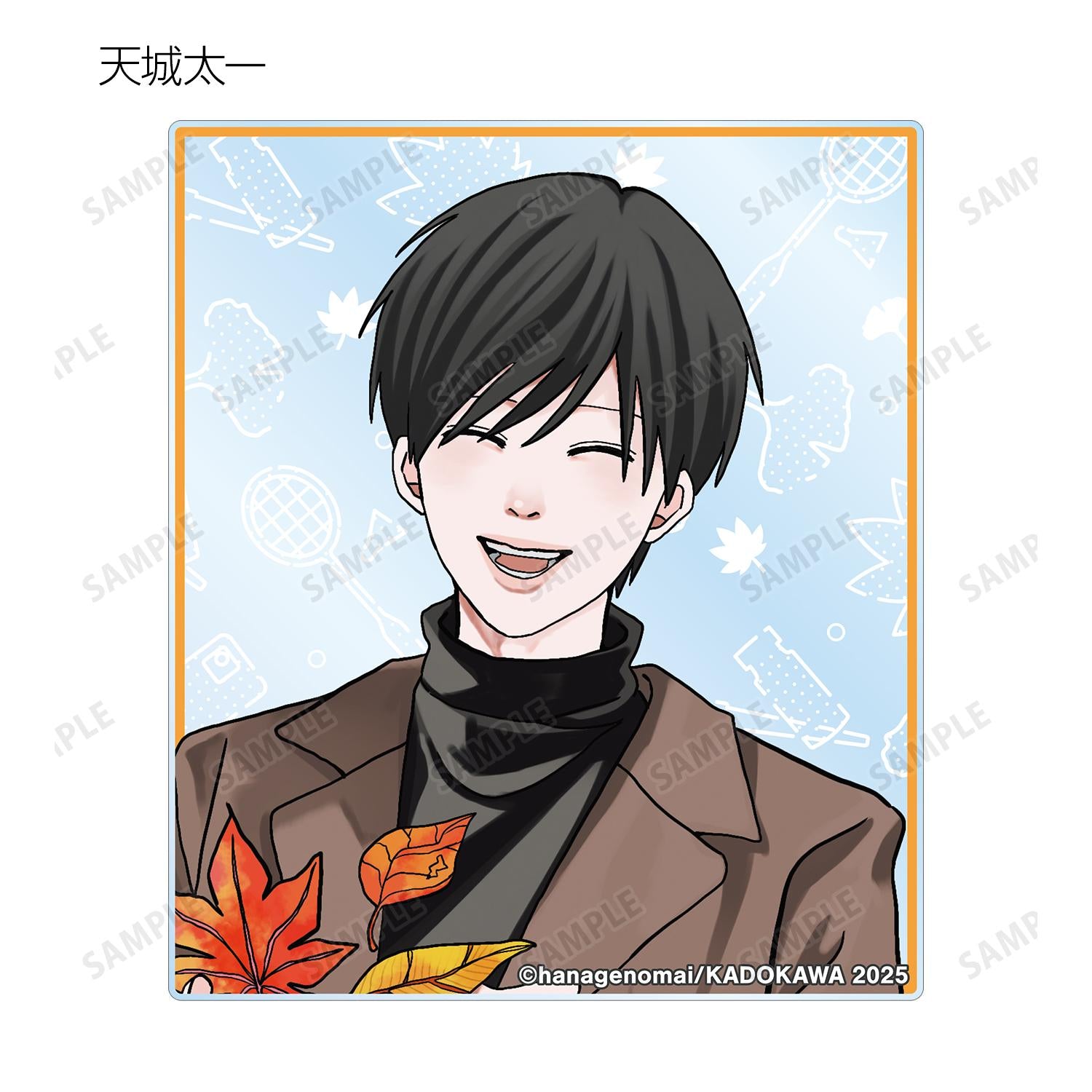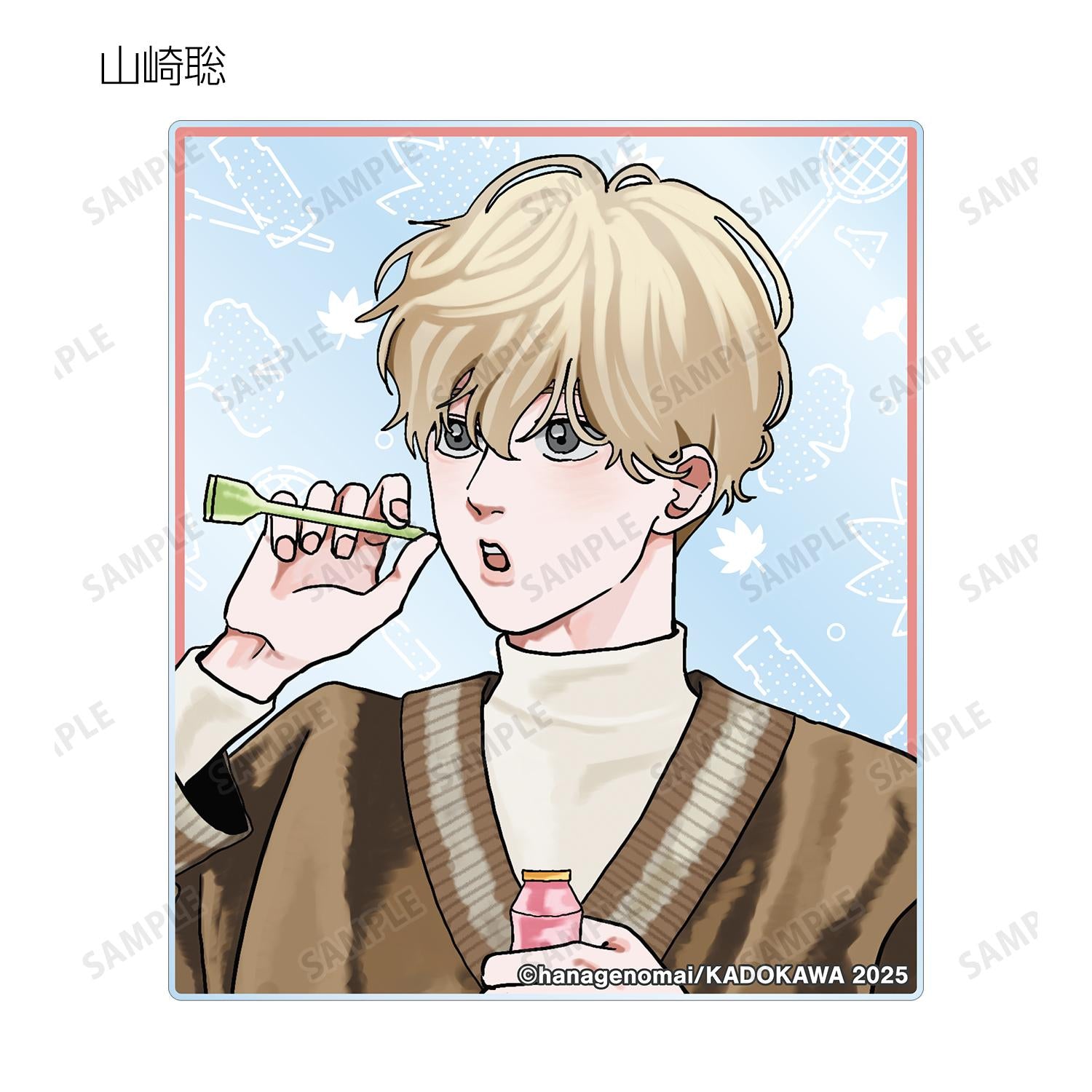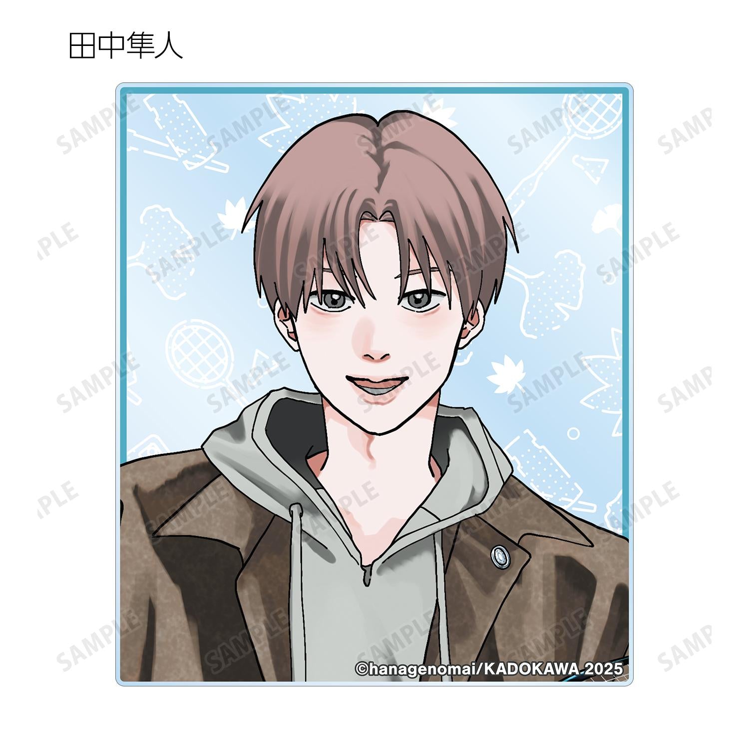 丙烯酸卡片上的人物包括小良順、天木太一、柿本健、田中裕也、田中隼人、瀨川拓實、香取浩介和山崎聰,所有插圖均由 Mai Hanageno 繪製。