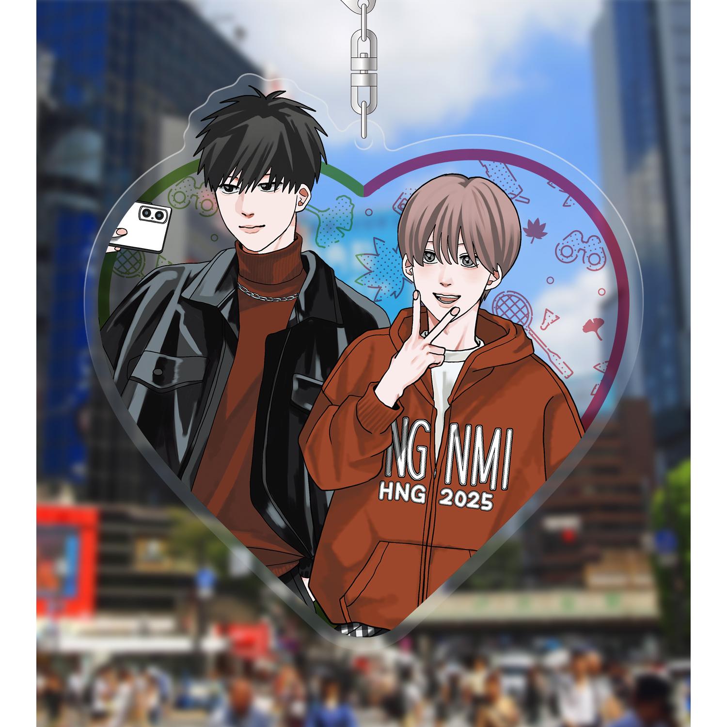 柿本健和田中裕也由花野舞繪製插圖,並製作成 BIG 亞克力鑰匙扣。