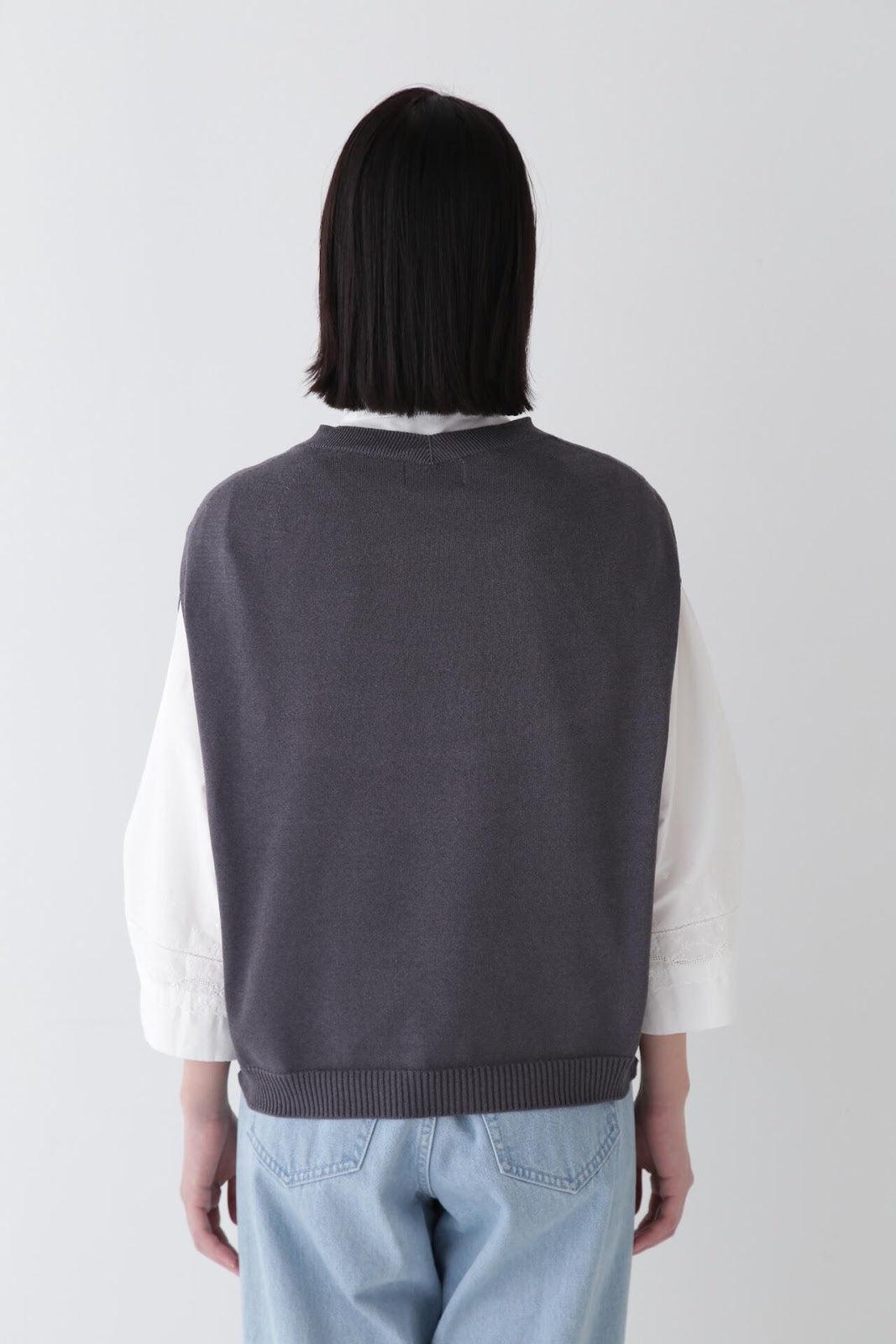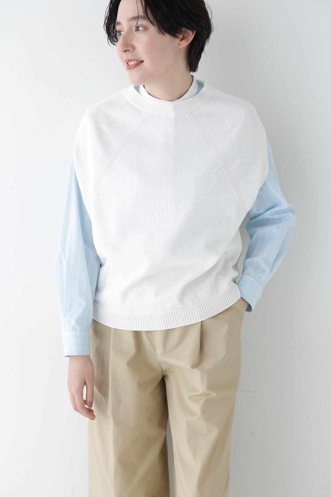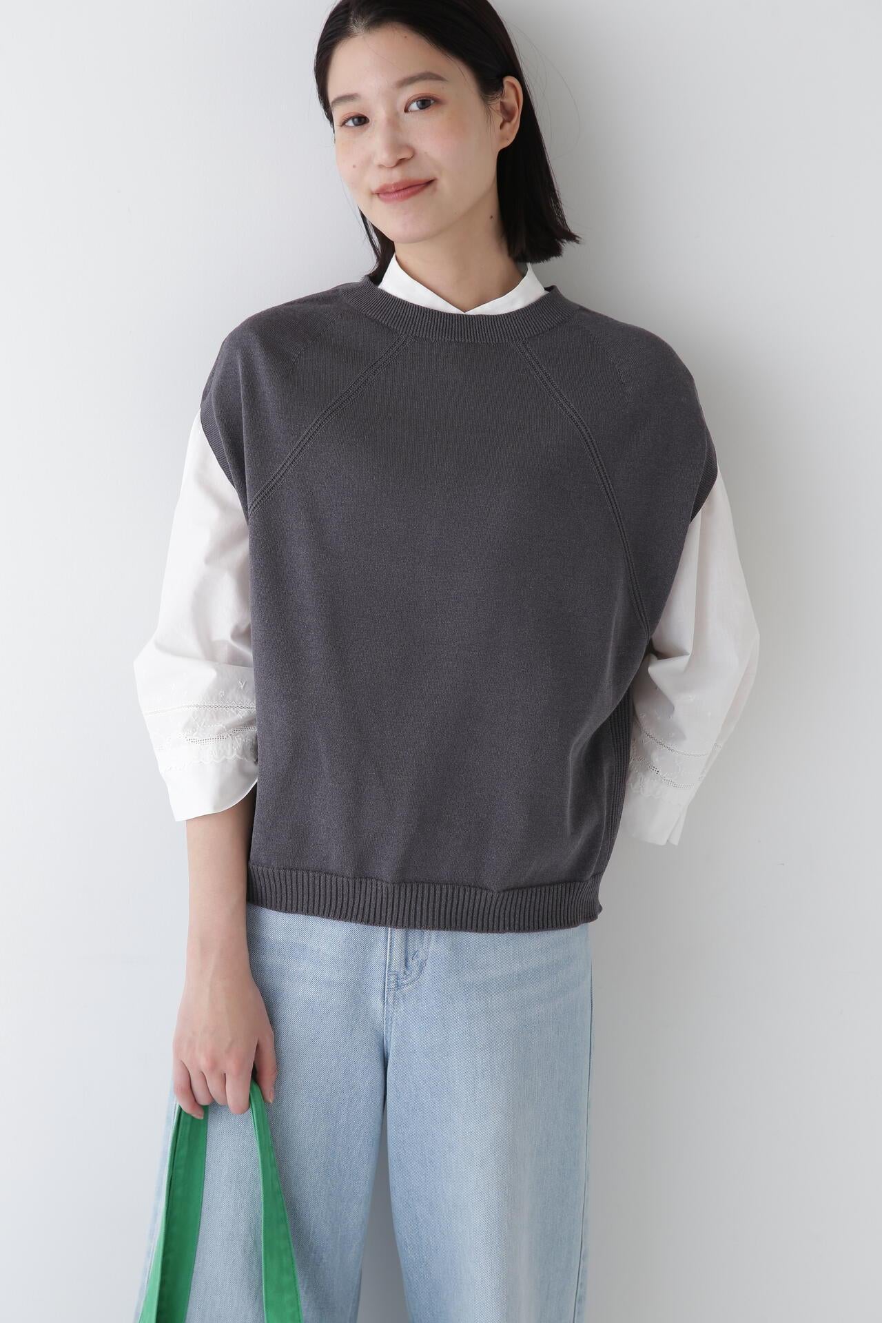 款式多樣的針織馬甲 [設計要點] 全成型針織圓領馬甲。其輪廓的特點是一條類似於raglan的斜線環繞在肩部。背心由棉尼龍製成,表面堅固清晰。乾爽的觸感讓您可以長期穿著。推薦搭配】這是一款針織馬甲,在溫暖的天氣裡可以單獨穿著。在整個季節裡,您都可以享受與襯衫和裁剪縫製的疊穿。