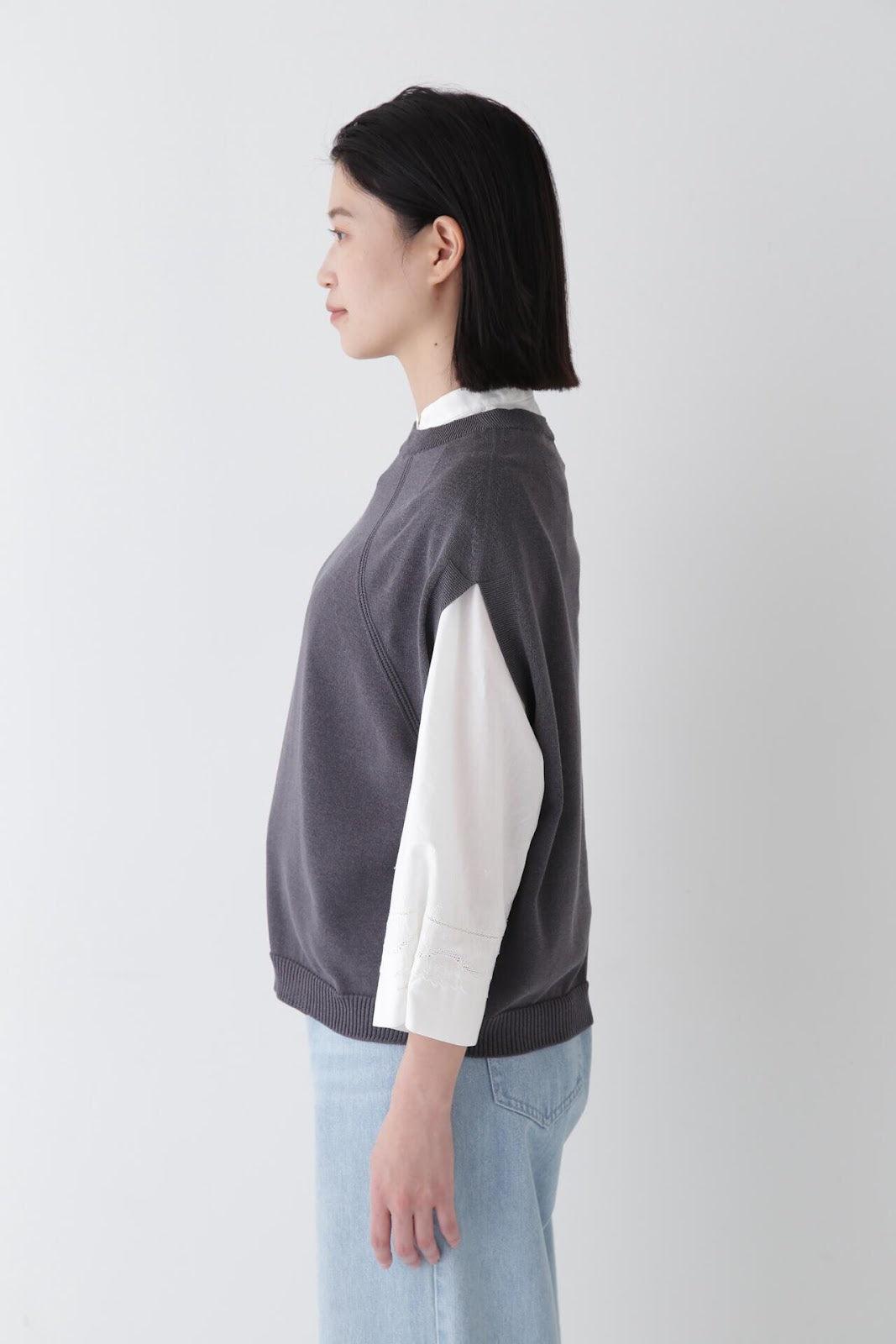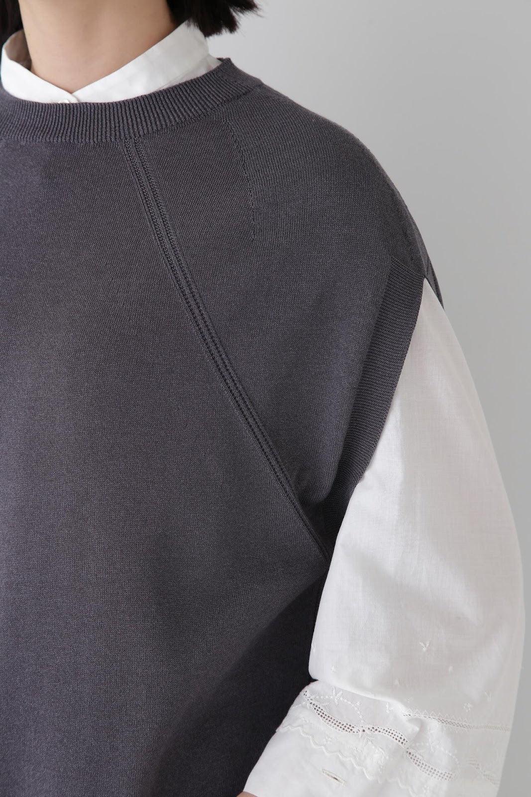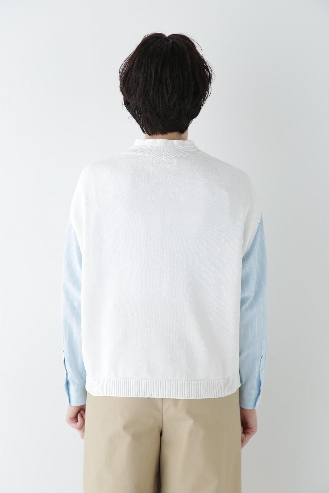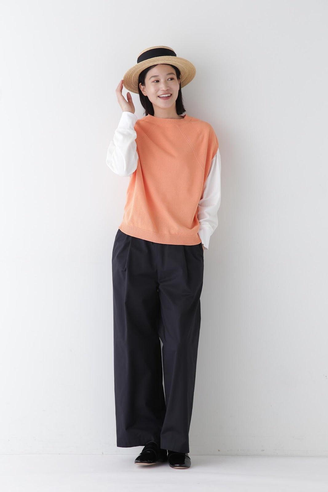 款式多樣的針織馬甲 [設計要點] 全成型針織圓領馬甲。其輪廓的特點是一條類似於raglan的斜線環繞在肩部。背心由棉尼龍製成,表面堅固清晰。乾爽的觸感讓您可以長期穿著。推薦搭配】這是一款針織馬甲,在溫暖的天氣裡可以單獨穿著。在整個季節裡,您都可以享受與襯衫和裁剪縫製的疊穿。