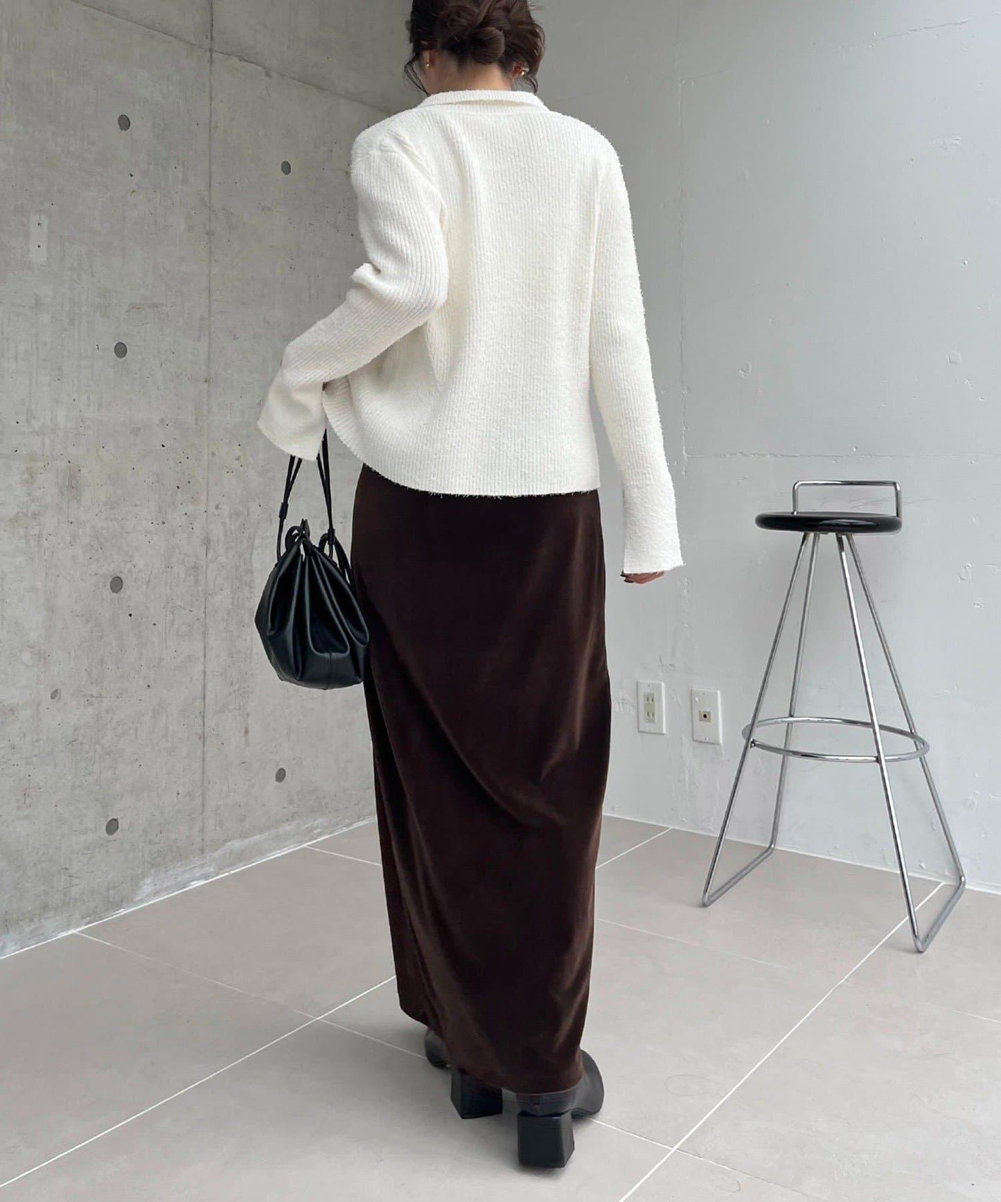 下襬處的紐扣被擋住,下襬變成了開衩,增添了一種休閒感。