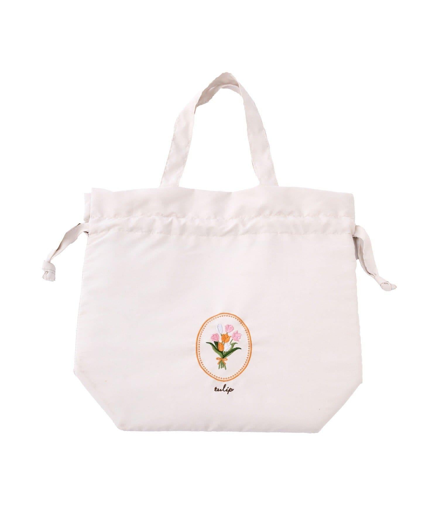● 時尚的抽繩袋上輕輕繡著一束鬱金香,具有降溫功能。