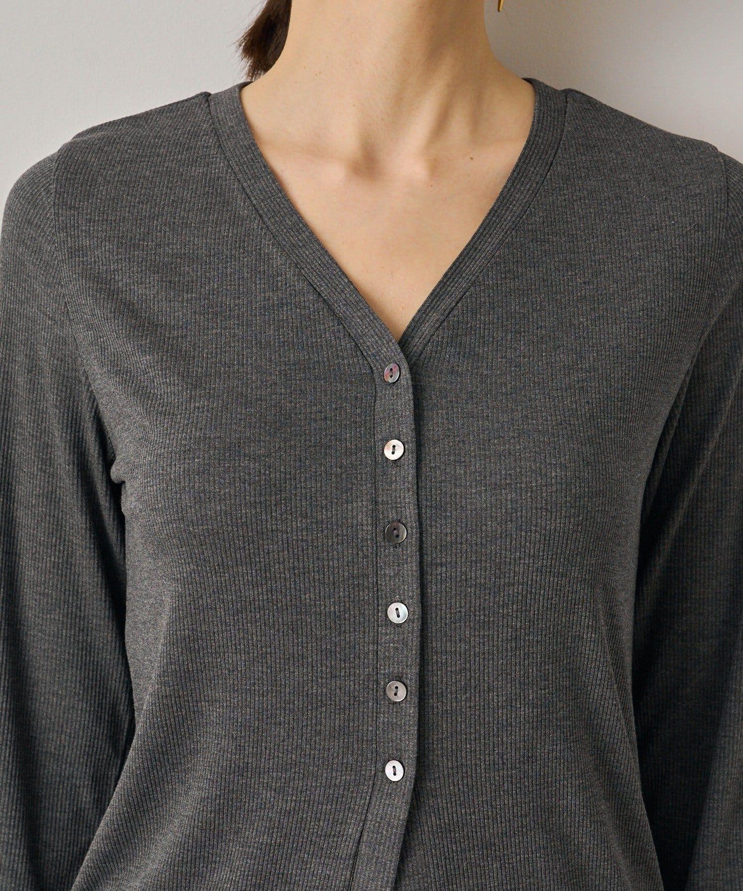 前襟精緻的紐扣和 V 領設計讓人感覺輕鬆愜意、