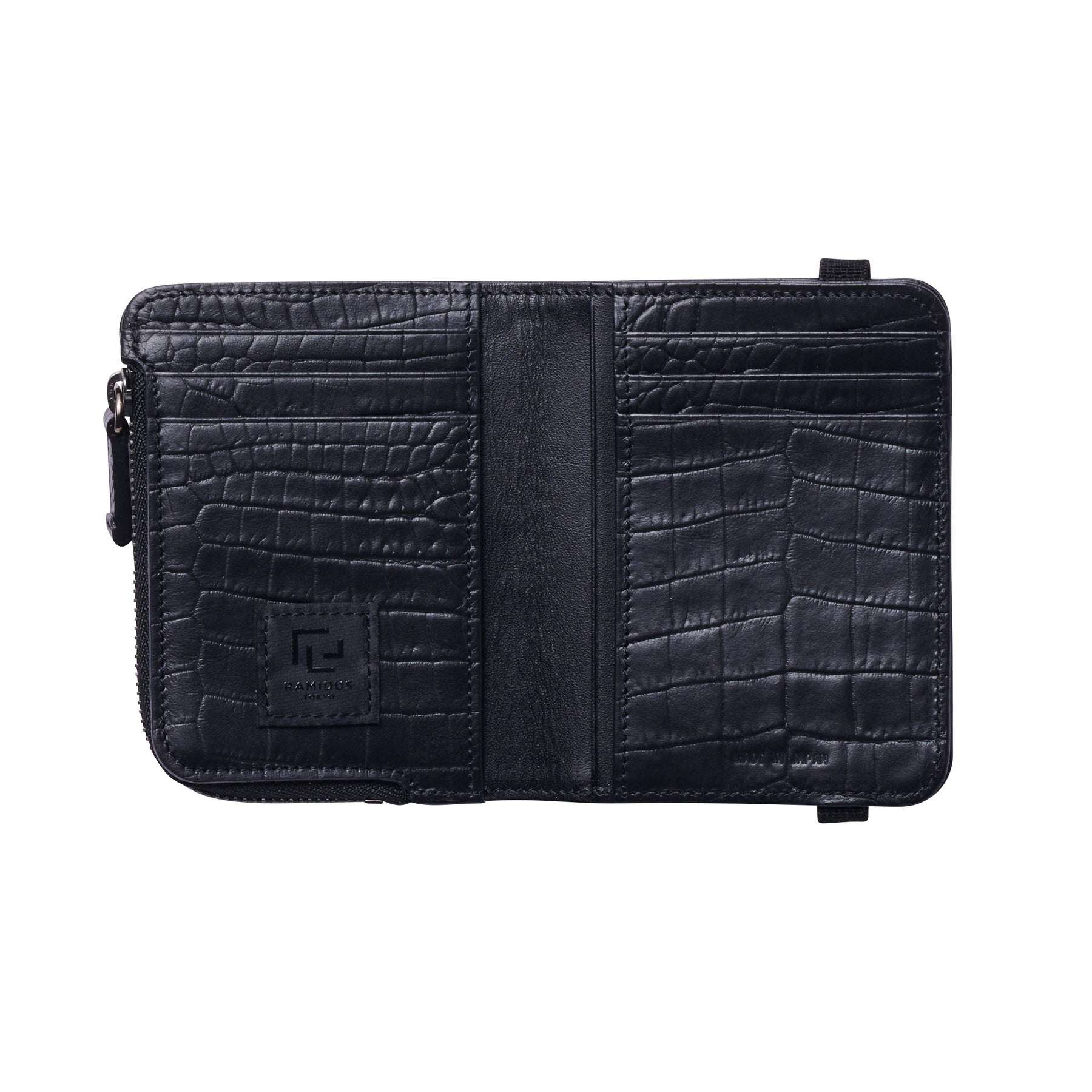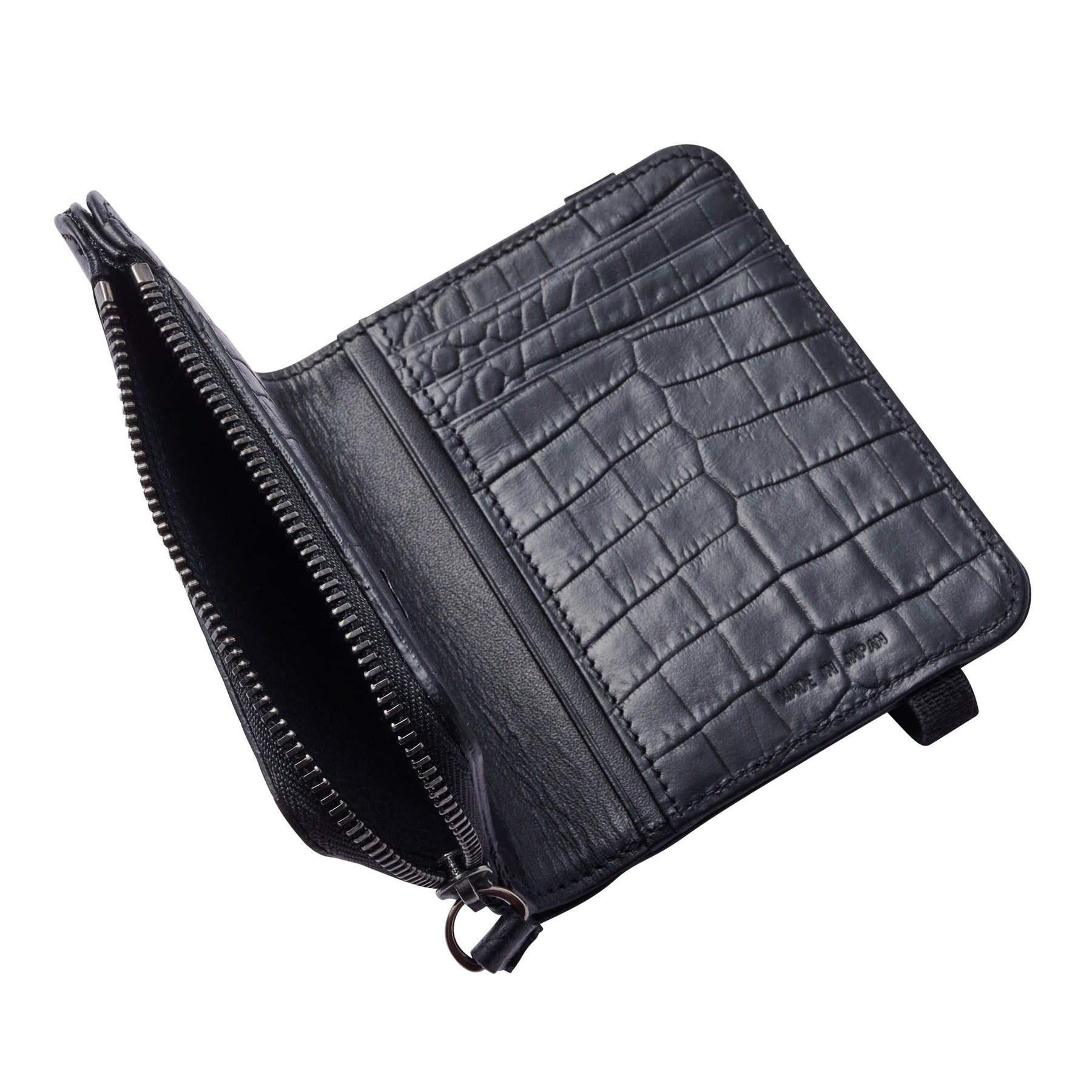 內部:6 個卡片插槽,3 個便籤插槽,3 個插槽,品牌👍,鱷魚紋 LWG 皮革雕刻。
