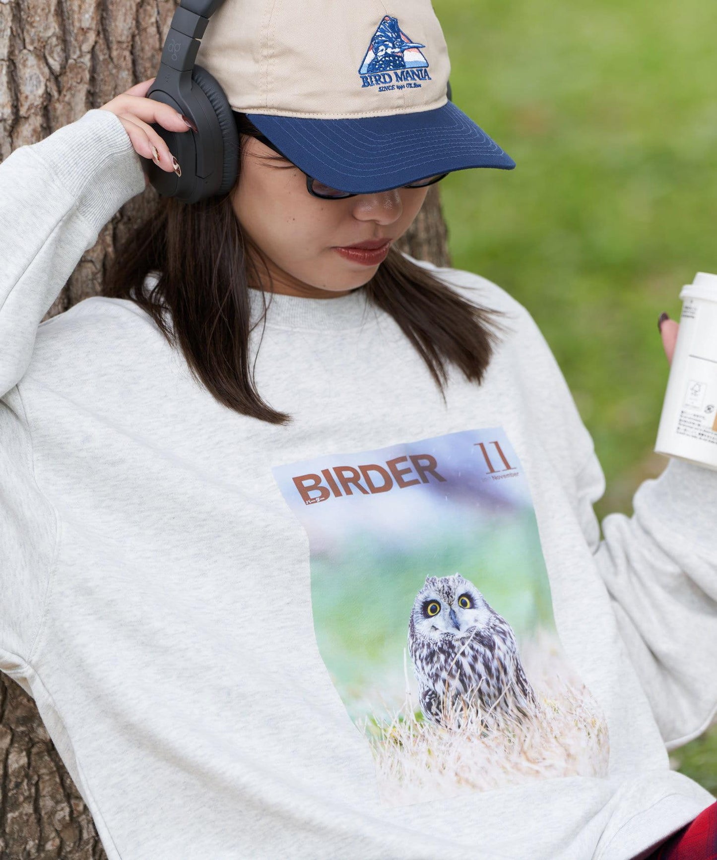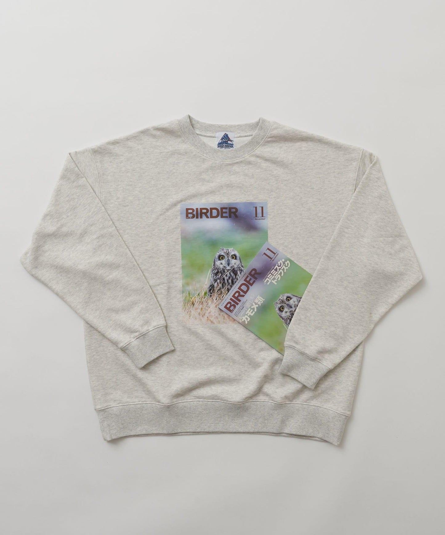 與日本👍的觀鳥雜誌《BIRDER》的合作商品 印有《BIRDER》封面上美麗野鳥圖案的運動衫。
