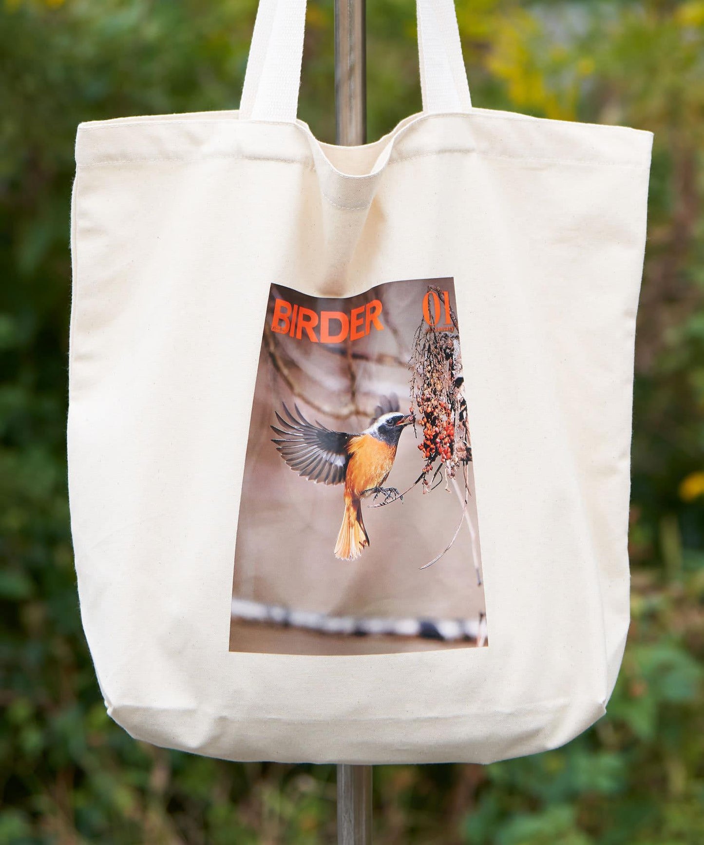 手提袋上印有《BIRDER》雜誌封面上的四種野生鳥類。
