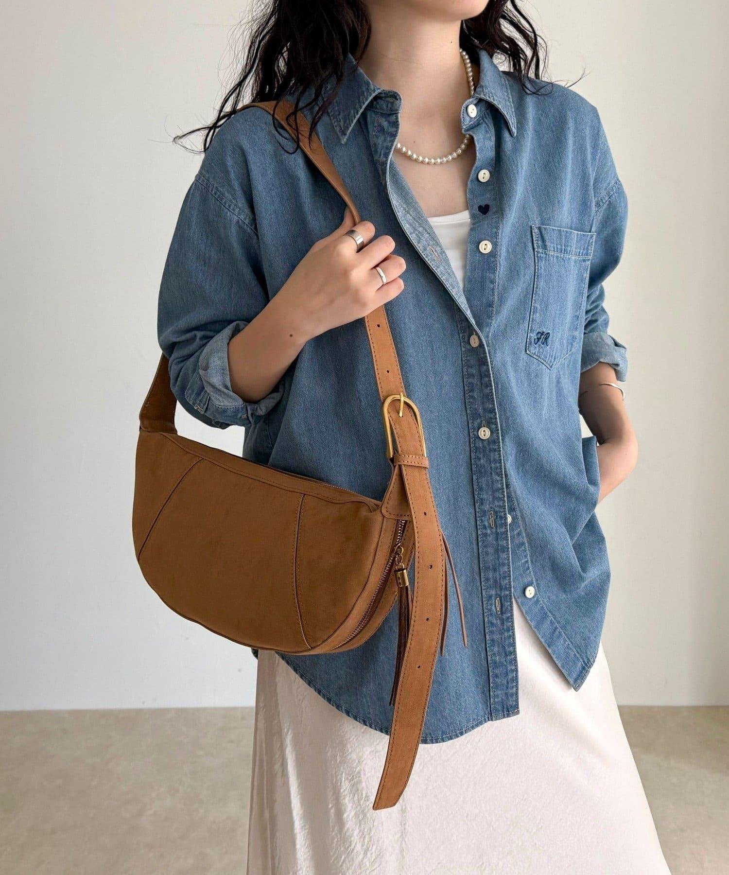 這款單肩包採用柔軟的麂皮材質製成,既優雅又溫暖。