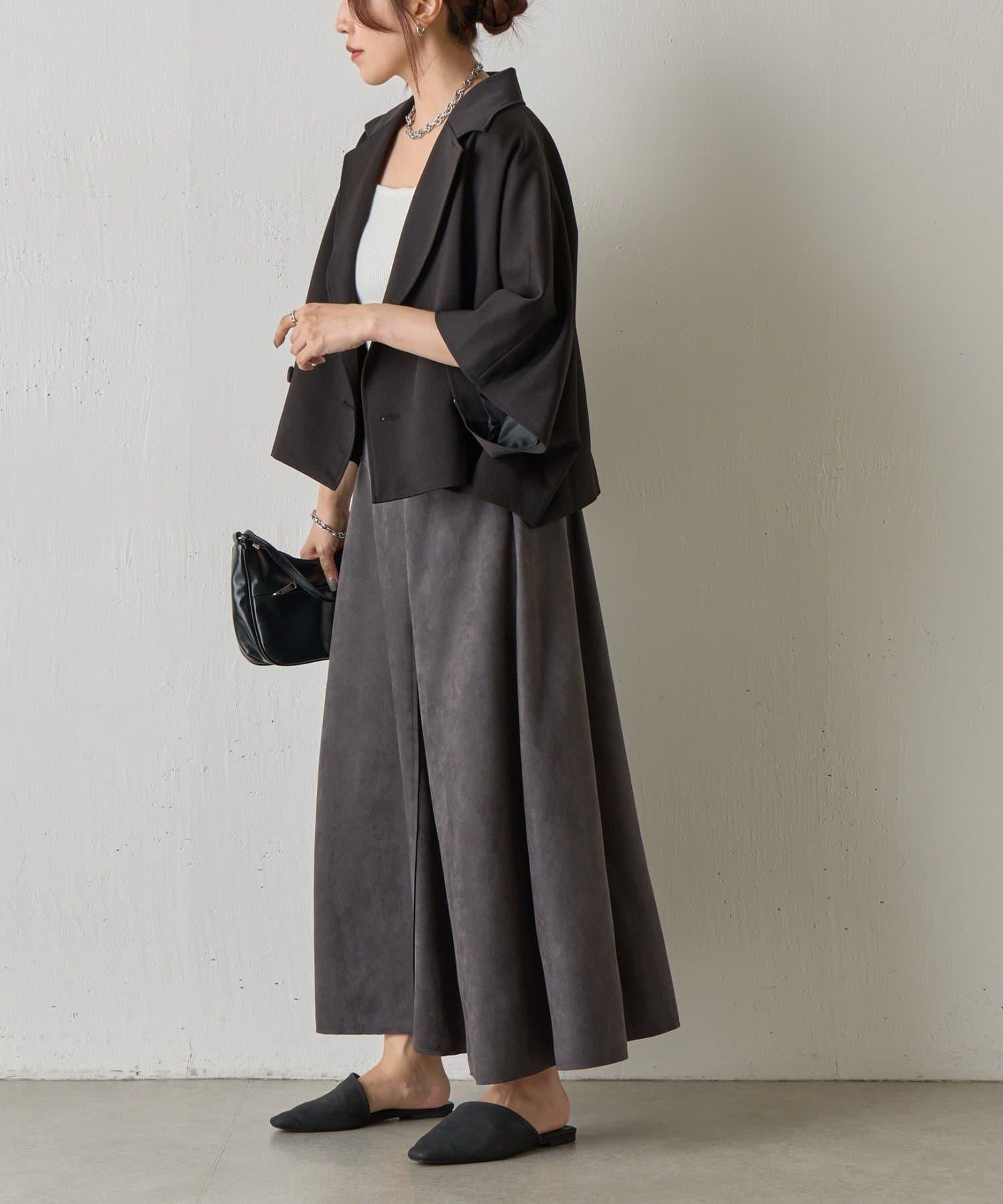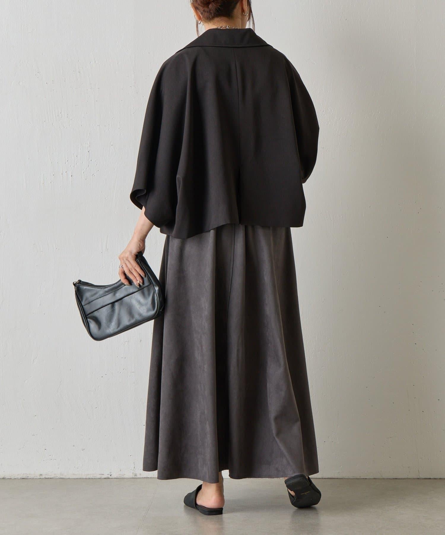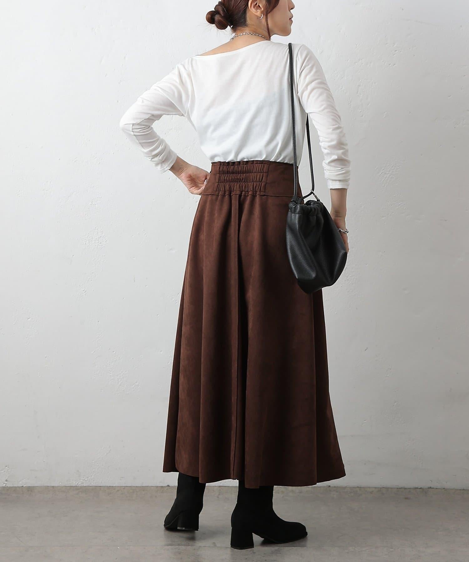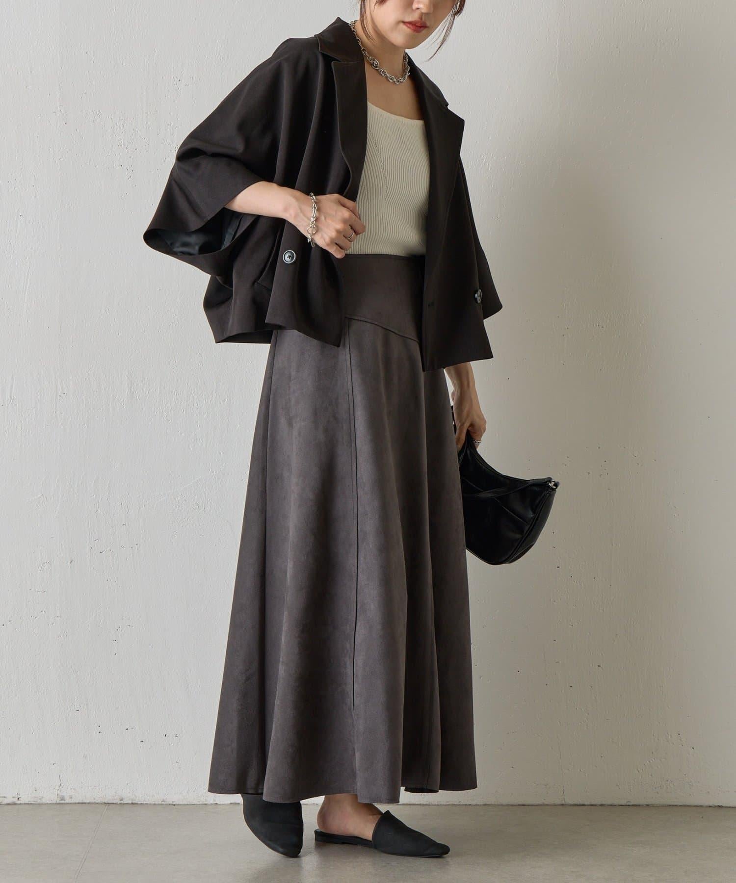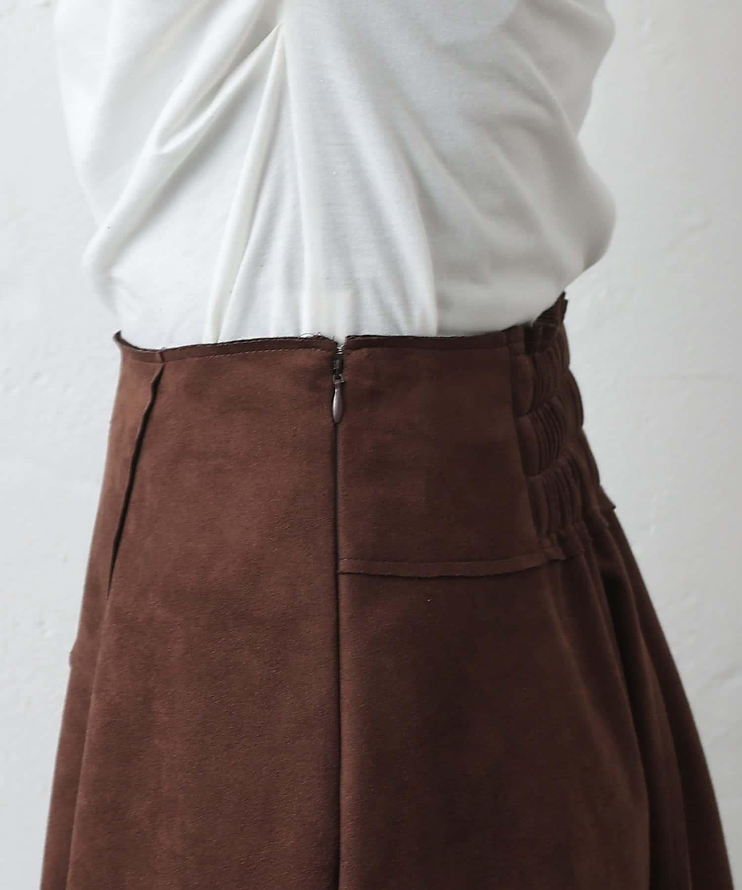 麂皮絨面料製成的喇叭裙,手感溼潤,光澤優雅,極具女性魅力。