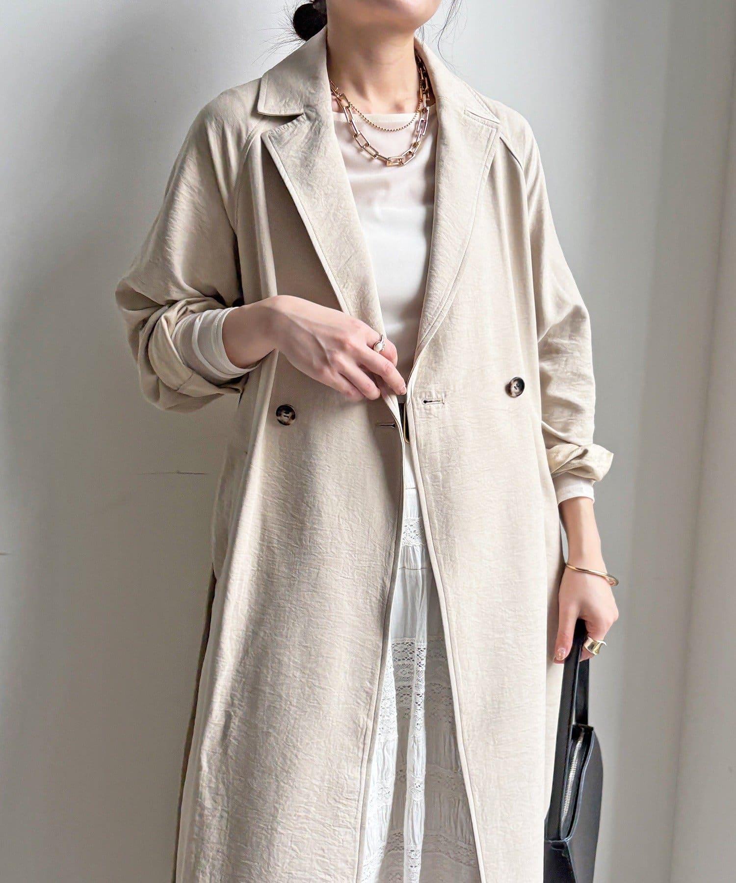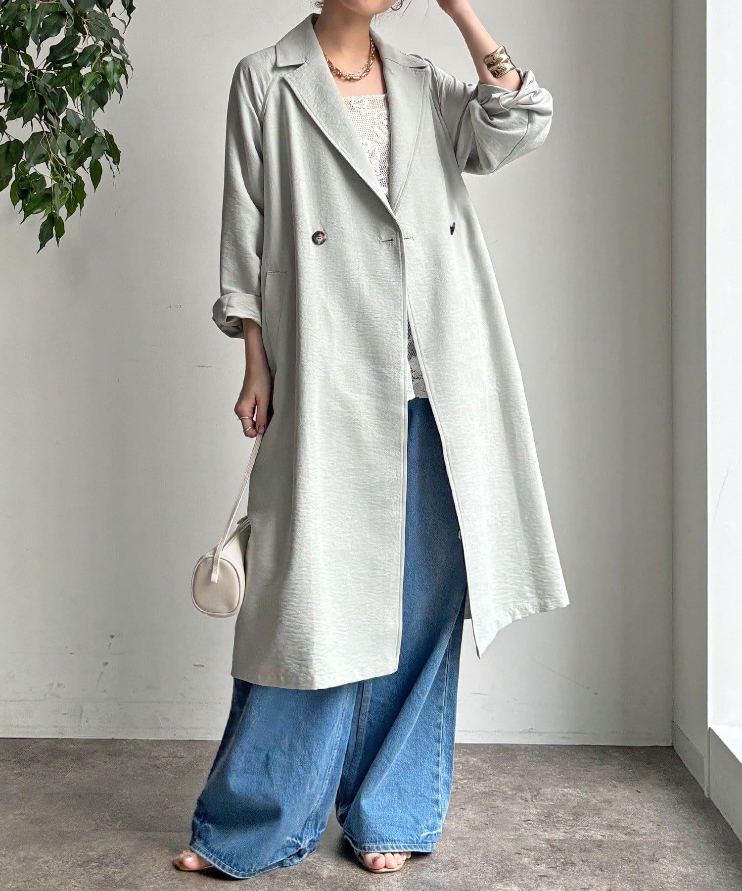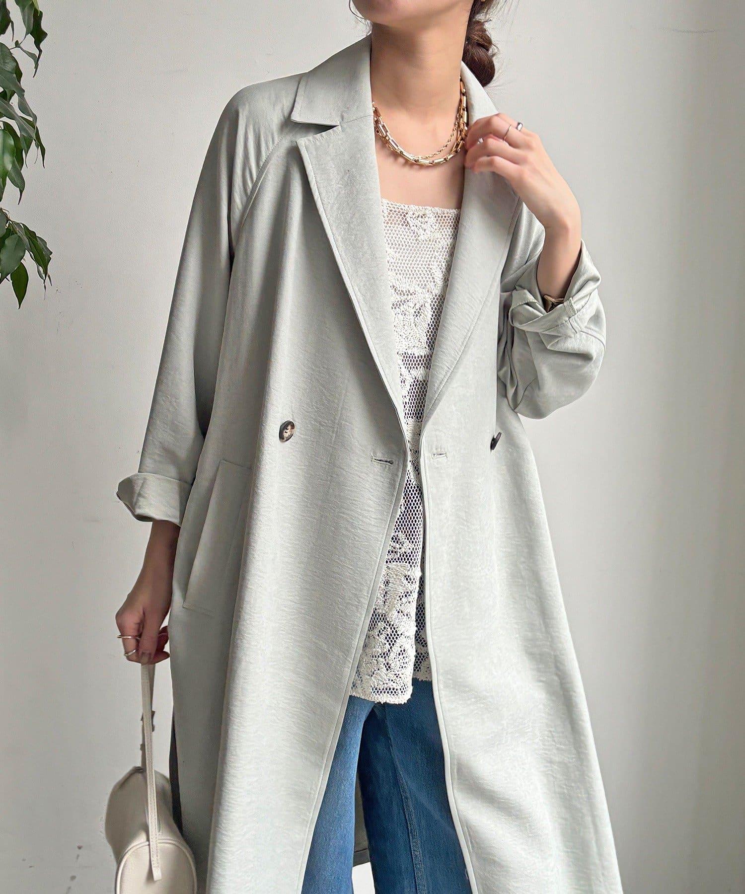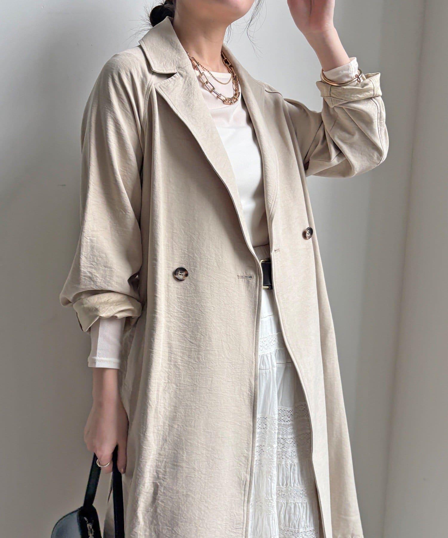 仿麂皮絨風衣,長度稍長。