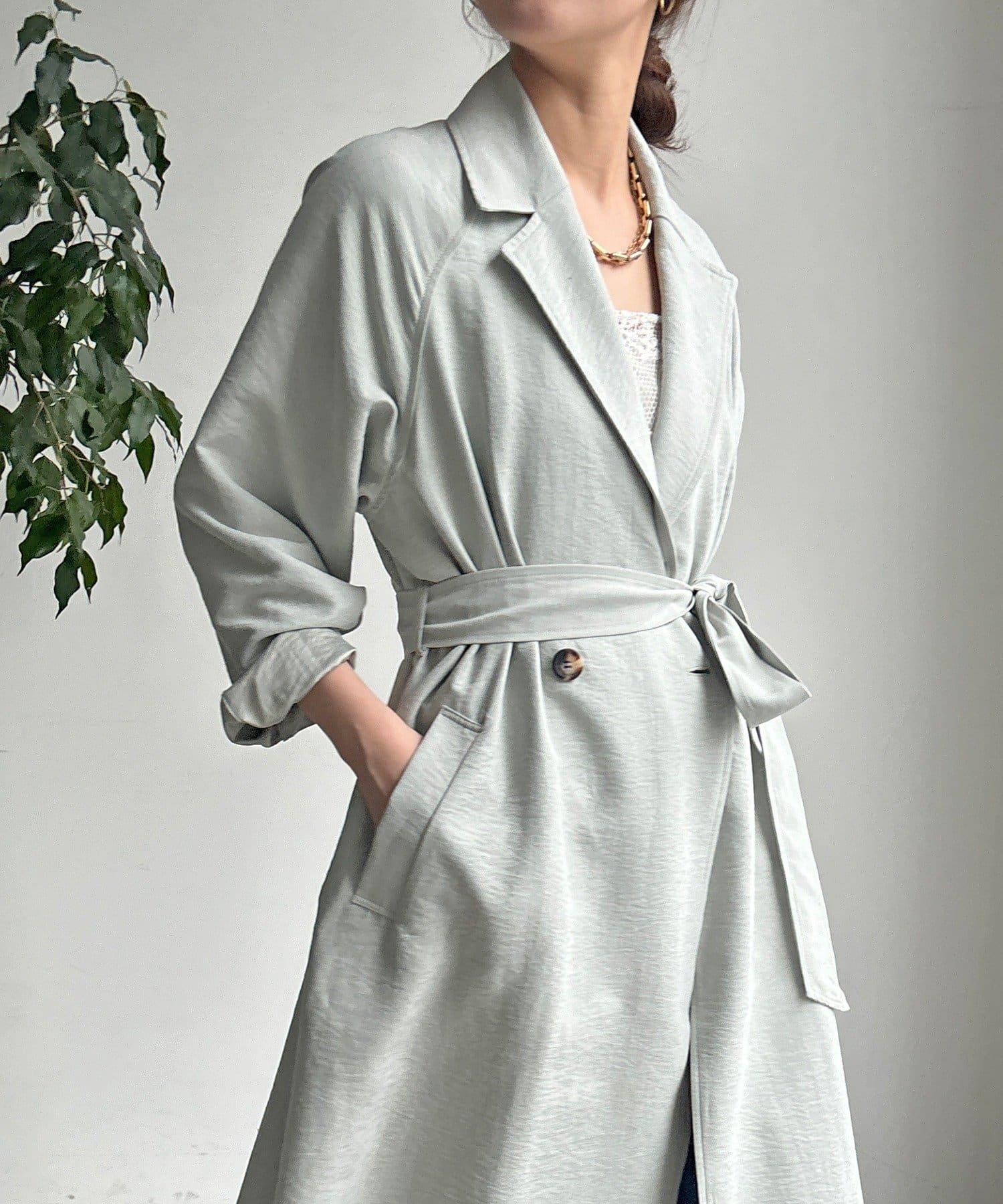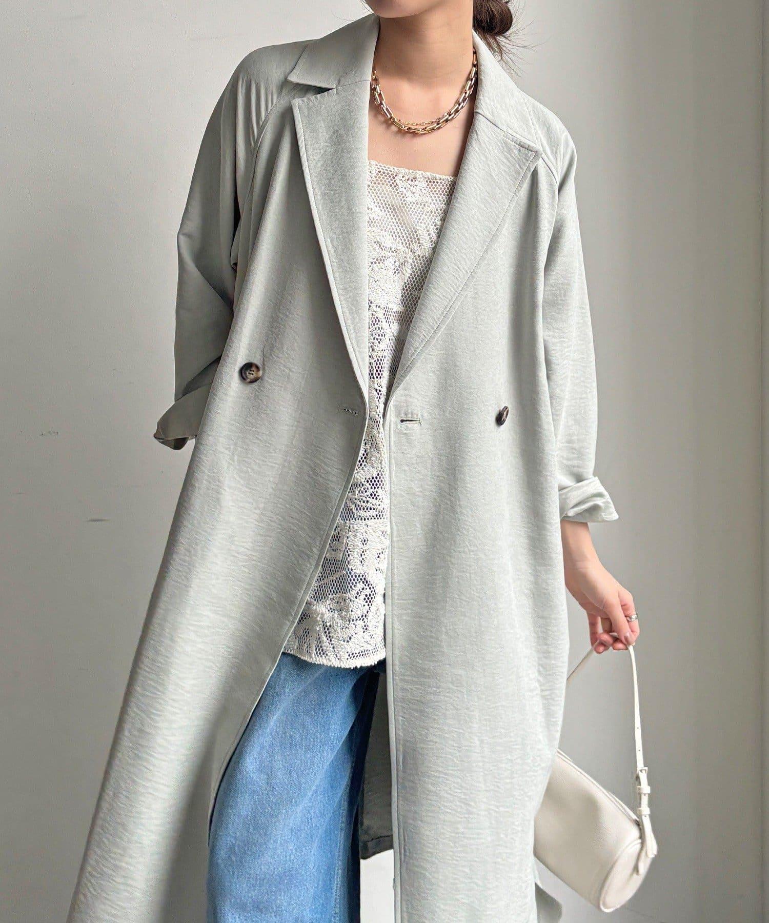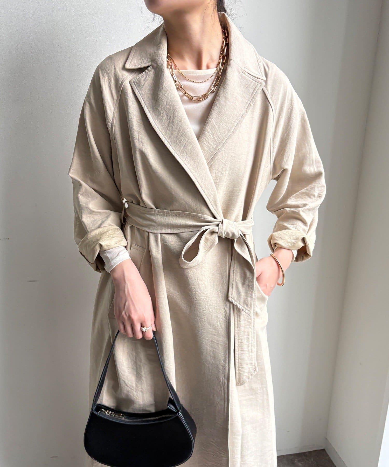 仿麂皮絨風衣,長度稍長。