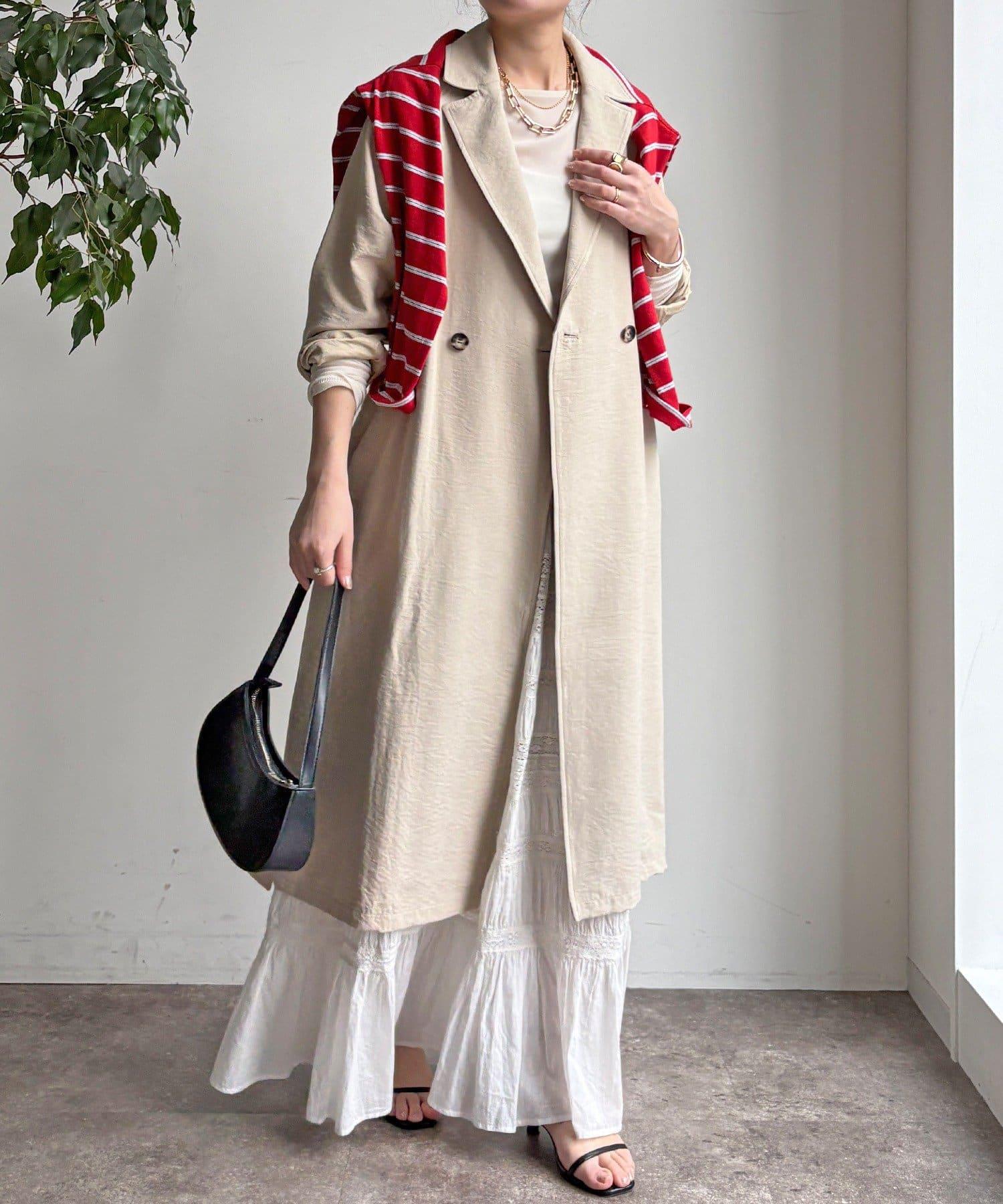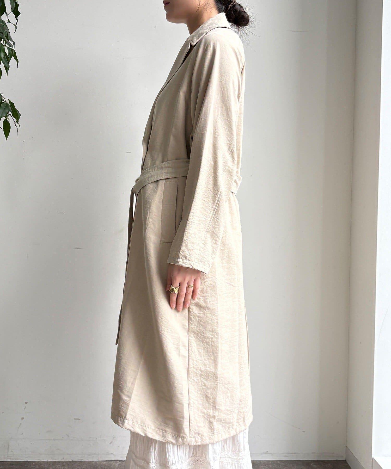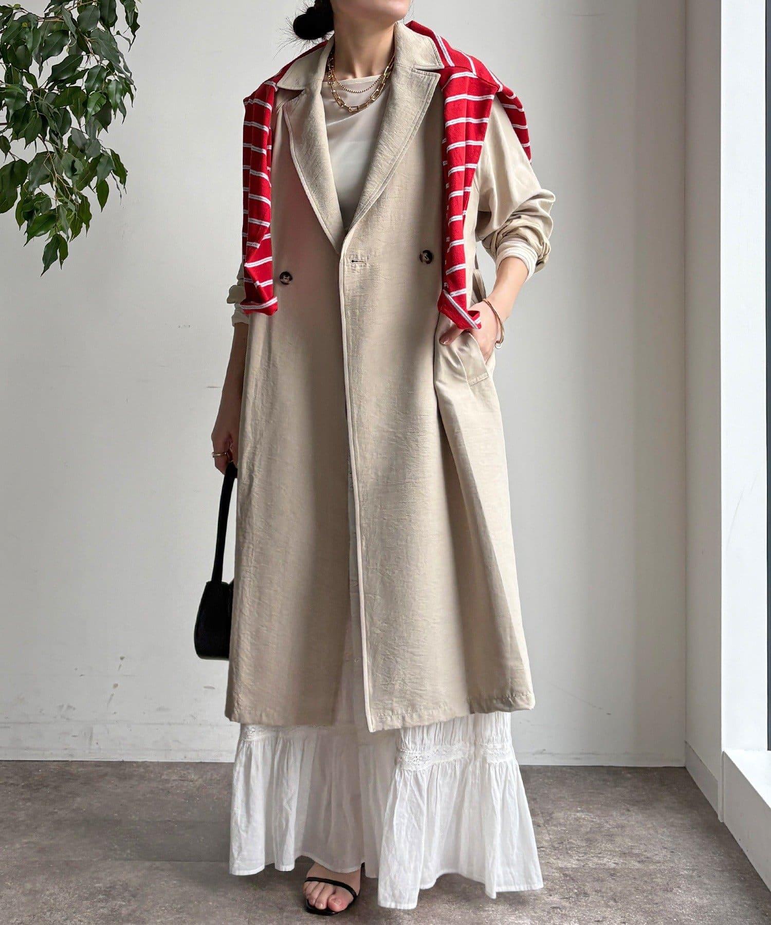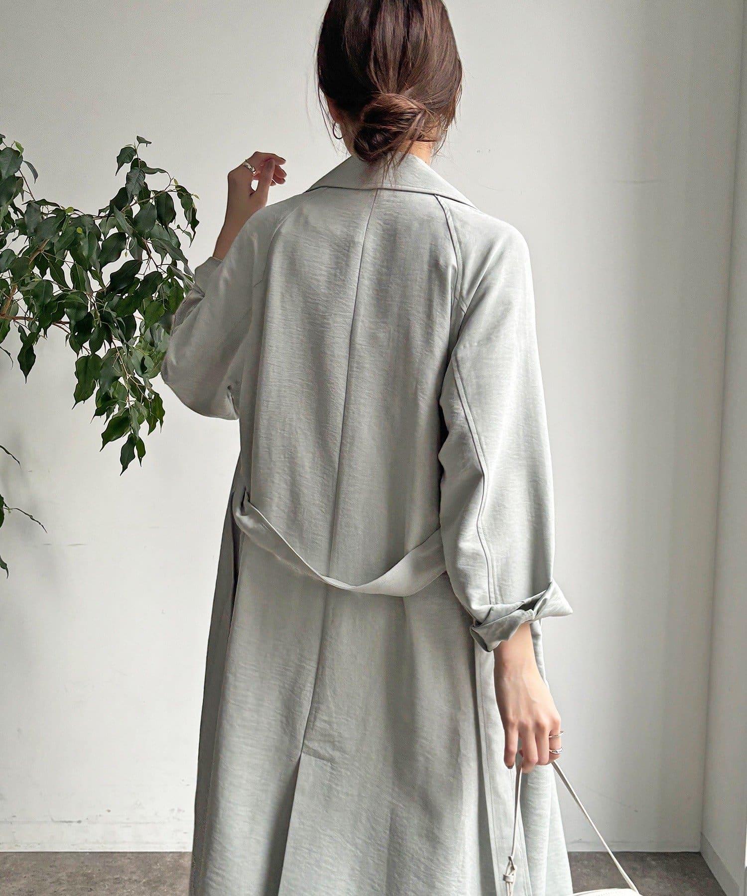 仿麂皮絨風衣,長度稍長。