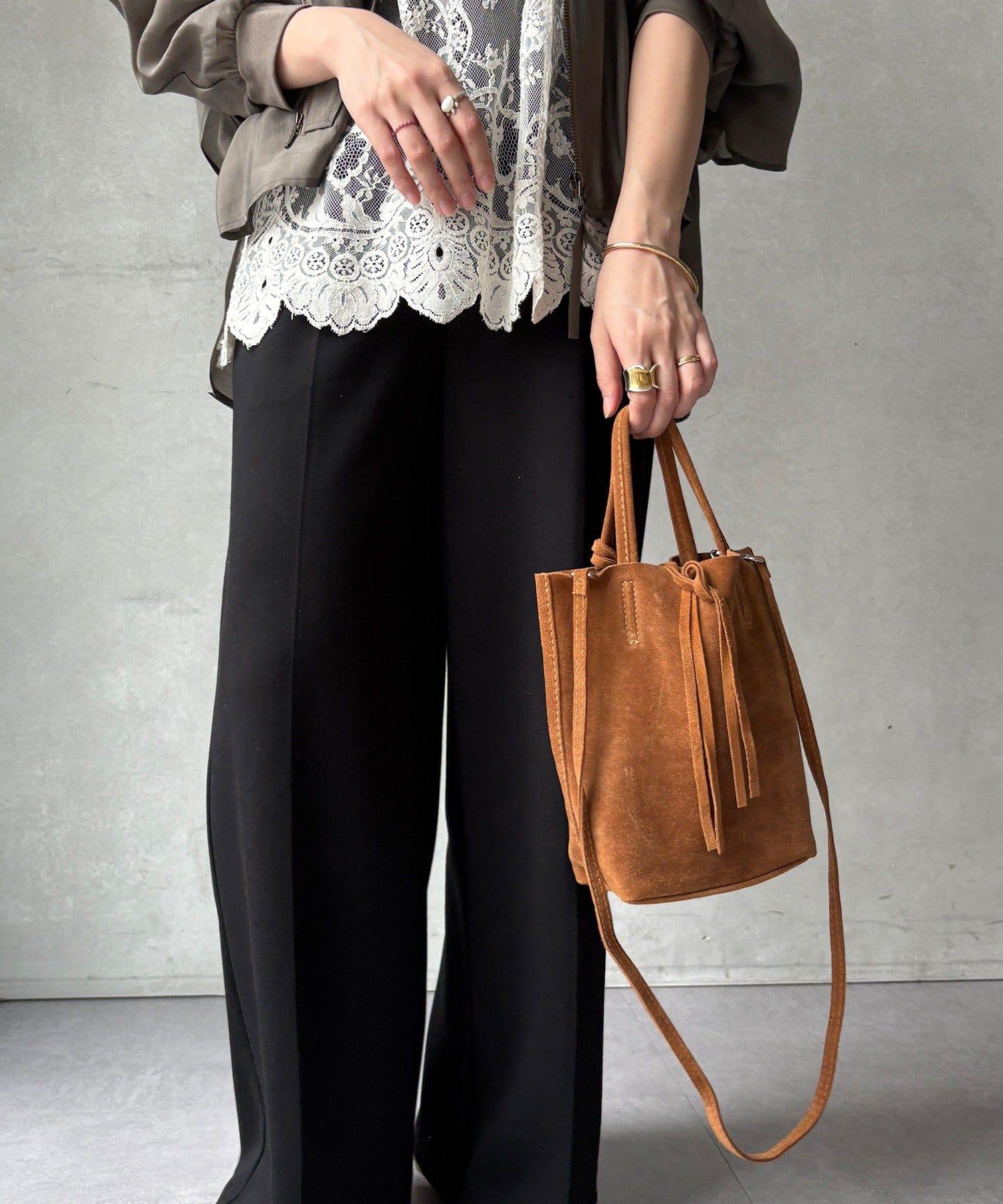 麂皮材質營造出成熟女性的氛圍。