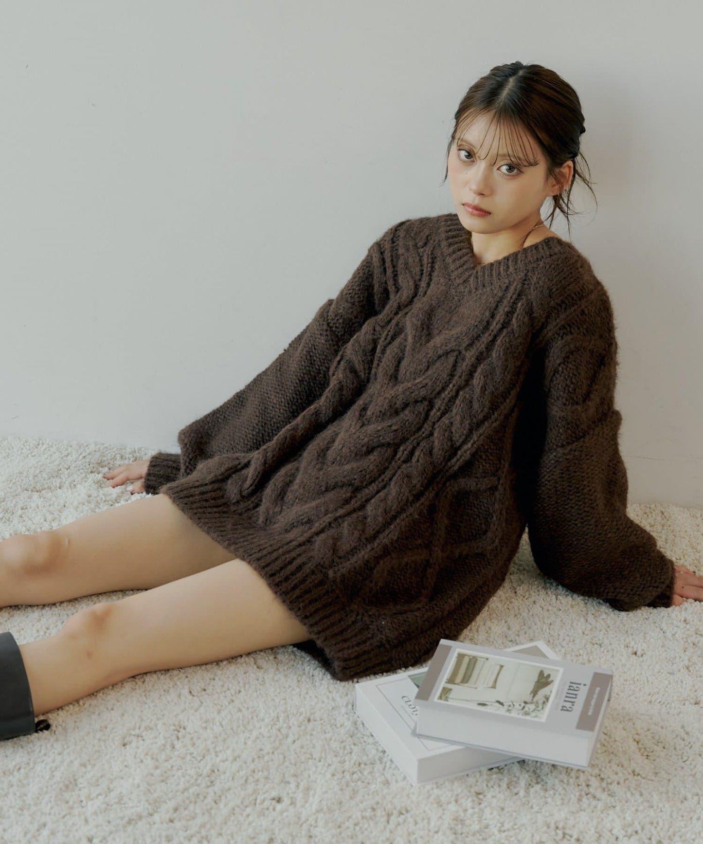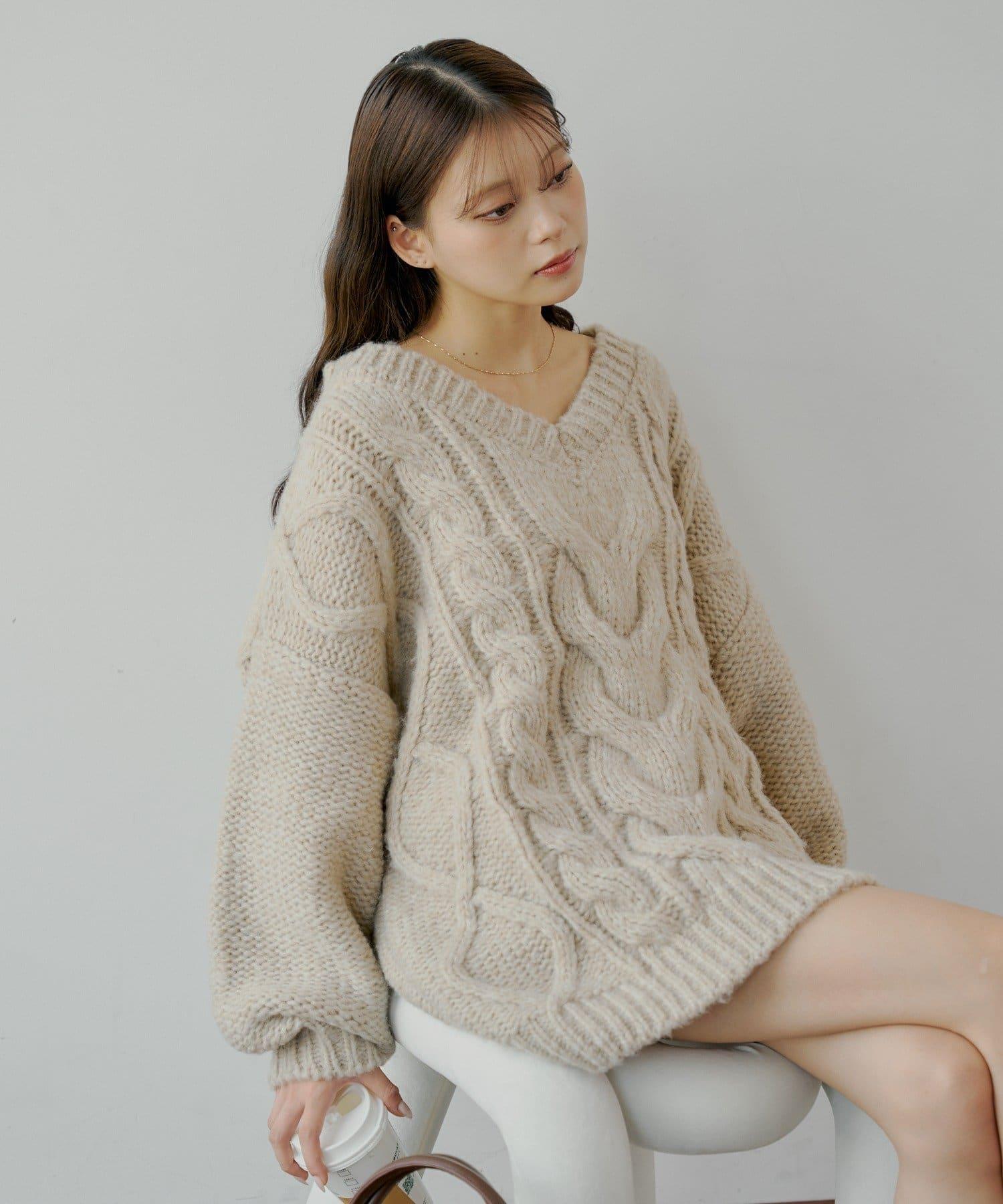 簡潔有力的電纜針織為協調的造型增添了亮點。