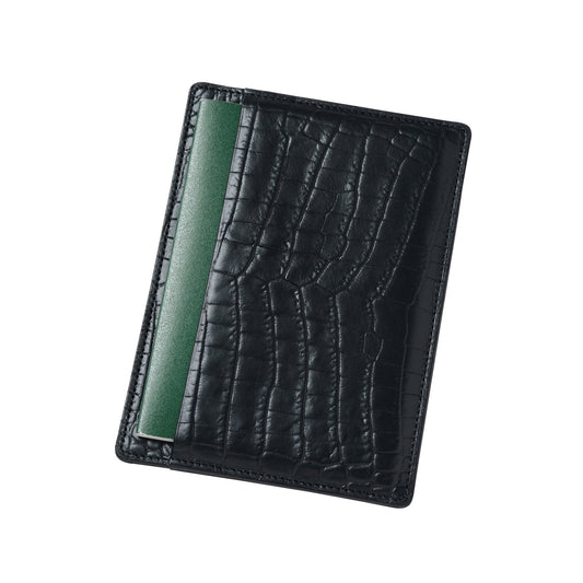 名片盒採用鬆緊帶封口,容量可調。內部有三個獨立空間和一個摺疊主袋,可容納多張名片。