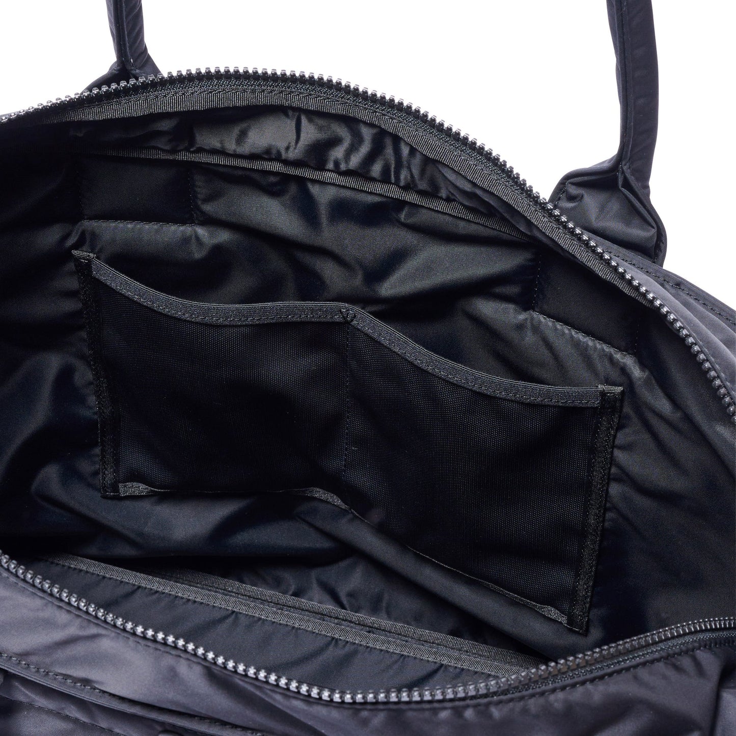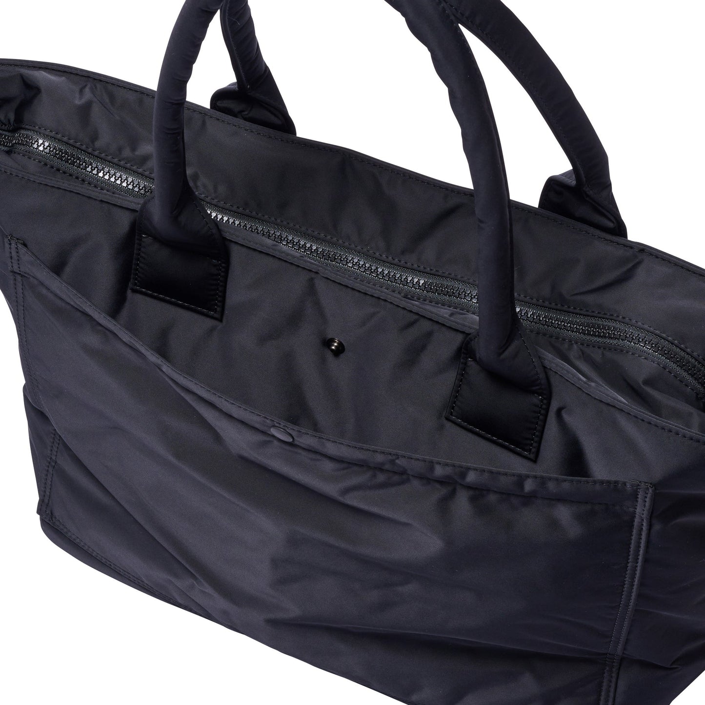 手提包採用寬開口設計,便於裝卸,容量足夠日常使用。內部設有一個網兜,可放置小件物品,兩側的水壺袋可存放塑料瓶和摺疊傘。提手經過更新,採用了與主體相同的材料。