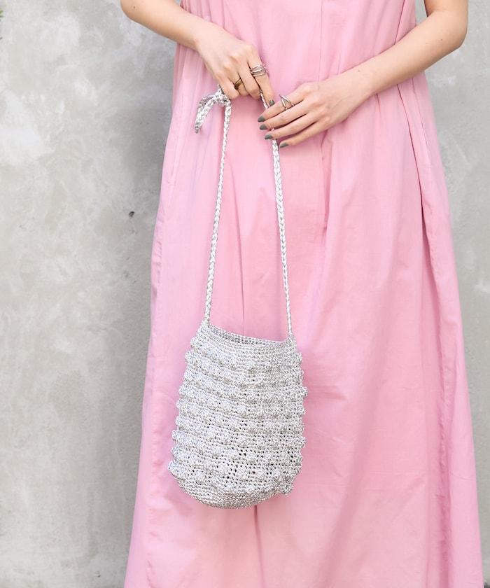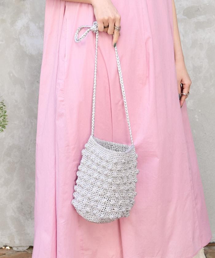用閃亮紗線編織而成的手袋。