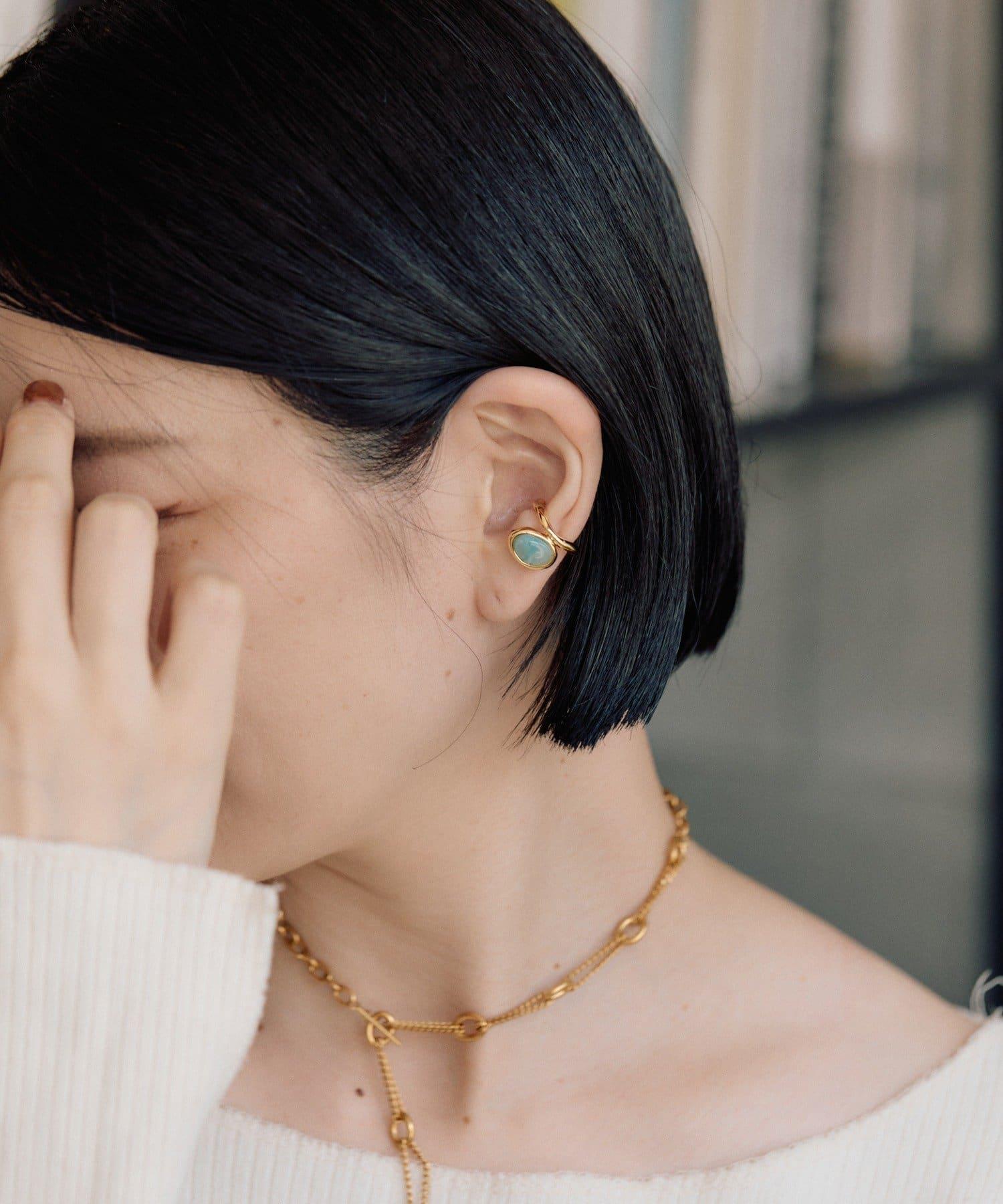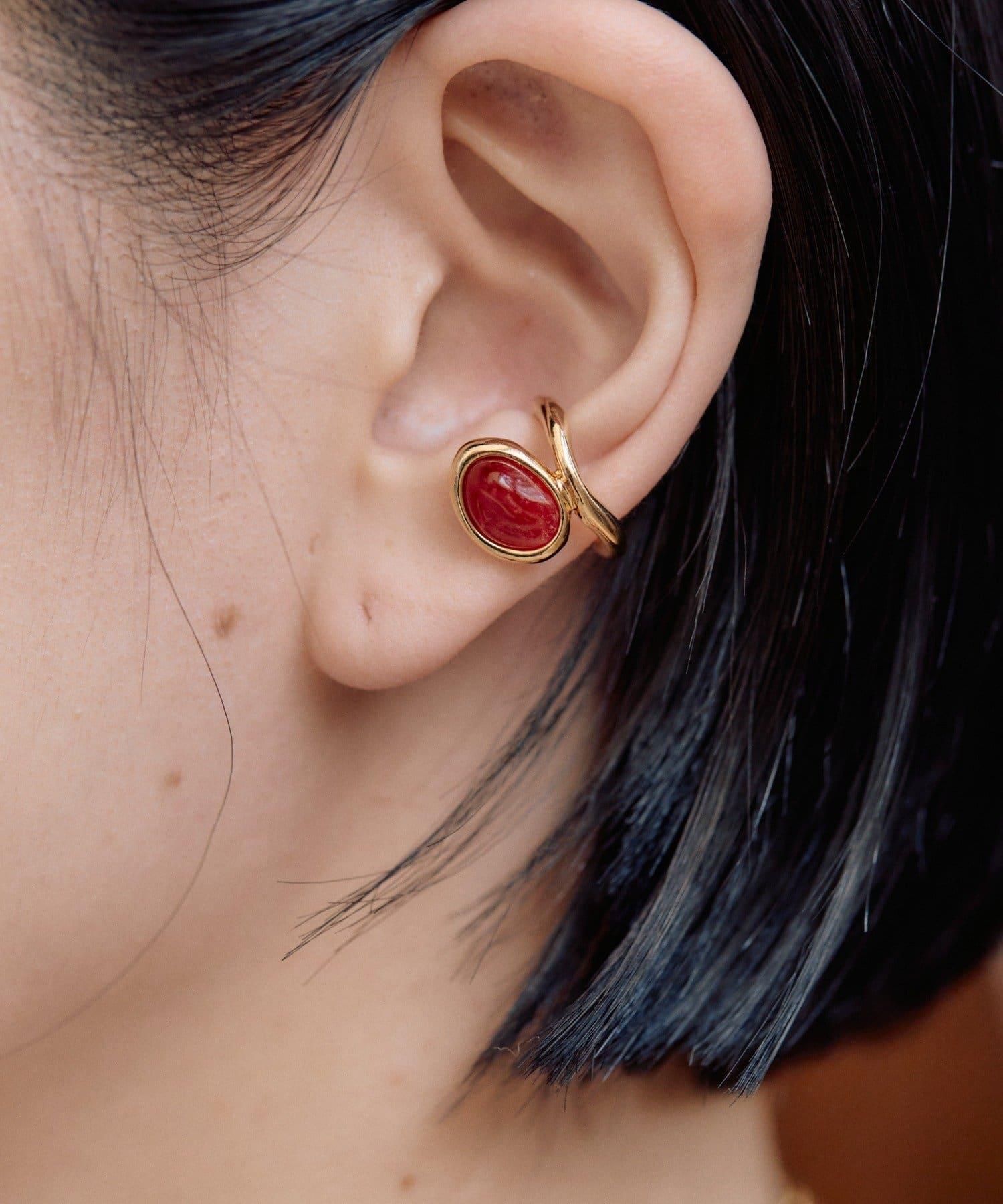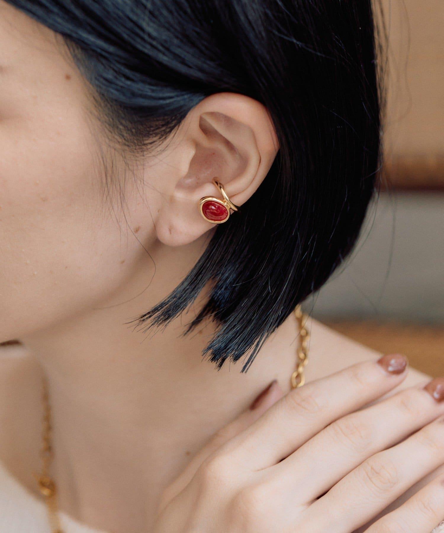 外側的凸圓形是一大亮點,只需佩戴一枚,便可在耳邊留下華麗的印象。