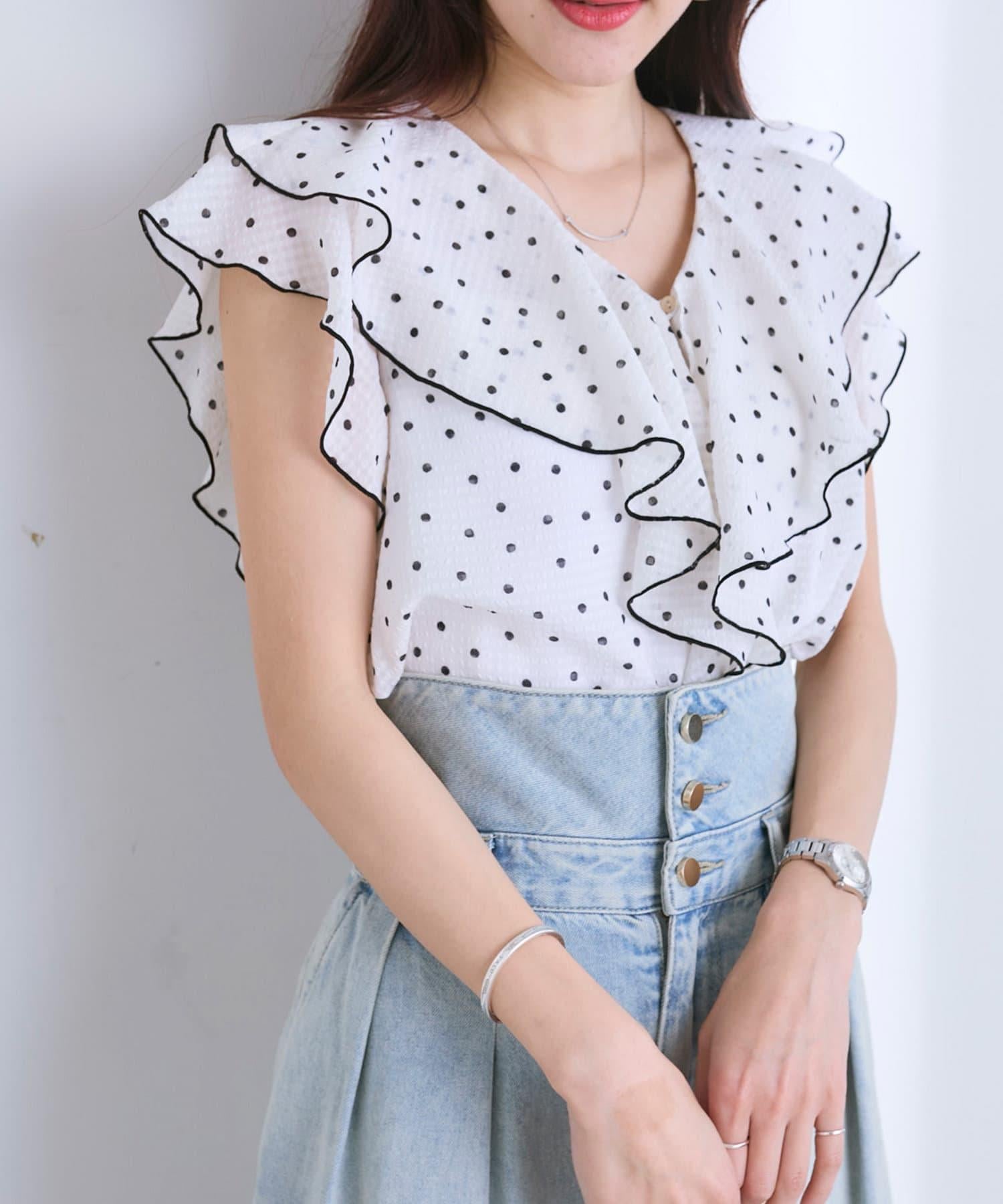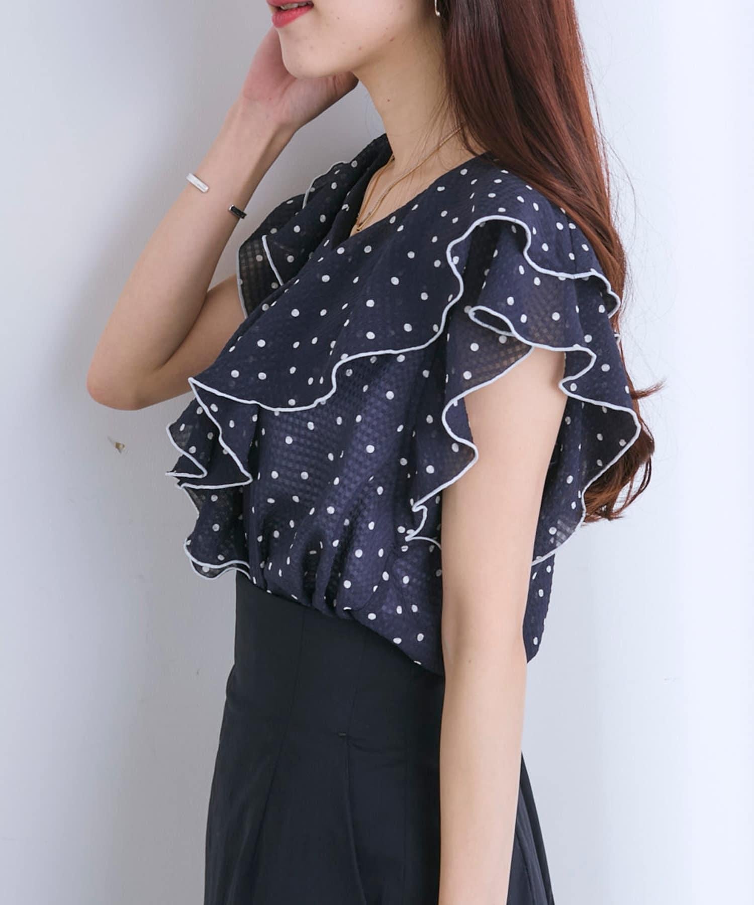 優雅的圓點圖案上衣,盡顯成熟女人味。
