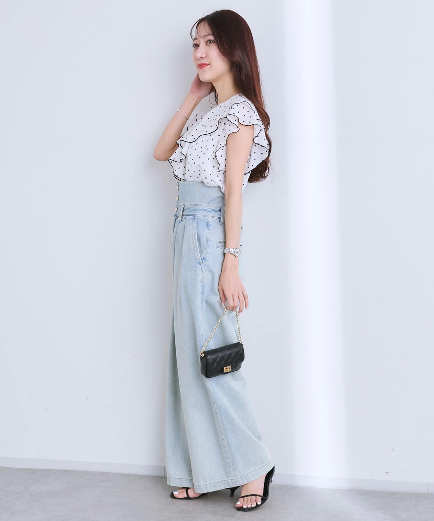 甜美而成熟。單件的圓點圖案上衣就是全場的焦點。