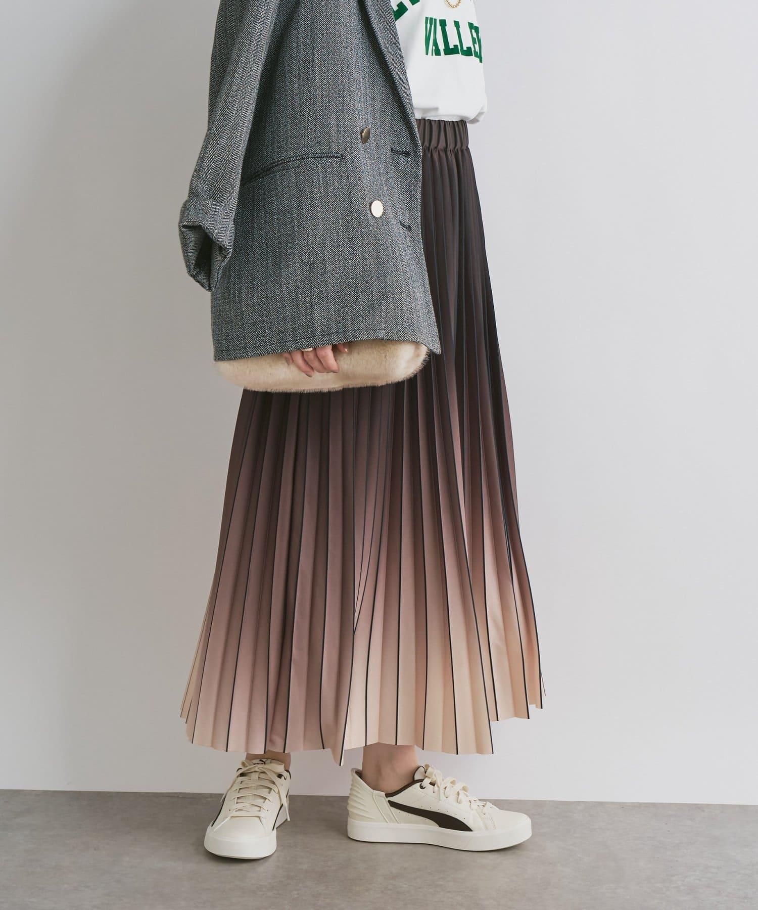 《オンオフ兼用・ウエスト総ゴム》漸變色針織百褶裙