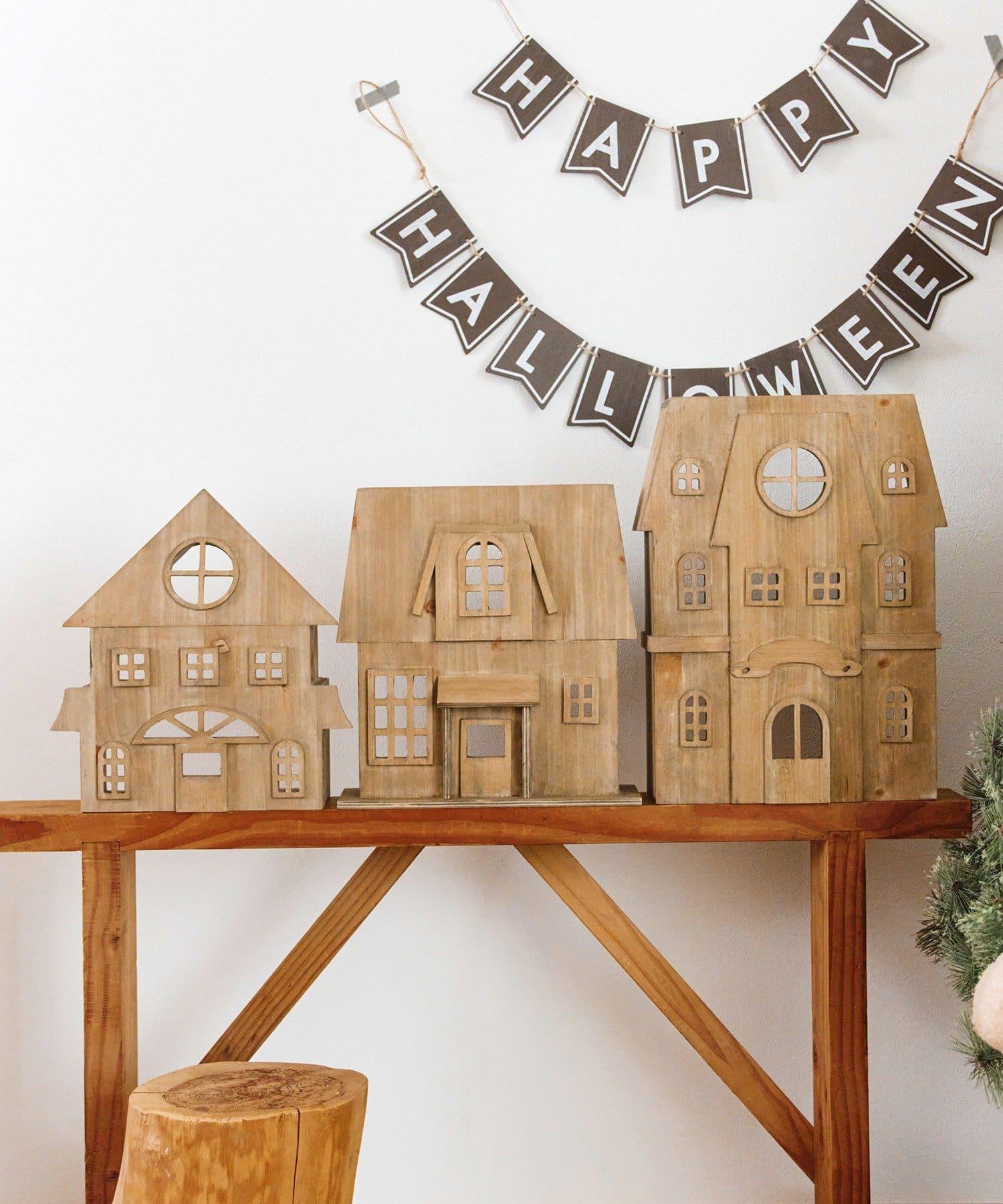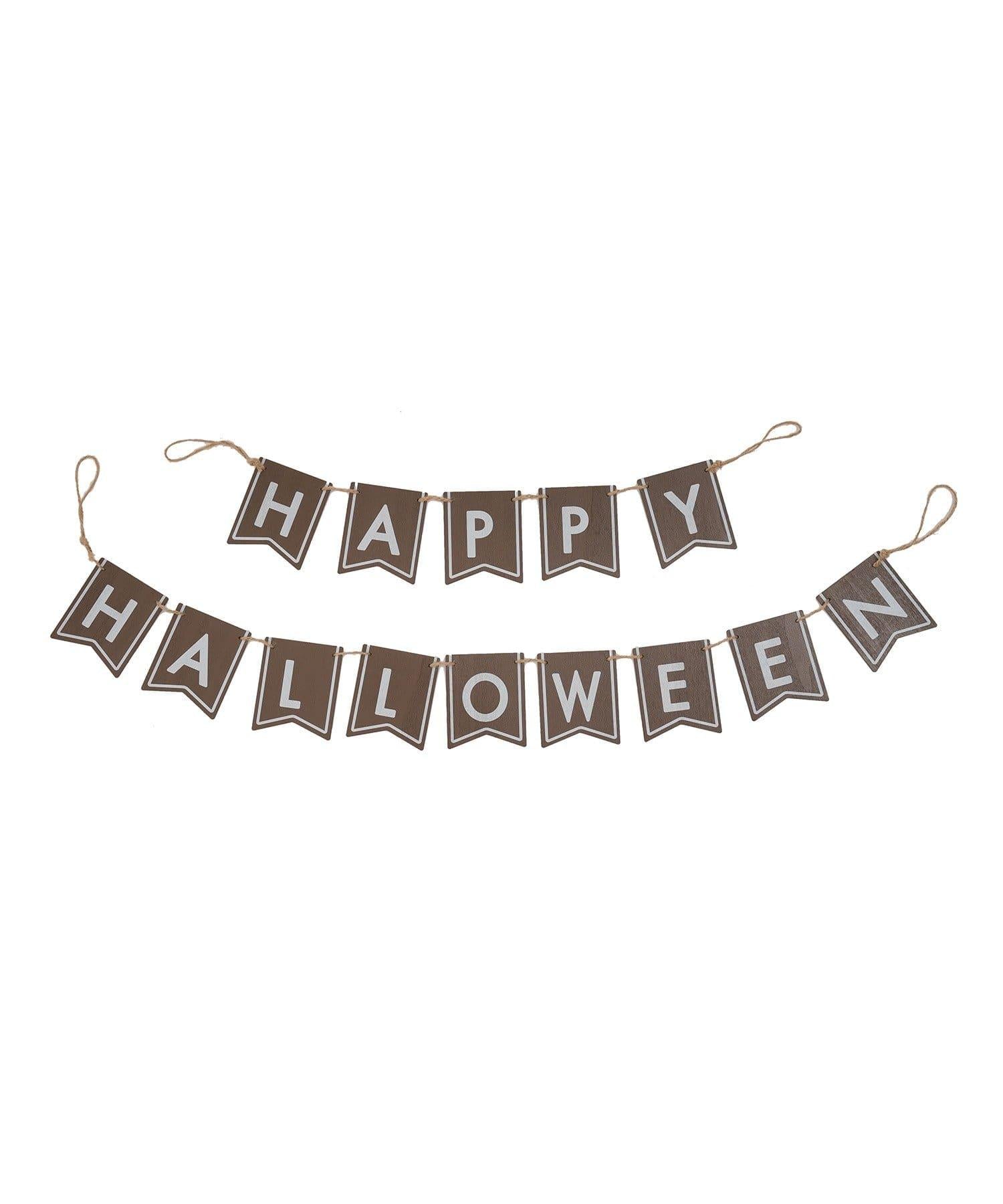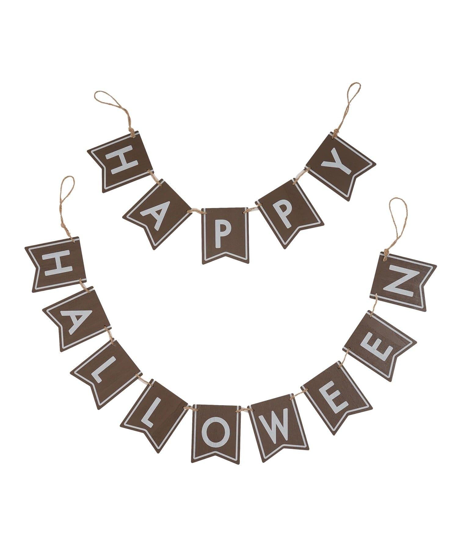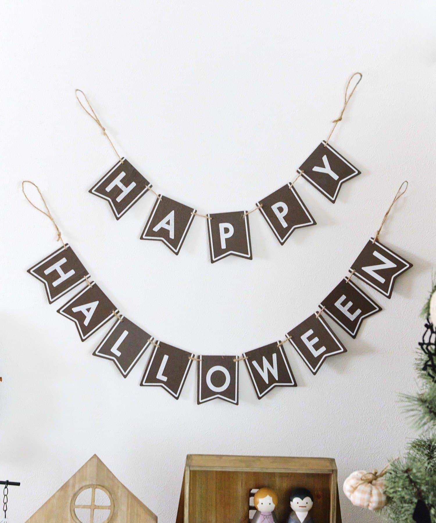 自然可愛的萬聖節旗幟花環,木質溫暖。
